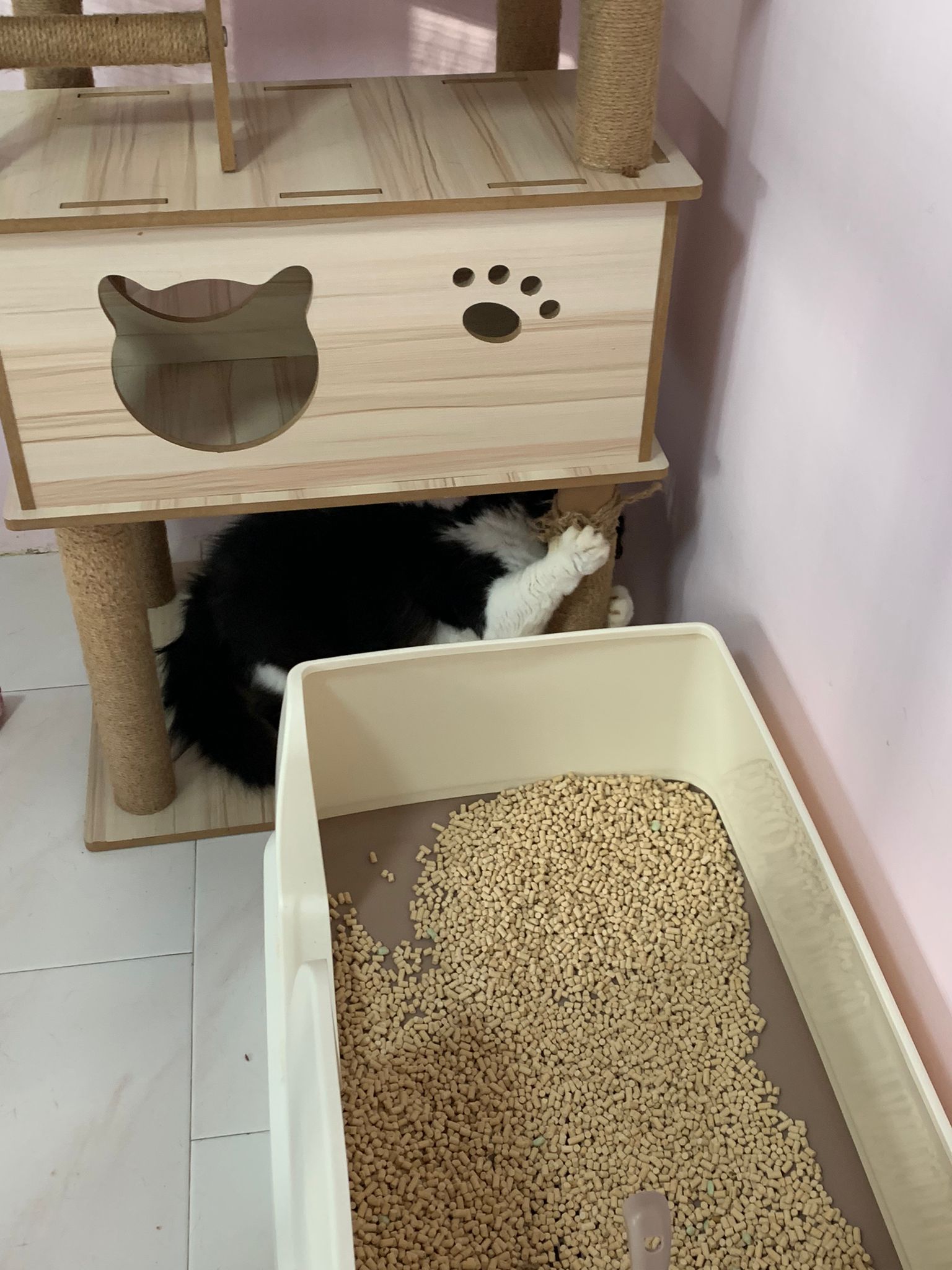 Backlog: oh ya he like to sit in bin, like that’s the safety zone. Lucky mine is unicharm, as long no poo, he sit I also not worried he stain himself w urine.