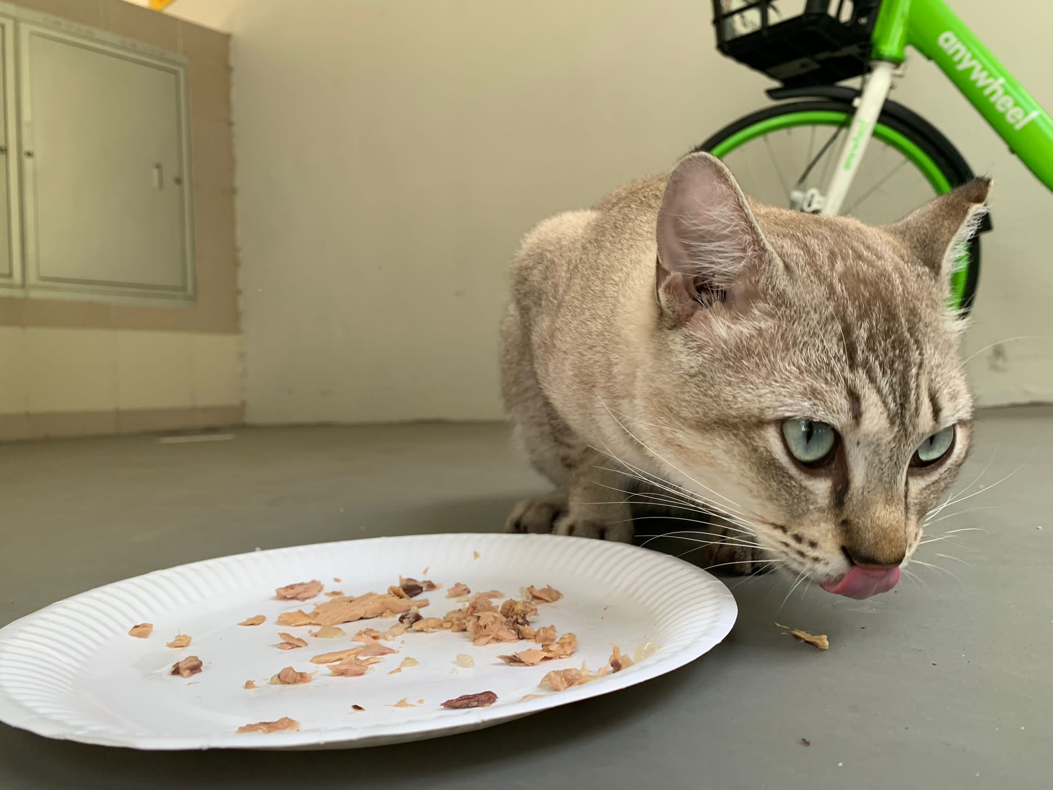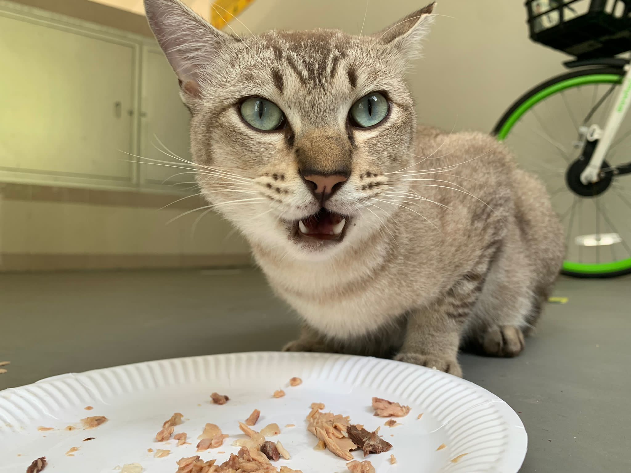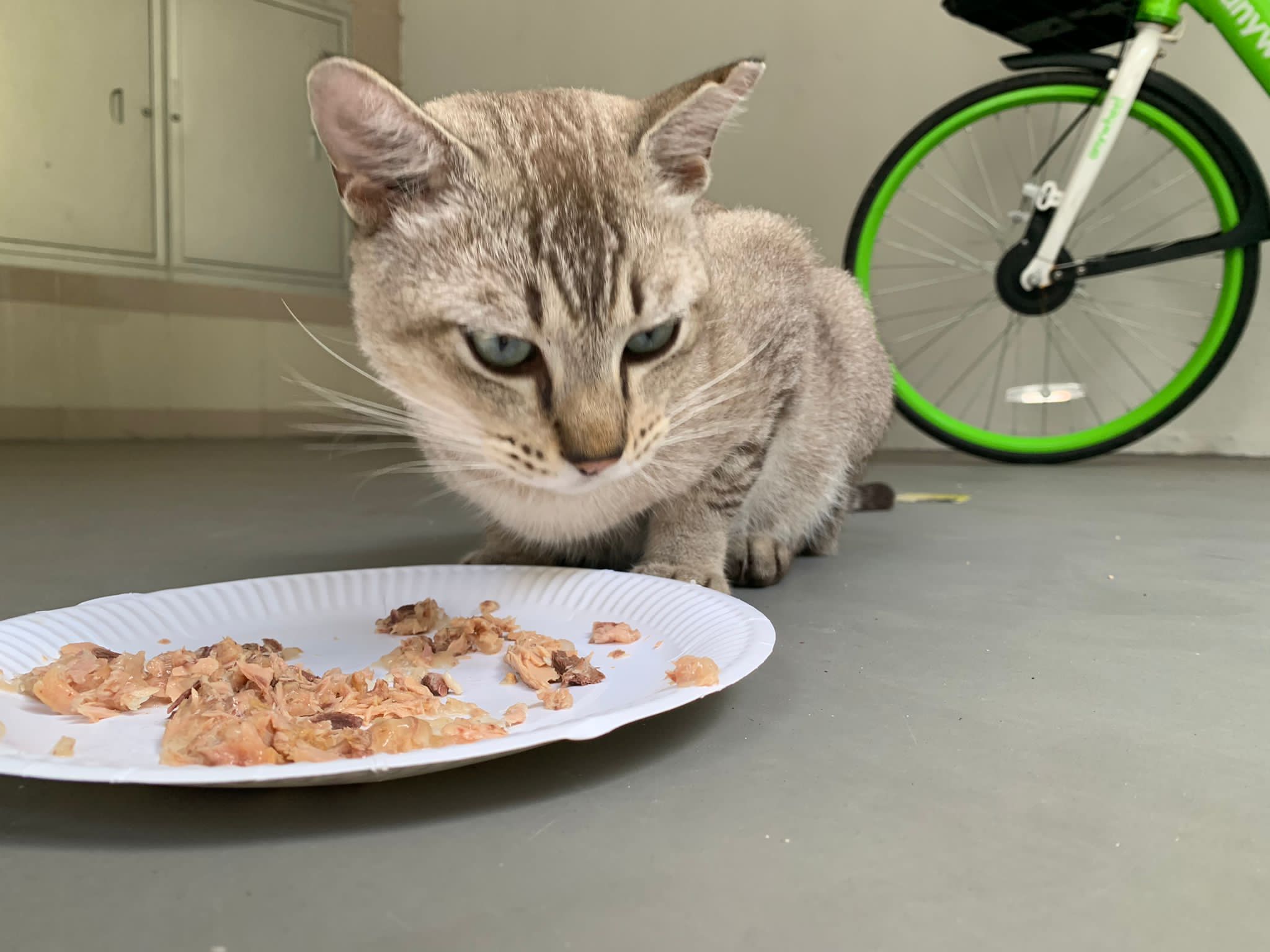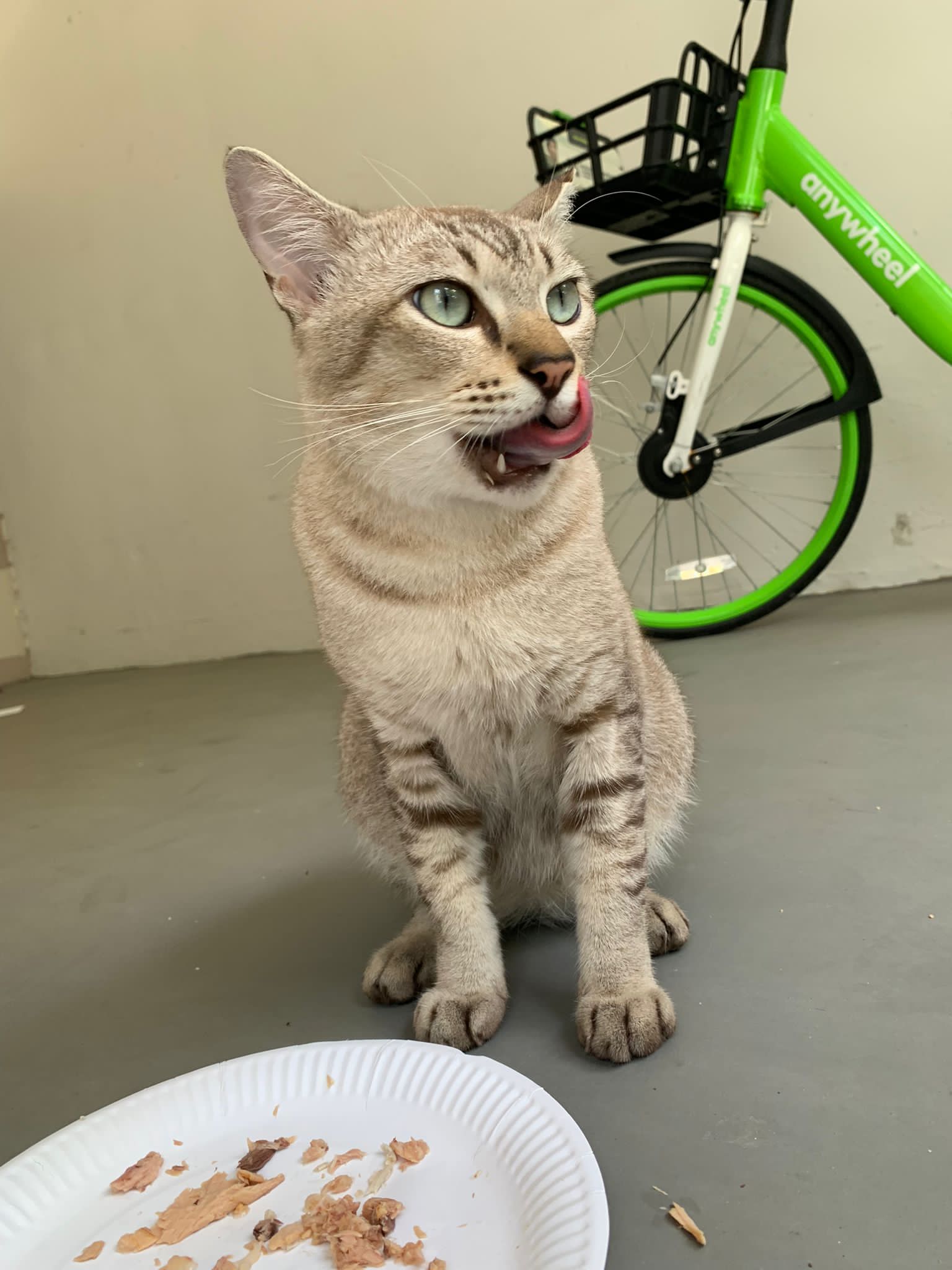 420pm+: jialat saw a new guy. Handsome. Eat tipped. Seal point Siamese. Come smell me rub me. Told him wait I go get food. Finish a can of tuna w white fish. Physical looks fit.