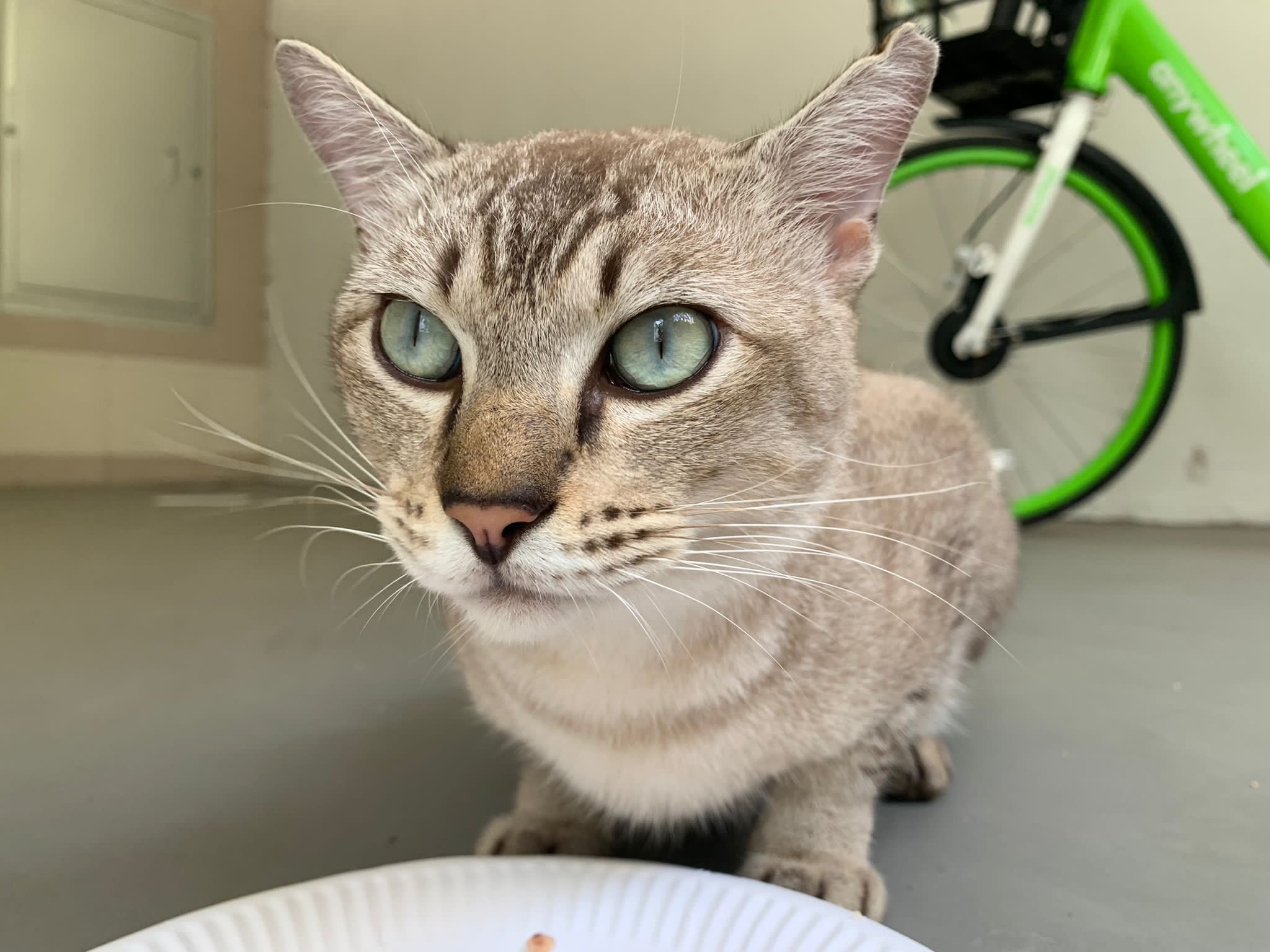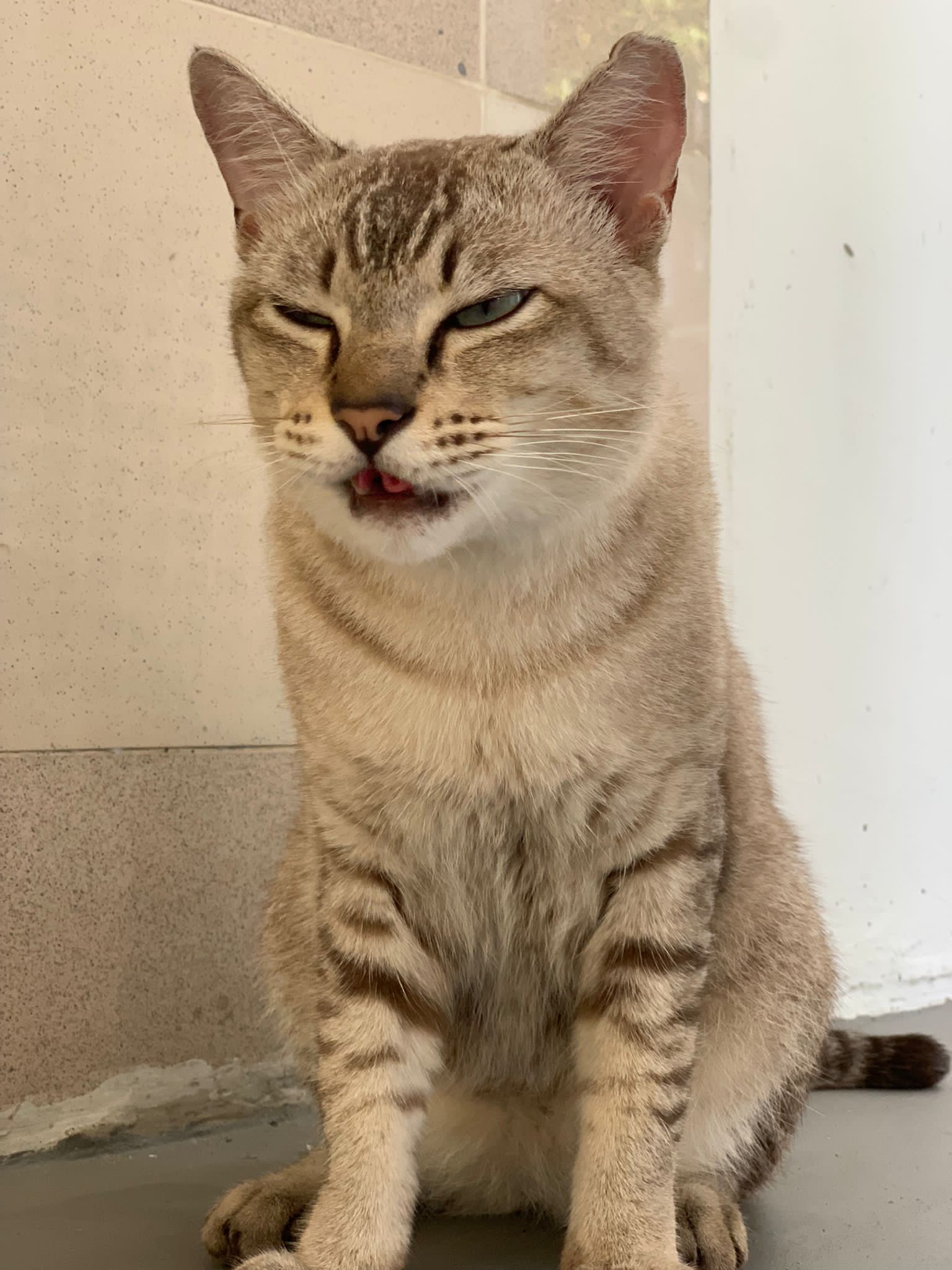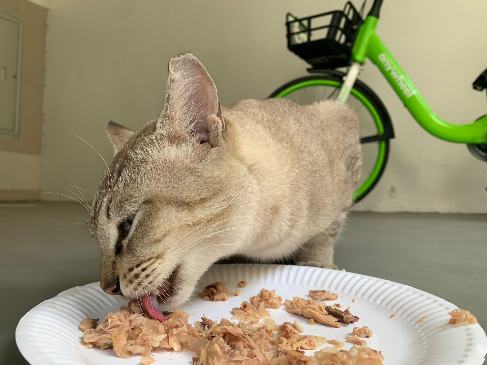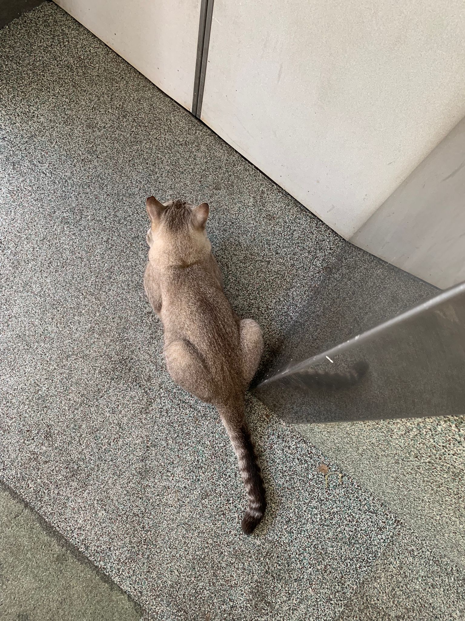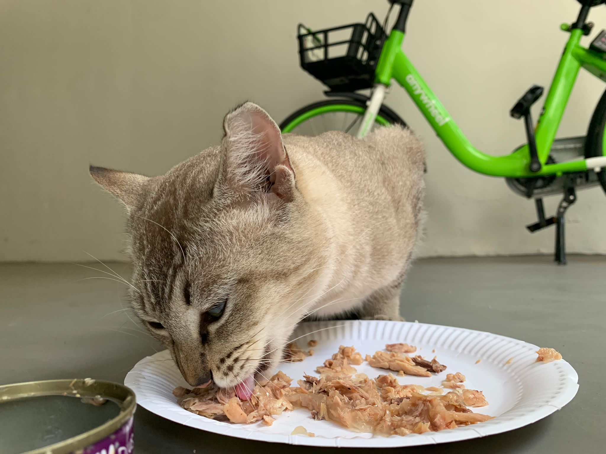 420pm+: jialat saw a new guy. Handsome. Eat tipped. Seal point Siamese. Come smell me rub me. Told him wait I go get food. Finish a can of tuna w white fish. Physical looks fit.