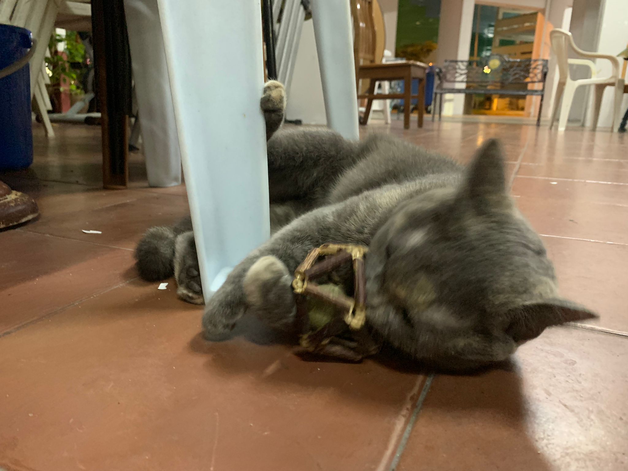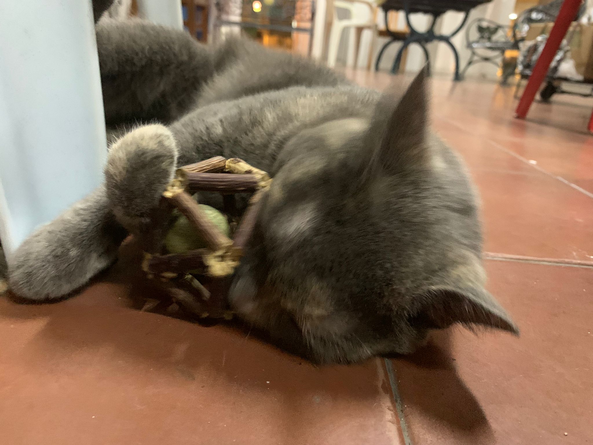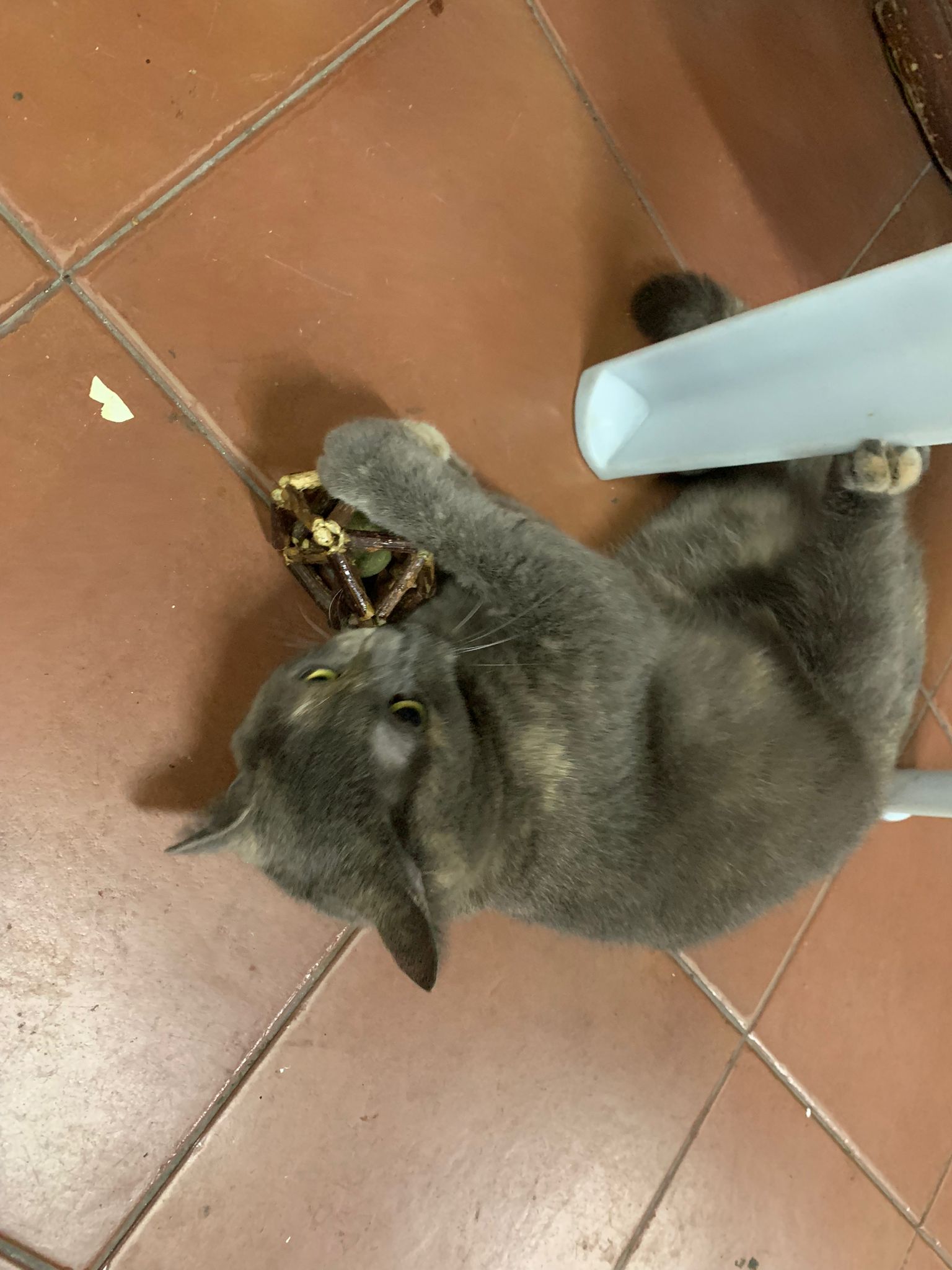 Agnes bday so go find her when she is feeding… first time met la la. She is cute and pretty. Love to play cat nip toy. But agnes say she indoor will meow a lot