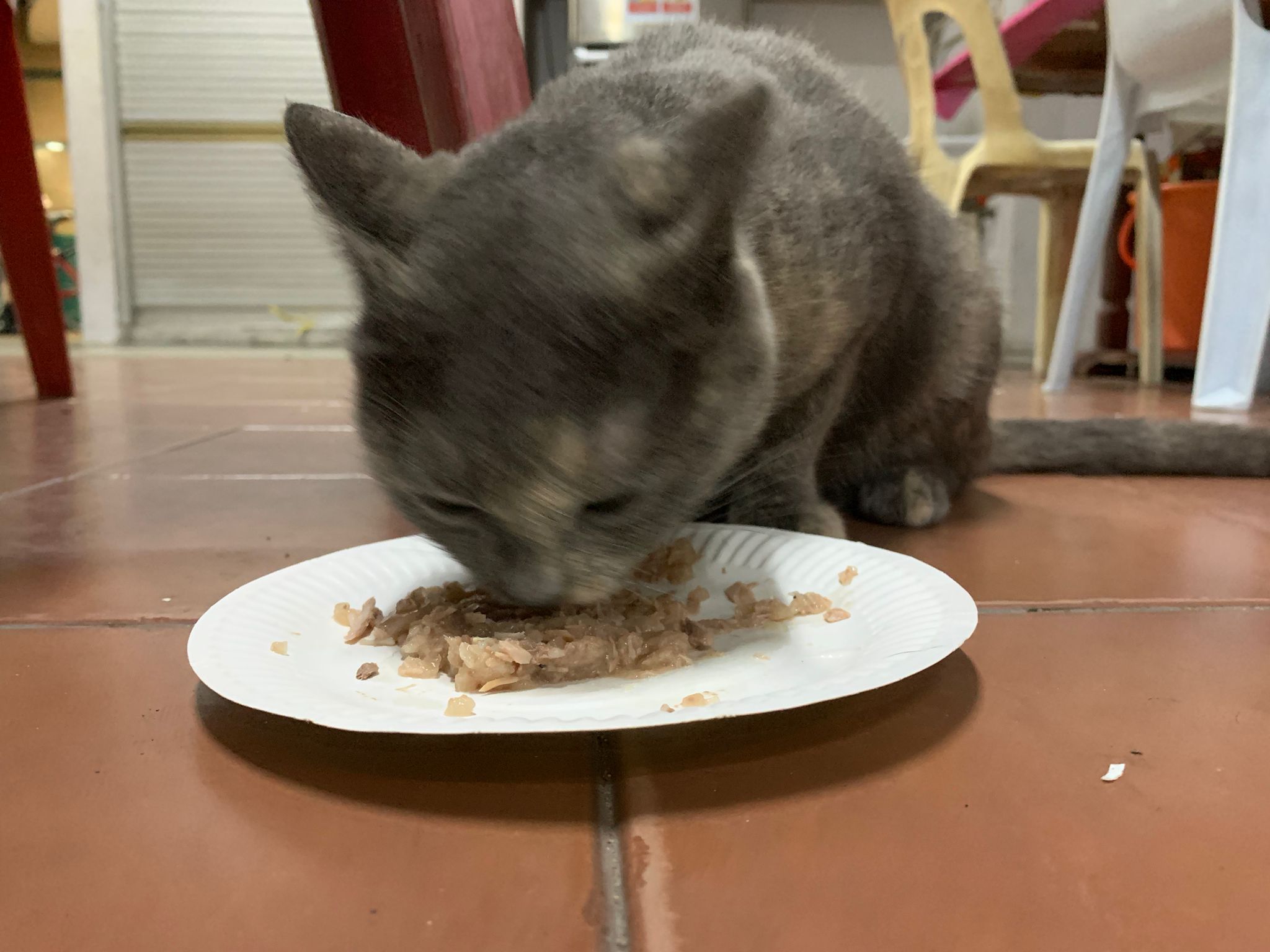 Agnes didn’t send further photos but lala is a regular to her le. She like kibble more than wet food.