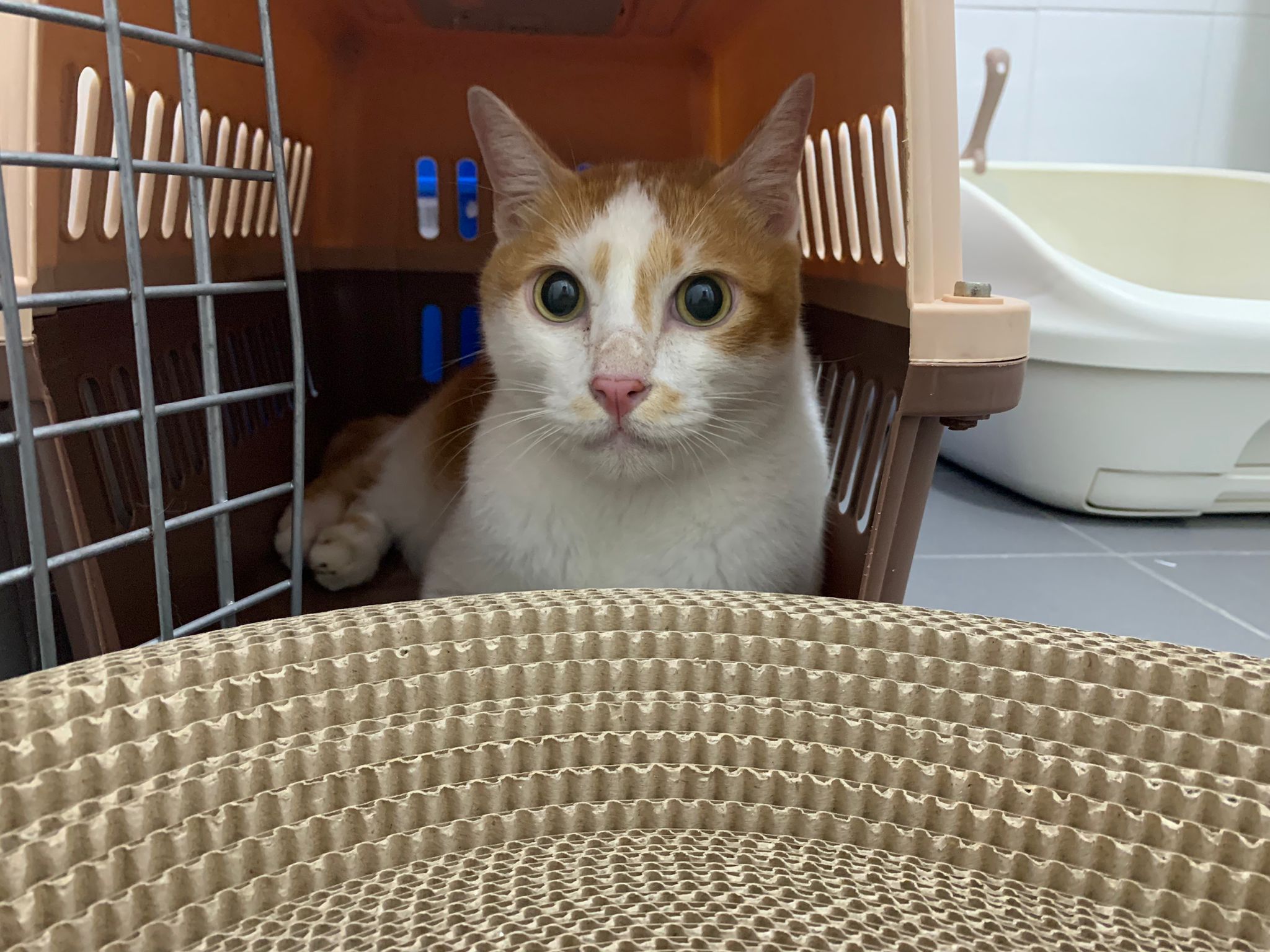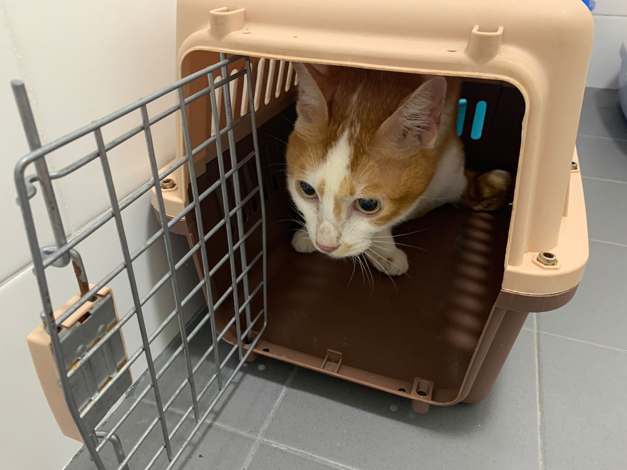 645pm: I wanna serve him snack thinking he will be happy, he stay under the carrier, I need to get him out to make sure I can scan his sensor. Hiss v fierce, I still thought Normal ok la. He scare of the phone going near him maybe? I sayang him chin n neck so I can get a grip to get him out, wa he bite me. Unexpected.