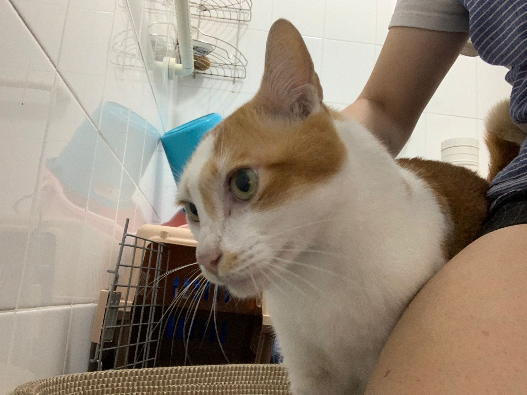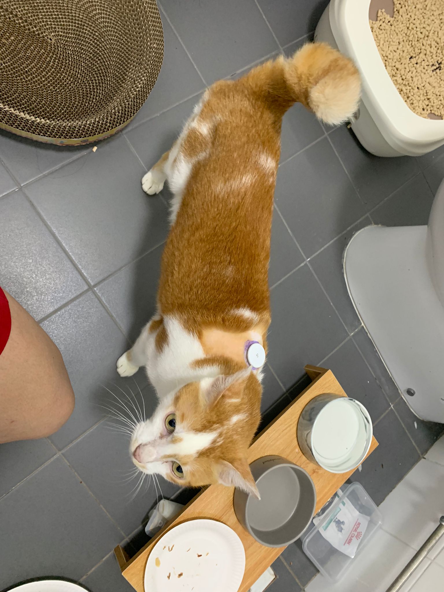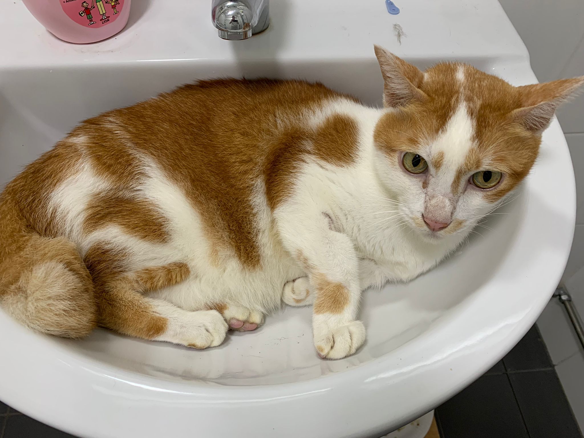 Sit on basin. Say hello to him and I check artdf and i sayang him twice n he jump down to monitor me and rub me here n there. Sure can jab, considering the timing. Targeting to be in good range n I’m giving him food now, so 6.40am jab. So little I wonder Erm