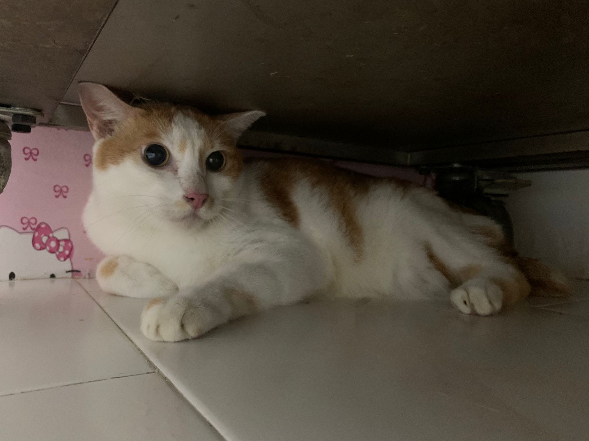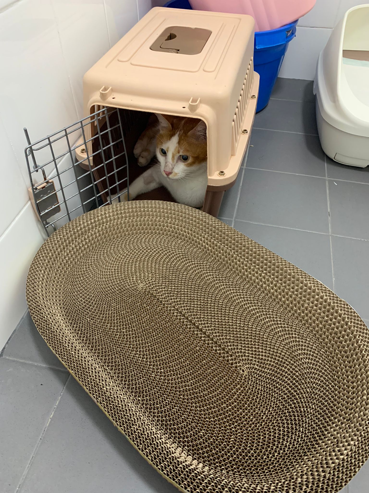9.30pm: he did eat some of the snack. Still under the cage, I know have to keep mopping him out is not the solution. But somehow he Duno is not smart or what, he will come out leh. Some cats like die die don’t come out one.