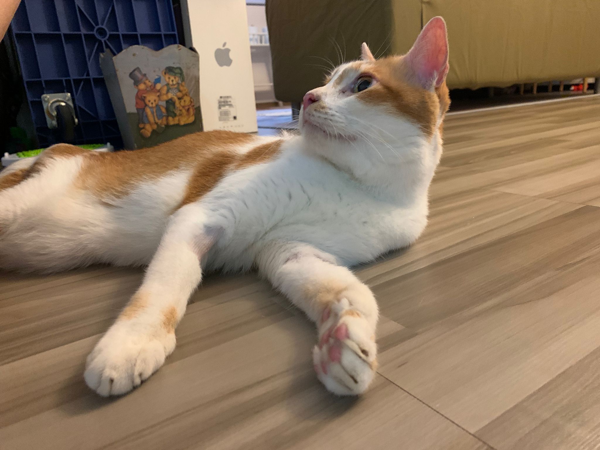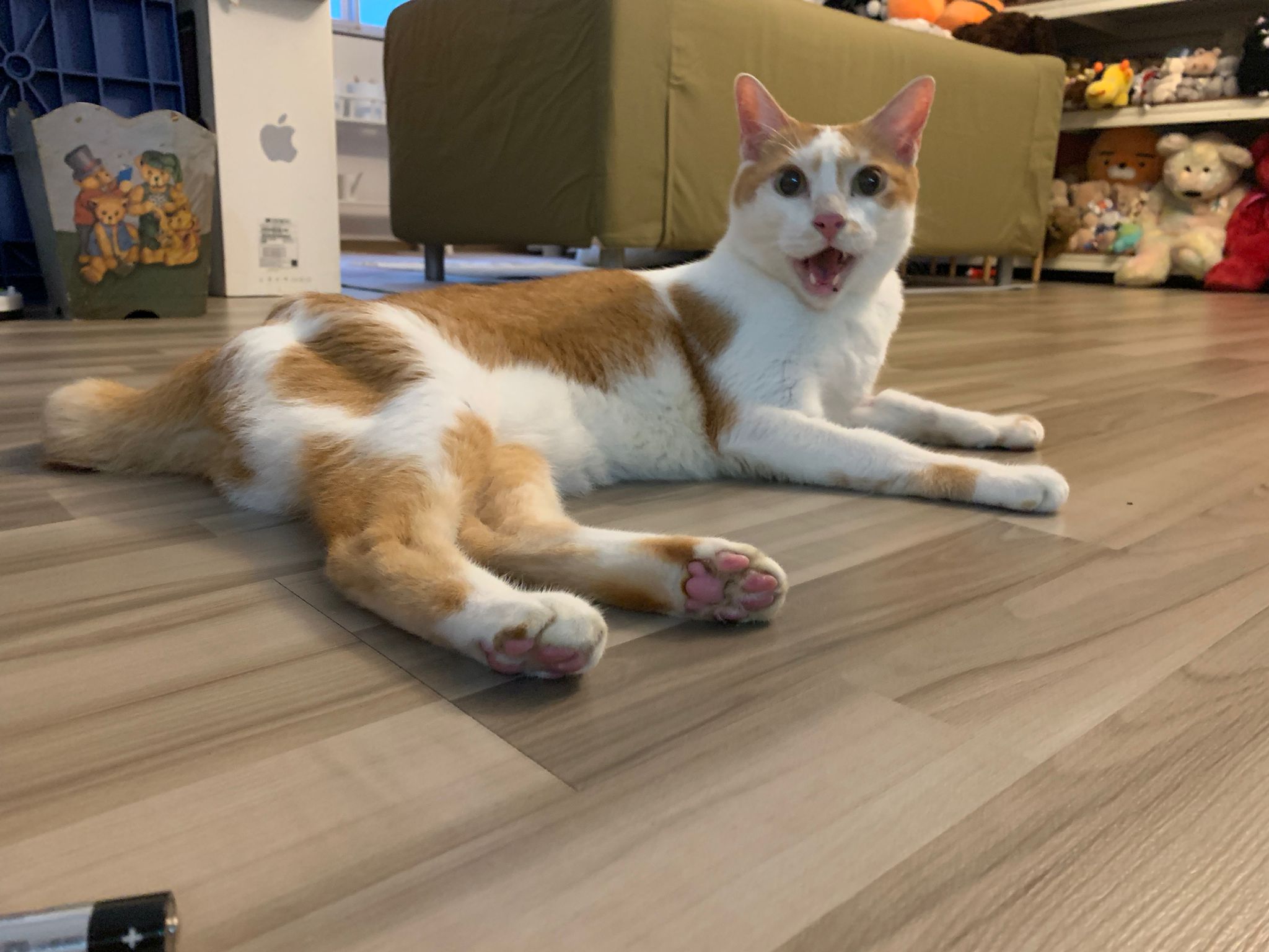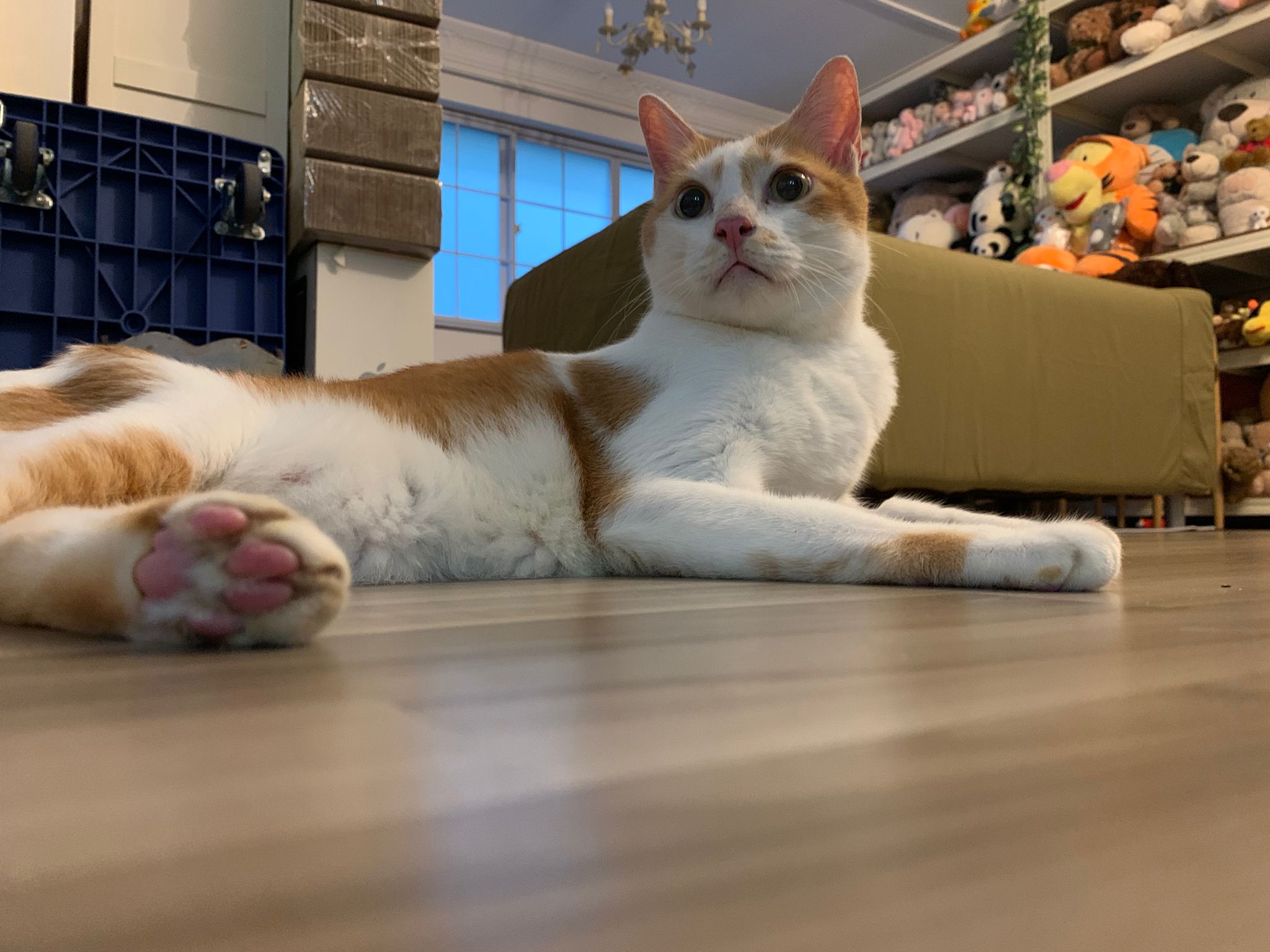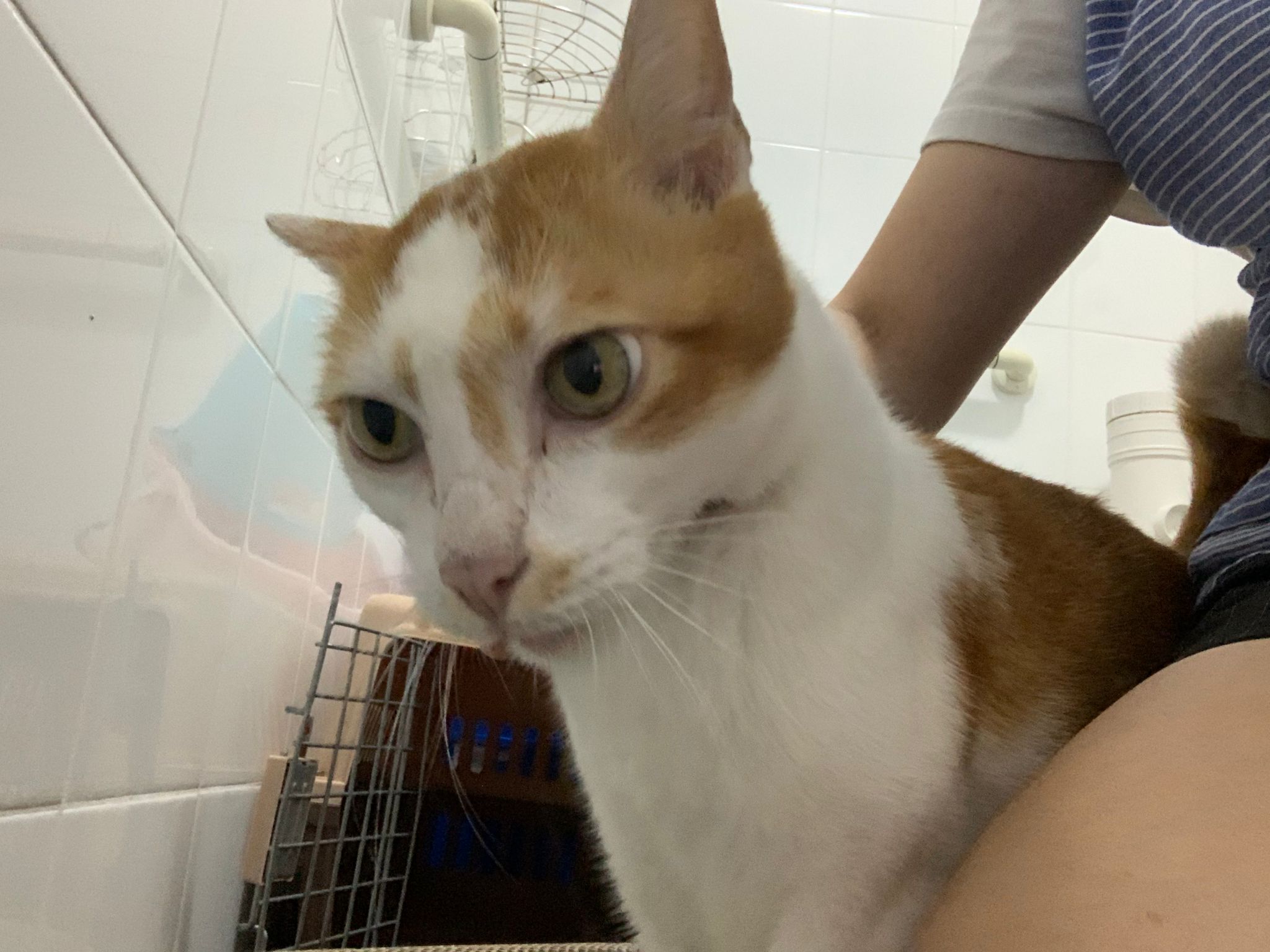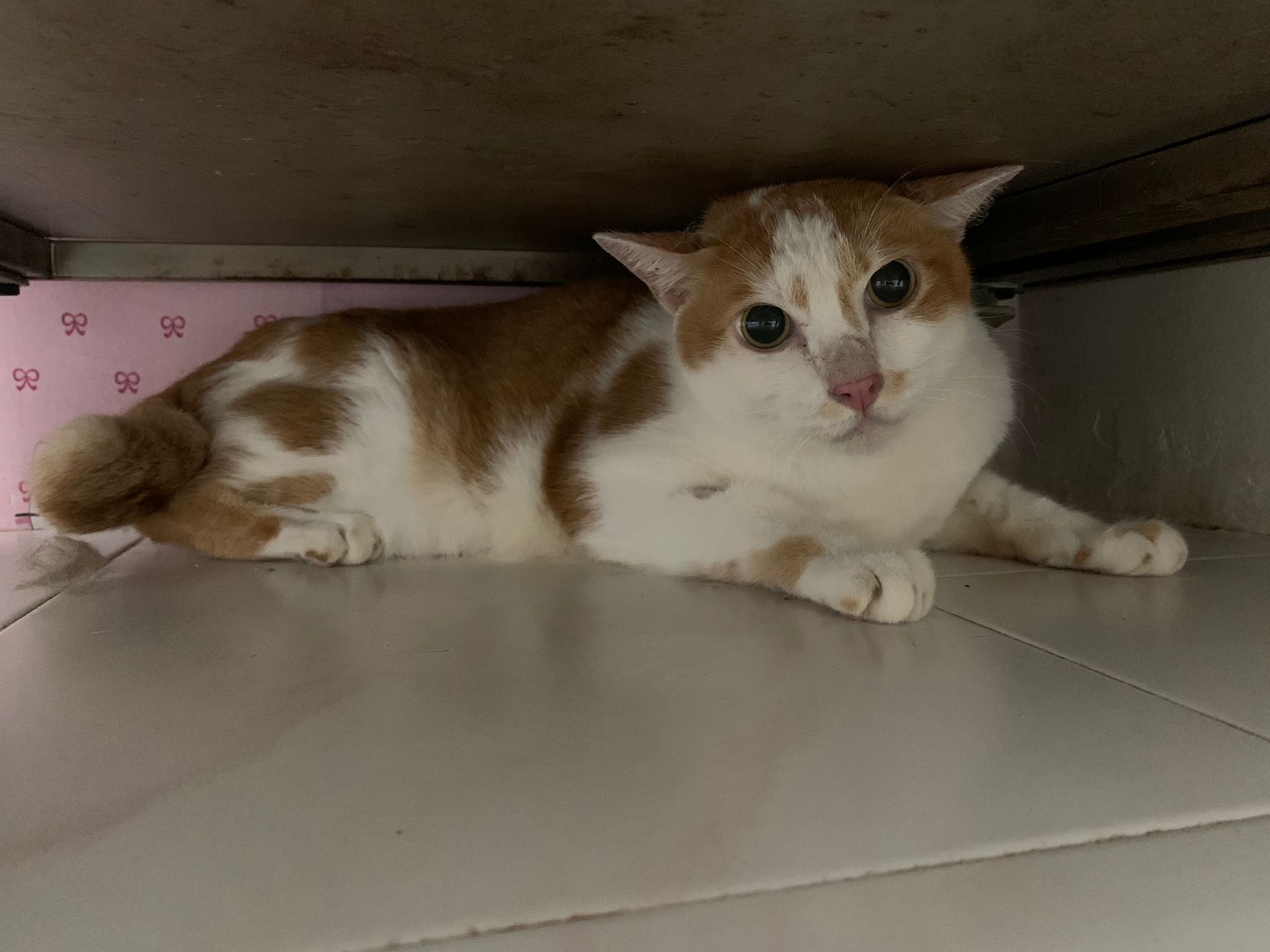 Took a flat mop to mop him out, he attack and smack the mop like enemy, but I need to get him out to check. come out didn’t go bonkers. Still ok leh. I keep using food to put near his face and sayang him n wipe his face off the dust he still ok leh. Though still hiss n hiss more when the rest all meowing (cos v hungry la).