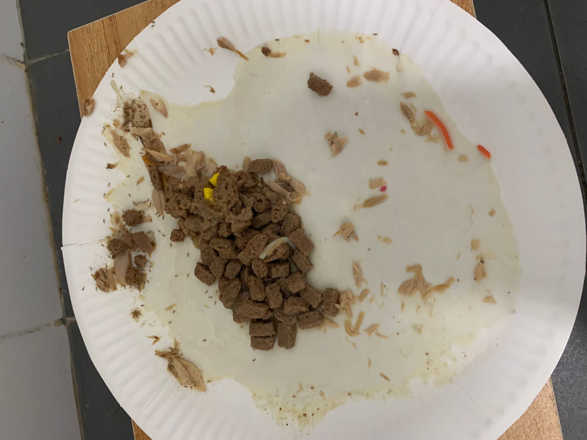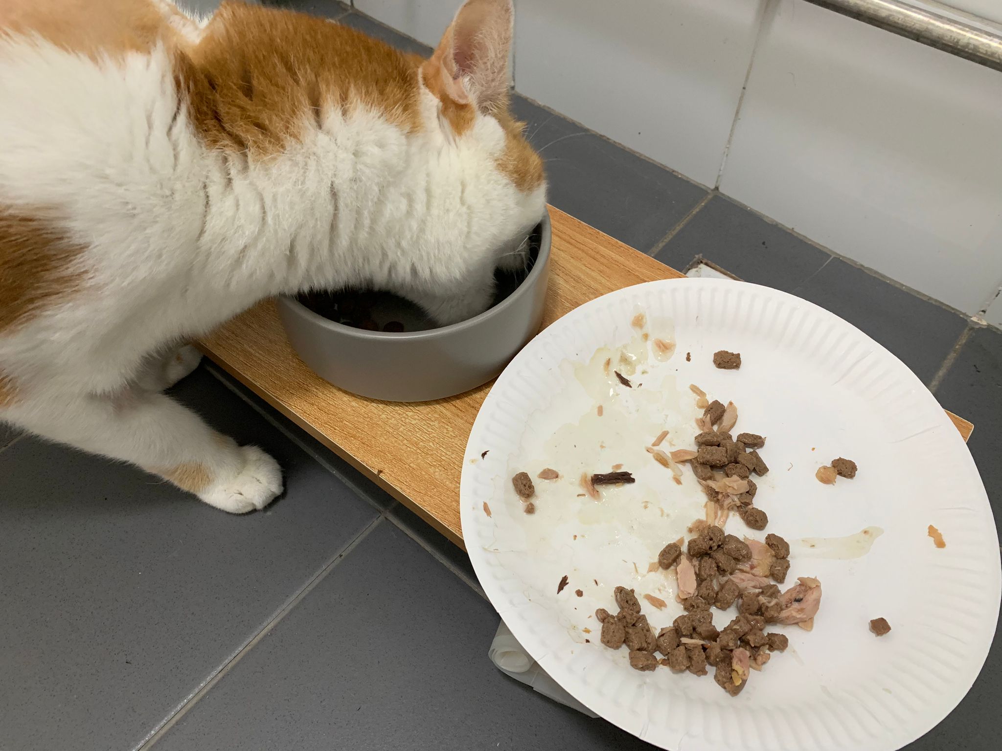 See that there is a slight chance he might eat up. I fed him some tiny like feeding ciao treat like that. He eat until quite ok. Consider as make up a bit tonight.