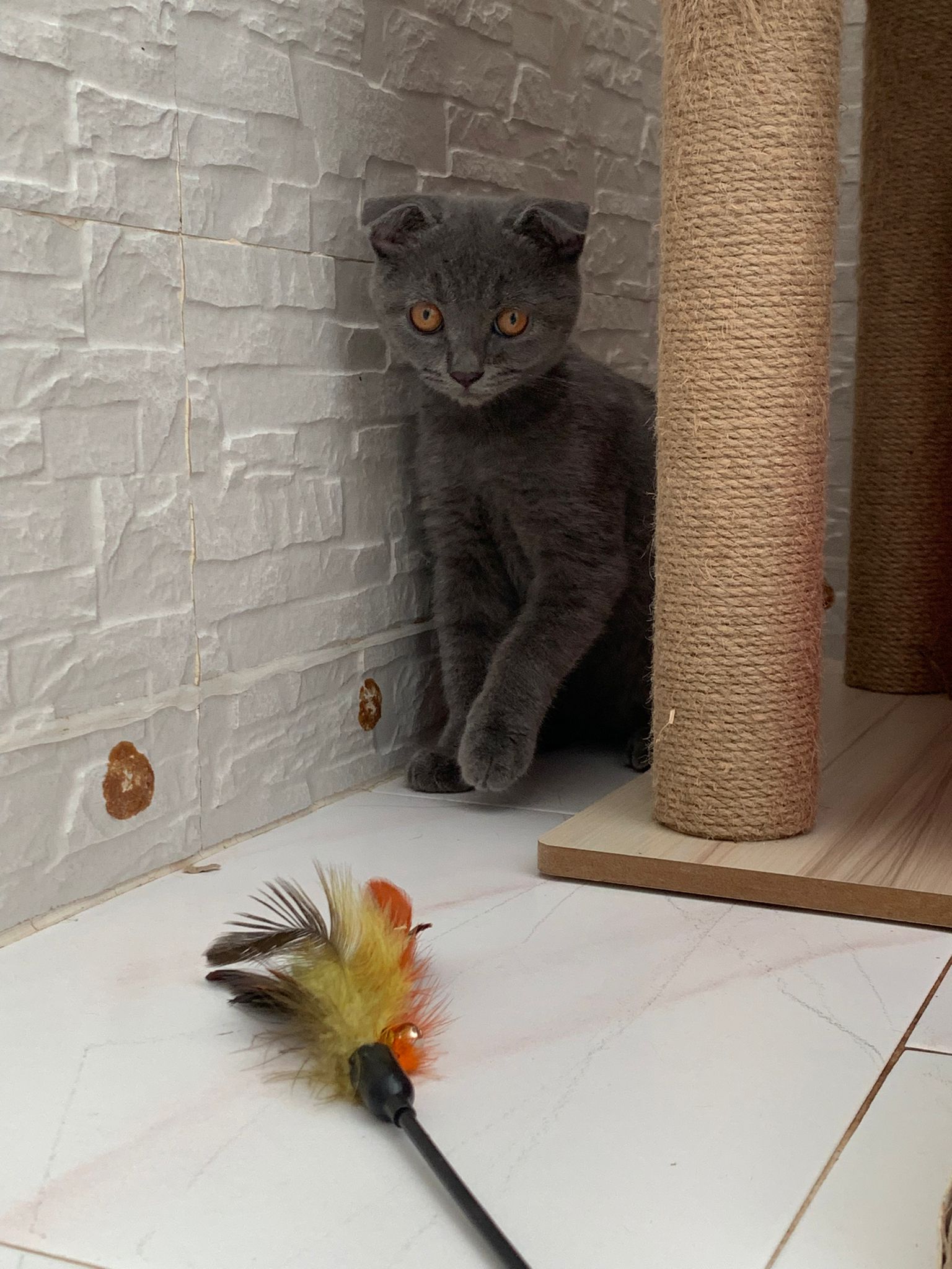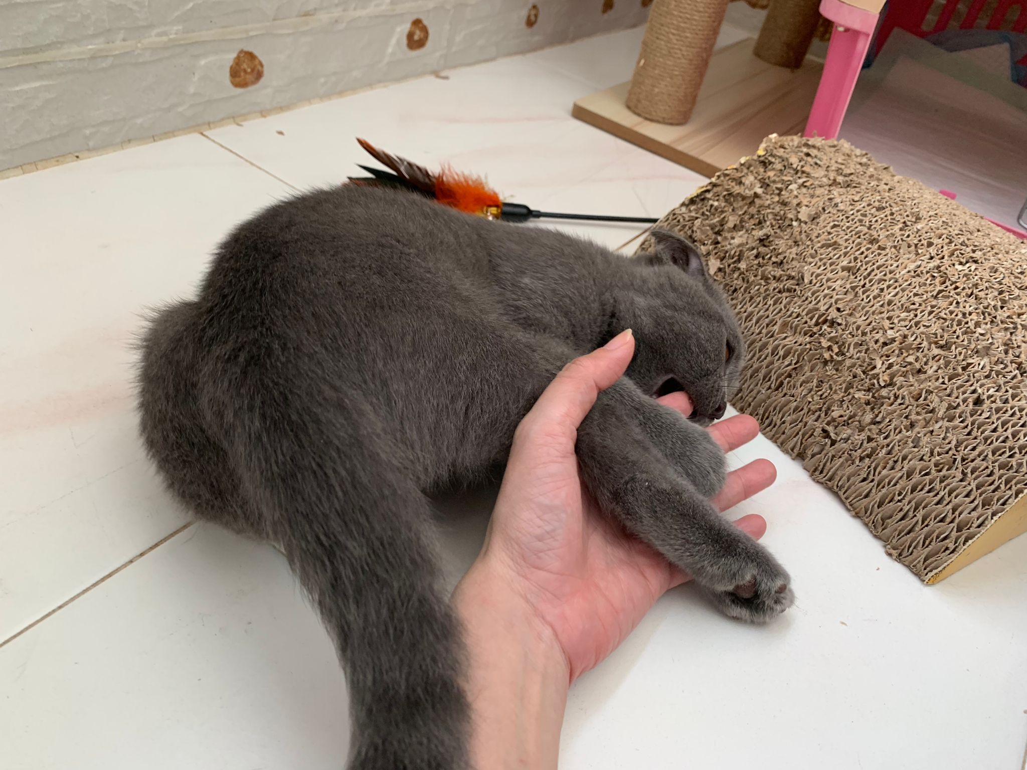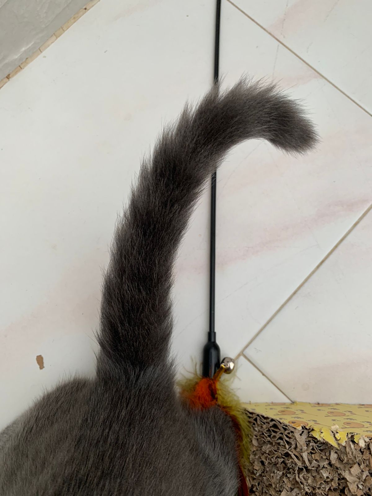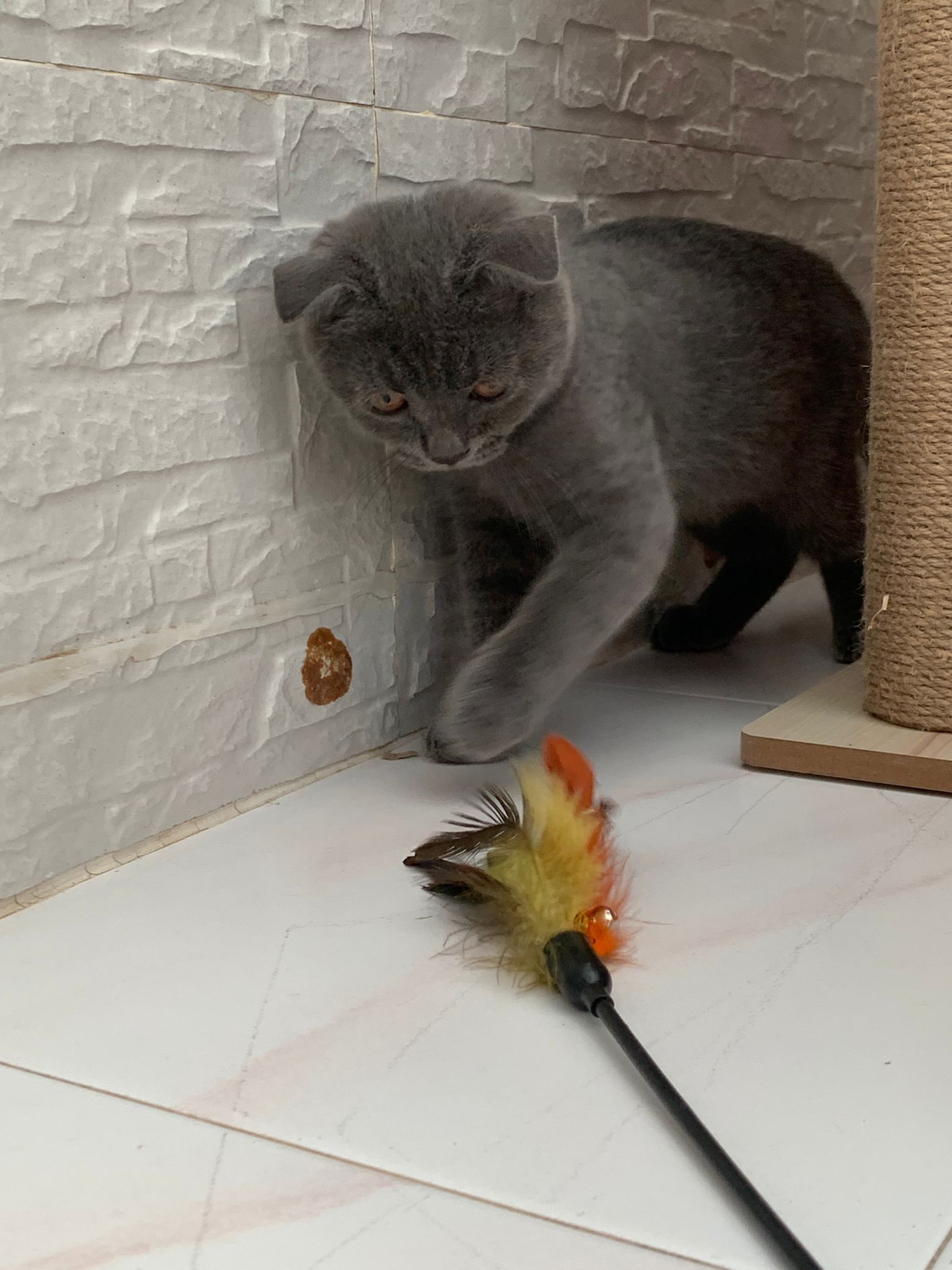 He scare of feathers and want to play w feather – whack whack whack it