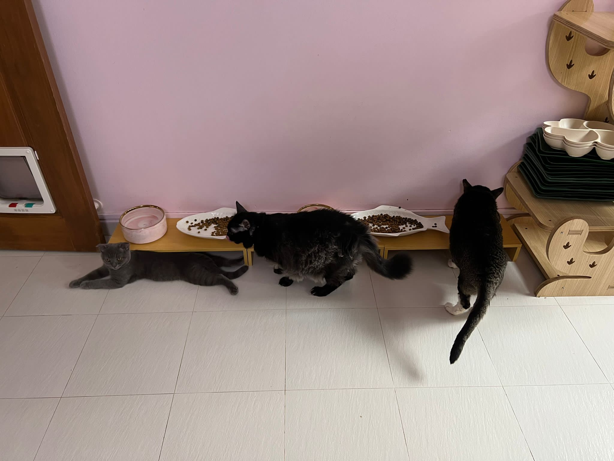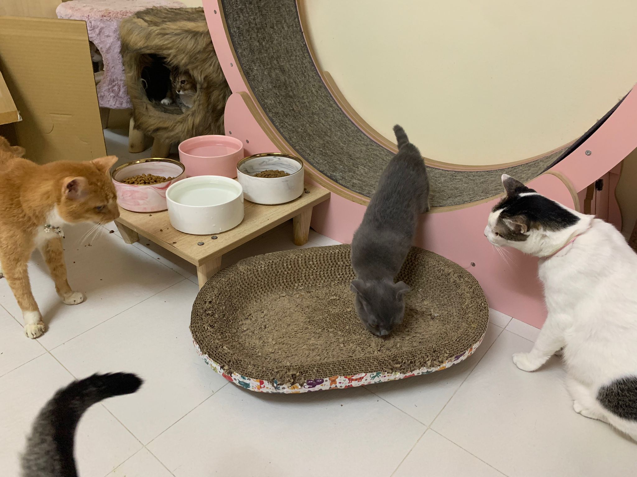 Morning: V active. He seem happy in a multi cats household. Soon he gonna be the only prince. Duno he will bore or not. eating well, share food w Carrara, rena, didi. Will chase sweeties butt, her butt too cute. He like also aim tao tao…. Erm Carrara told him to? Got one point he wanna eat what sweeties is eating, sweeties push his head down. play w rope. play w Oly tail – make Oly angry. smell Bessie butt.