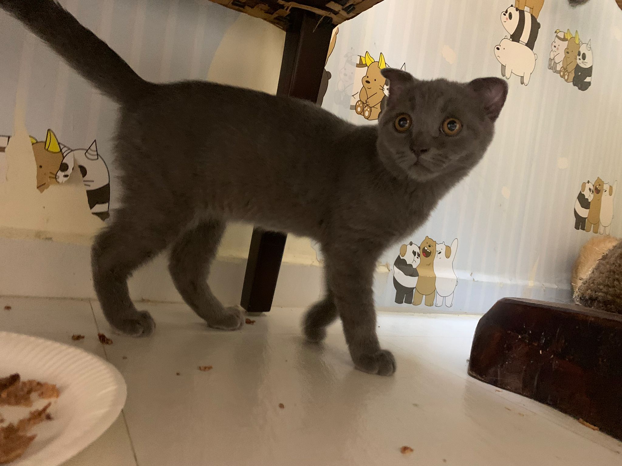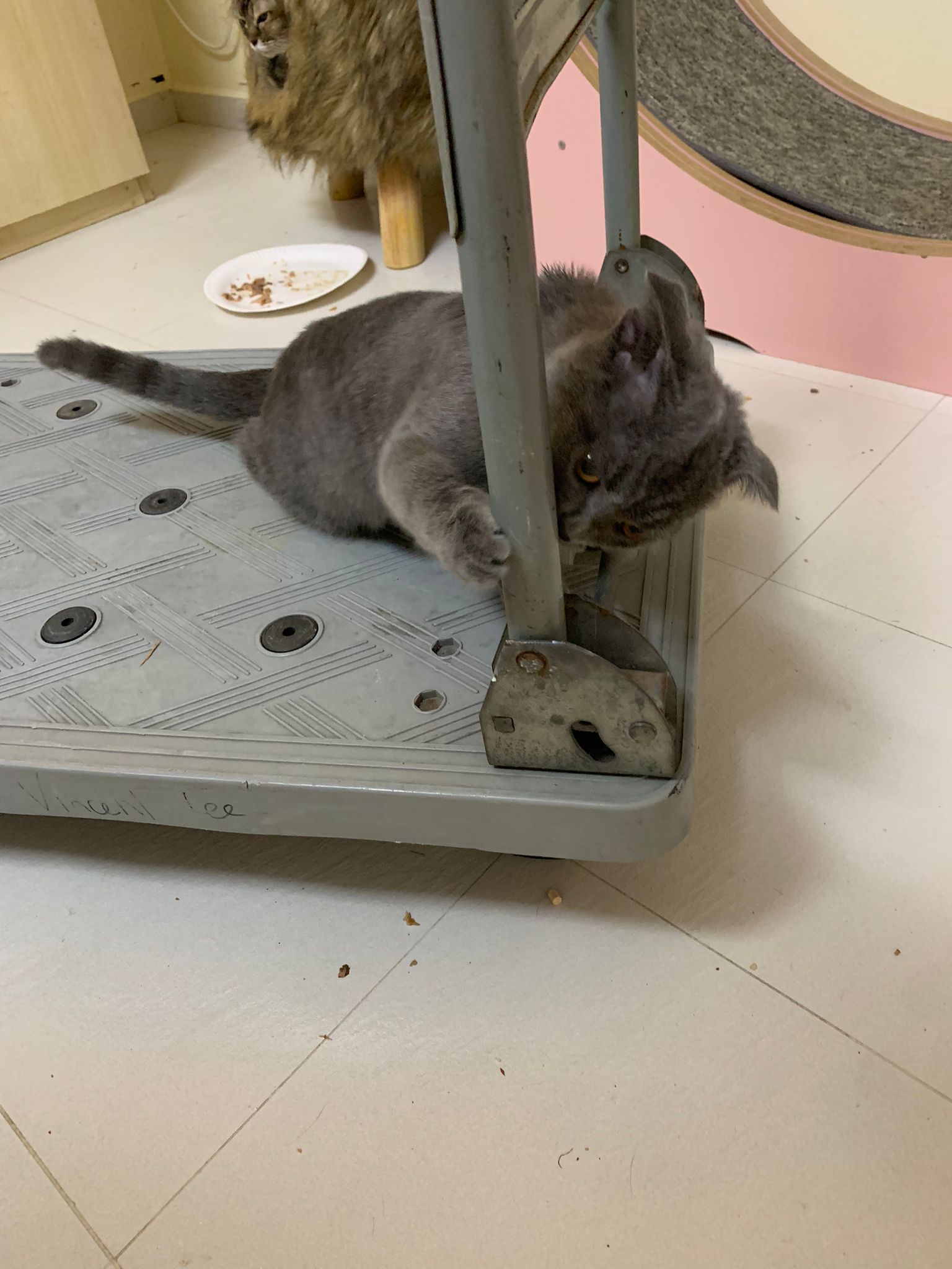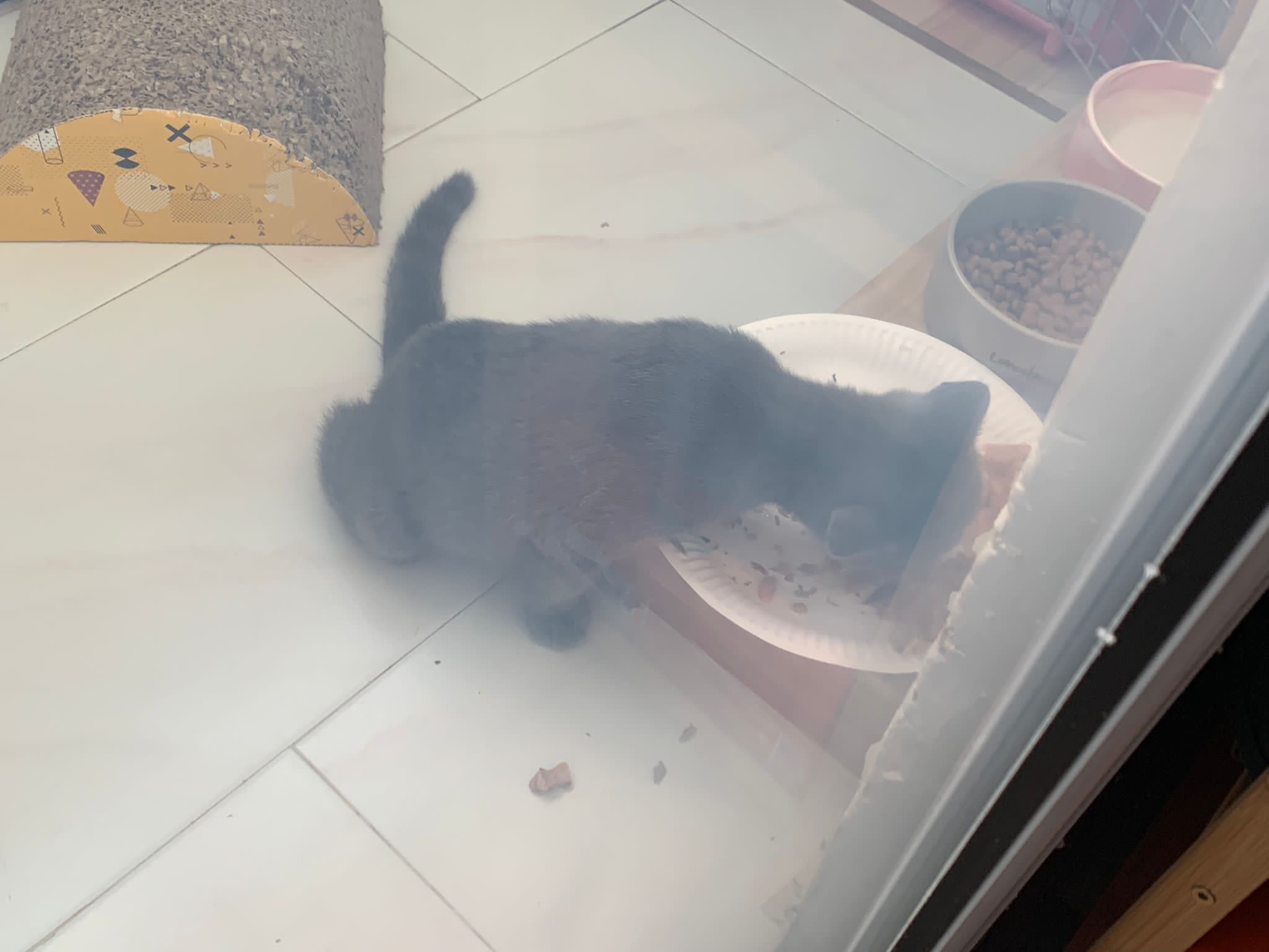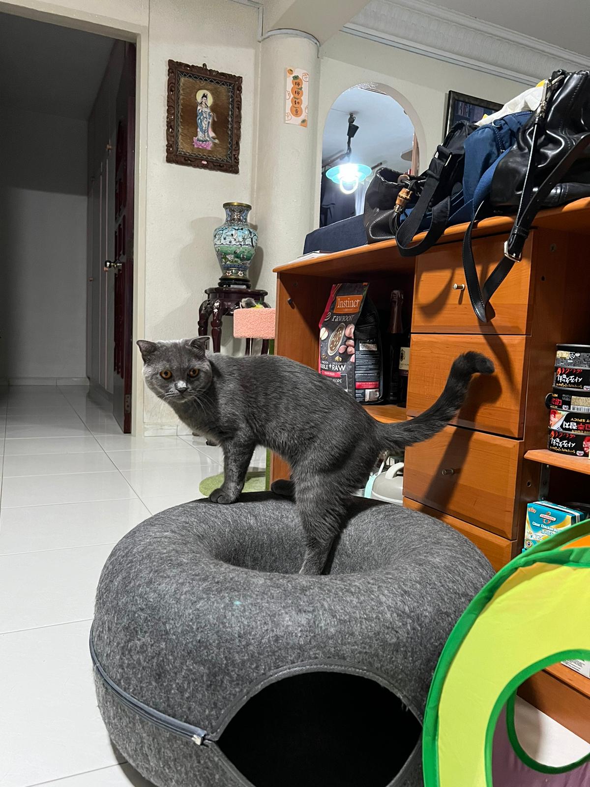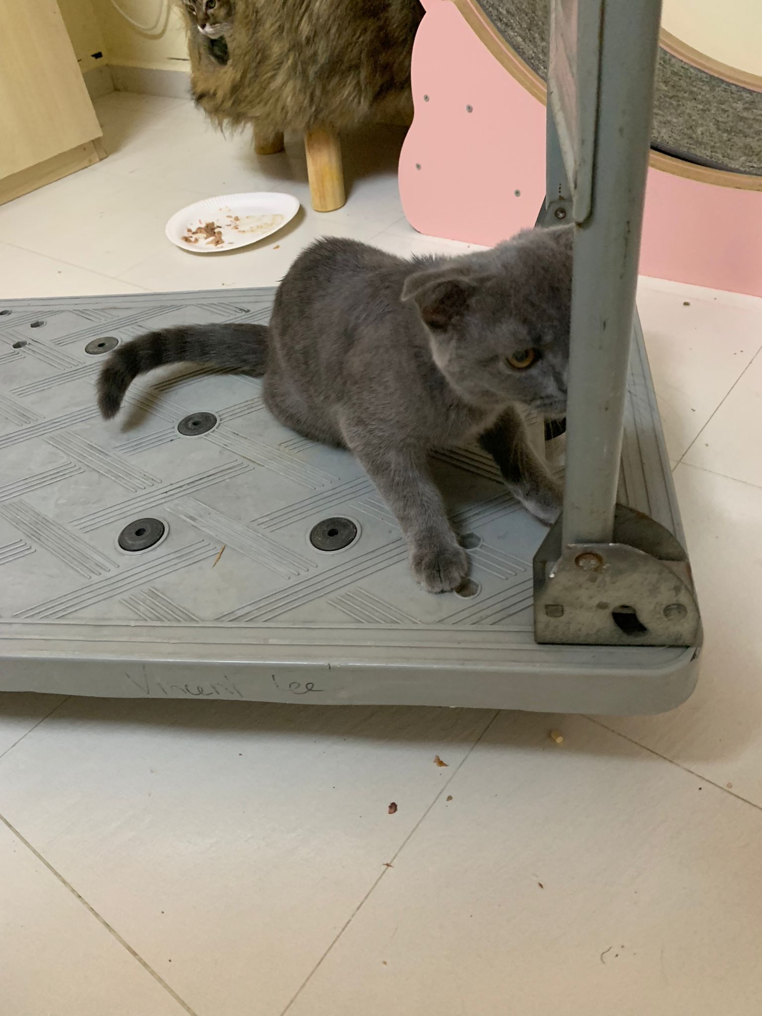 8.50pm: lumi t enter 猫房 4G for quarantine one night cos not tested. Wa checked. Boy. Super cute though I don’t like kitten. He really like mix. Confirm bsh but I think plus Scottish fold now? Not curls. V small. About 3-4 months bah. I go change to 3.5 months. Weigh only 1.61kg, needs some time to beef up to Steralise. Hungry, go eat kibble on his own and I open a can of tuna w white fish and he eat also. He eat damn cute also. He really very cute. friendly. Not naughty. But he initially seem scare when my hand go near to sayang him, he scare I want to hit him?