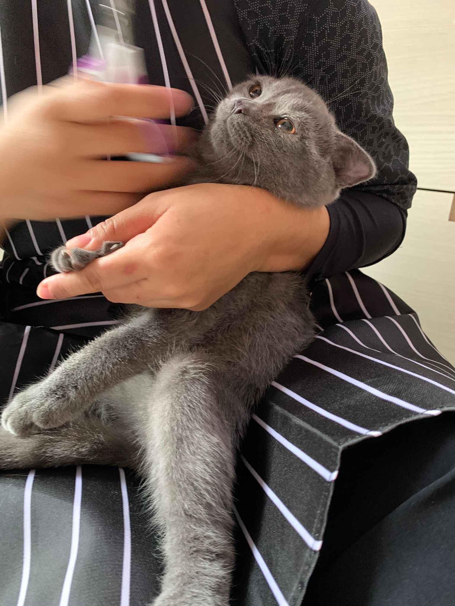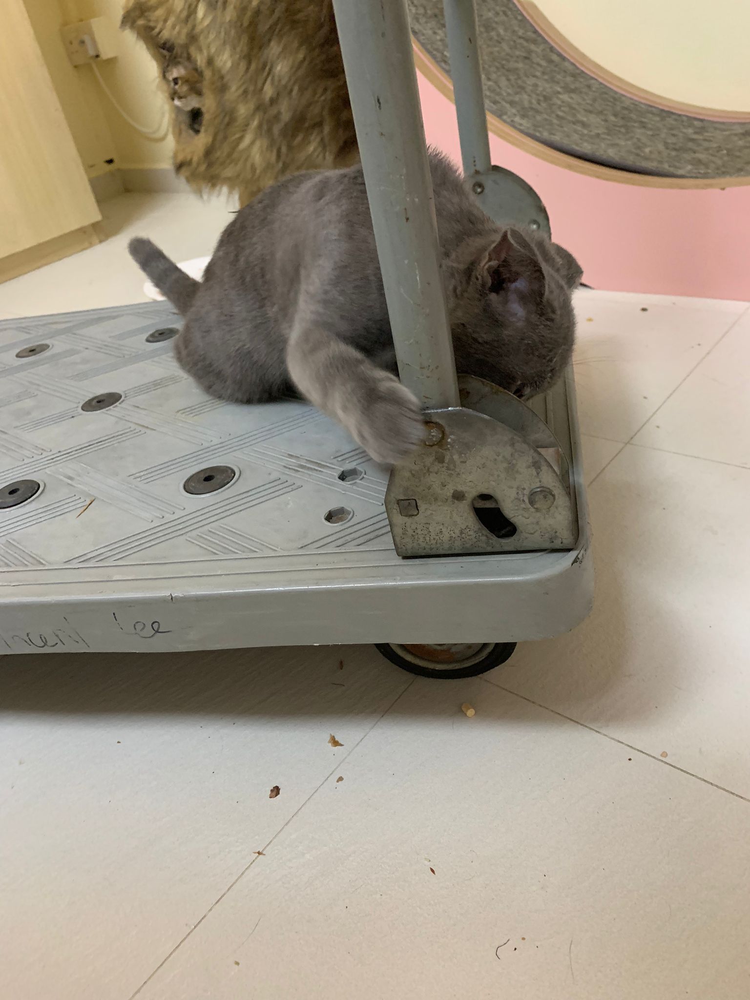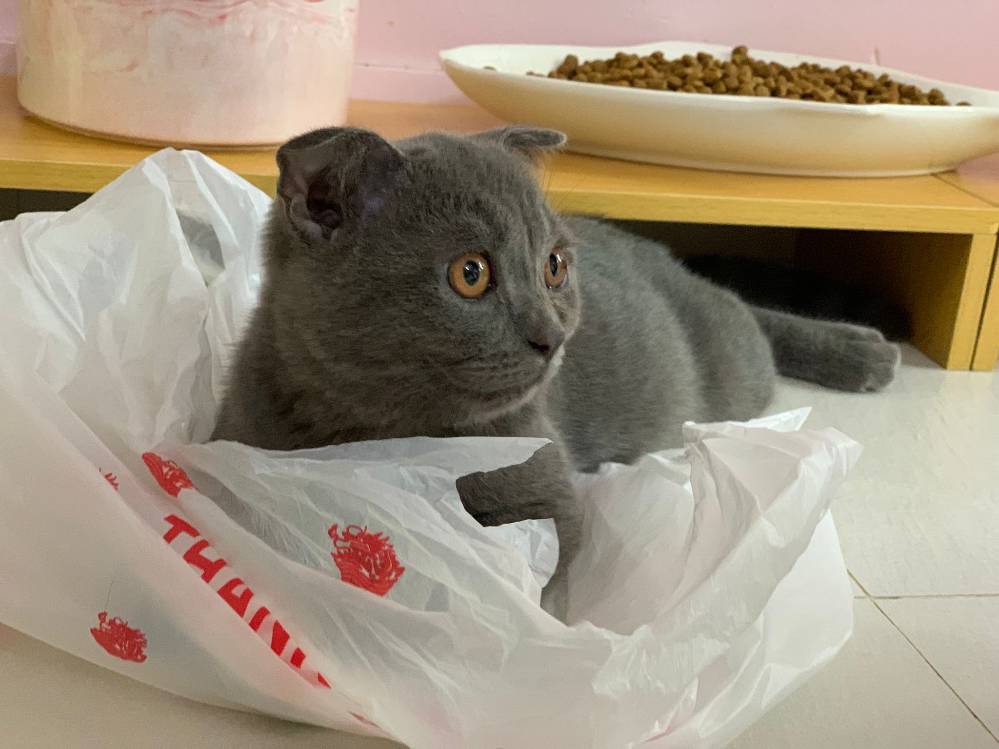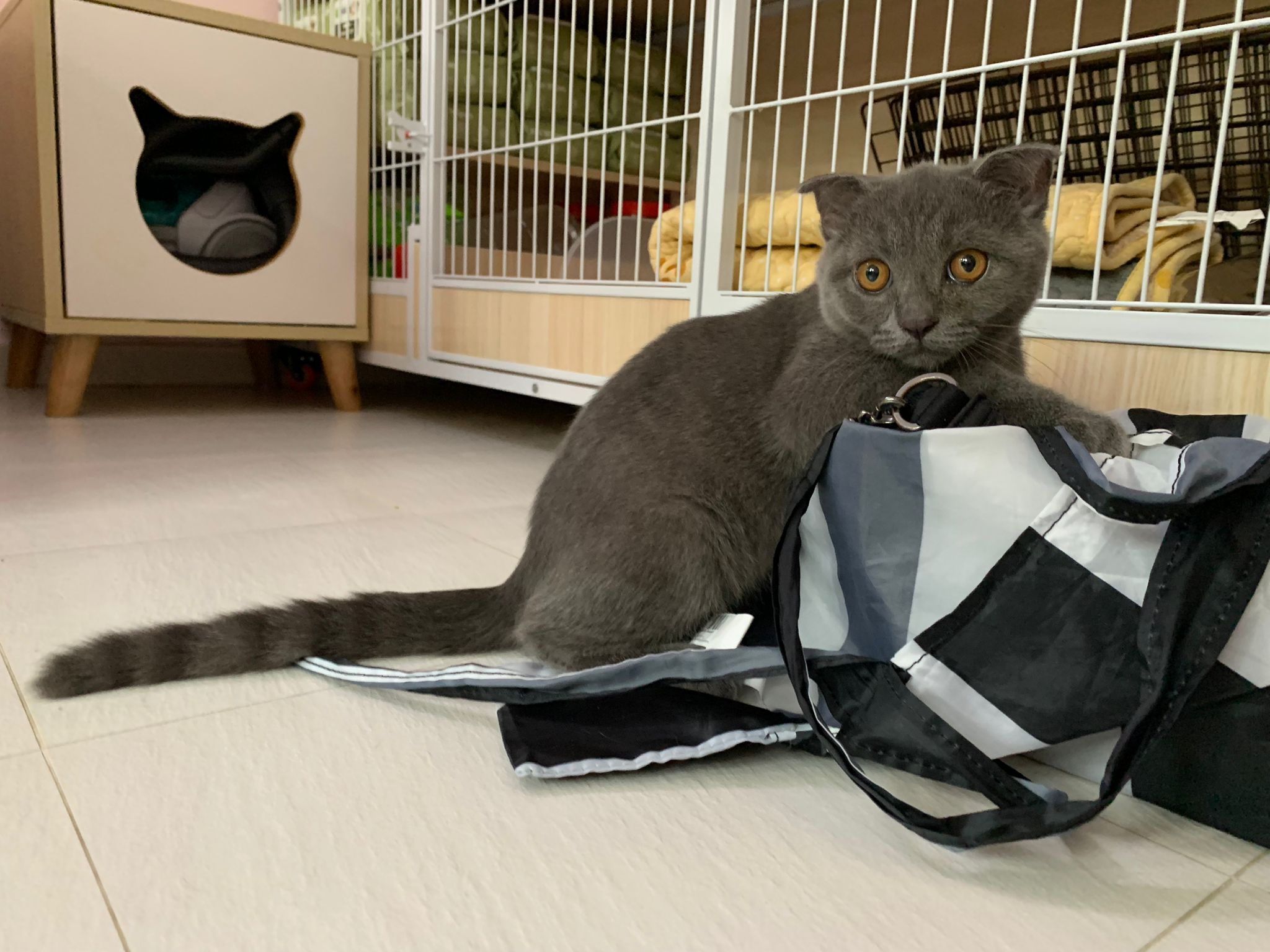 8.50pm: lumi t enter 猫房 4G for quarantine one night cos not tested. Wa checked. Boy. Super cute though I don’t like kitten. He really like mix. Confirm bsh but I think plus Scottish fold now? Not curls. V small. About 3-4 months bah. I go change to 3.5 months. Weigh only 1.61kg, needs some time to beef up to Steralise. Hungry, go eat kibble on his own and I open a can of tuna w white fish and he eat also. He eat damn cute also. He really very cute. friendly. Not naughty. But he initially seem scare when my hand go near to sayang him, he scare I want to hit him?