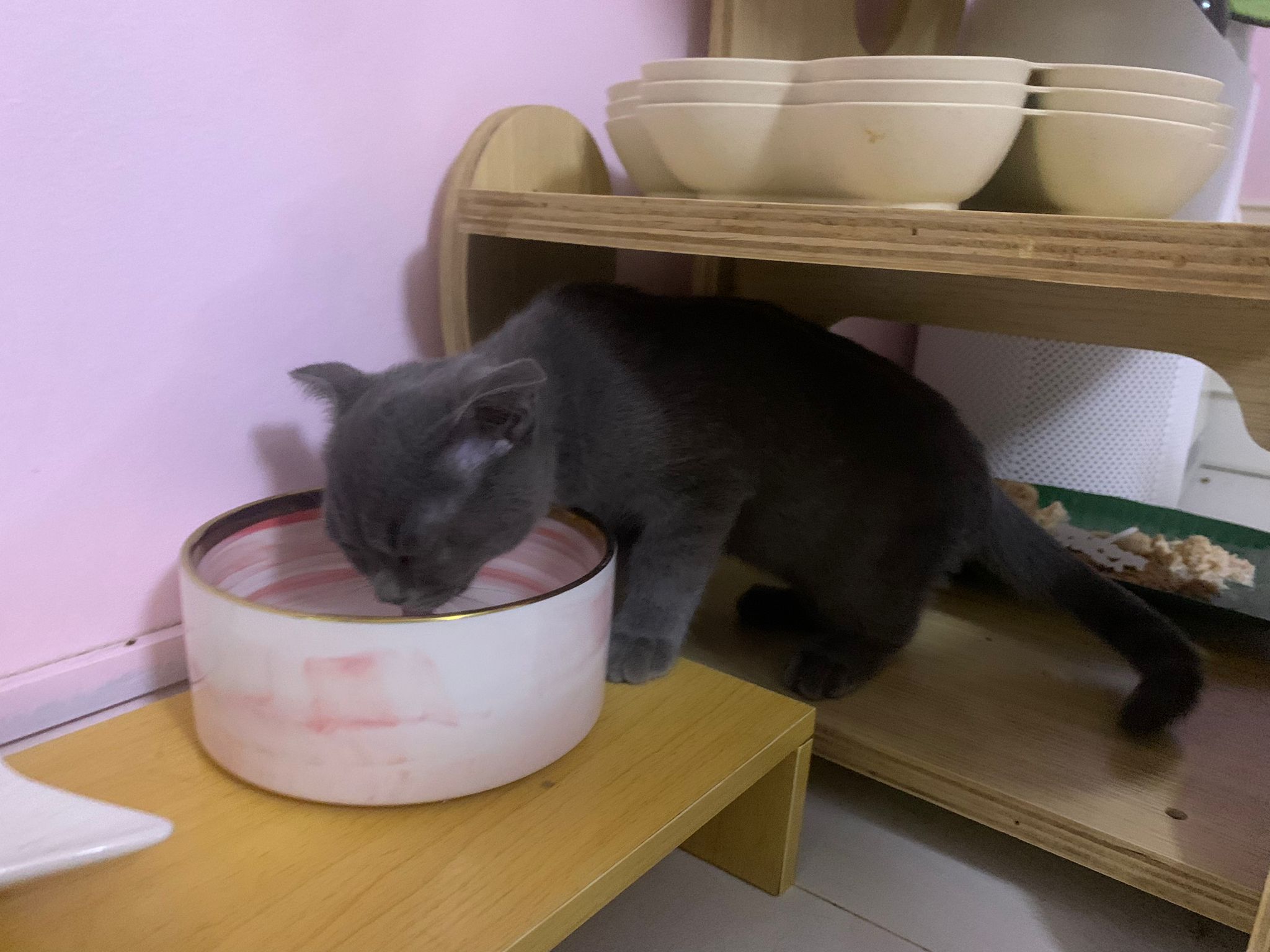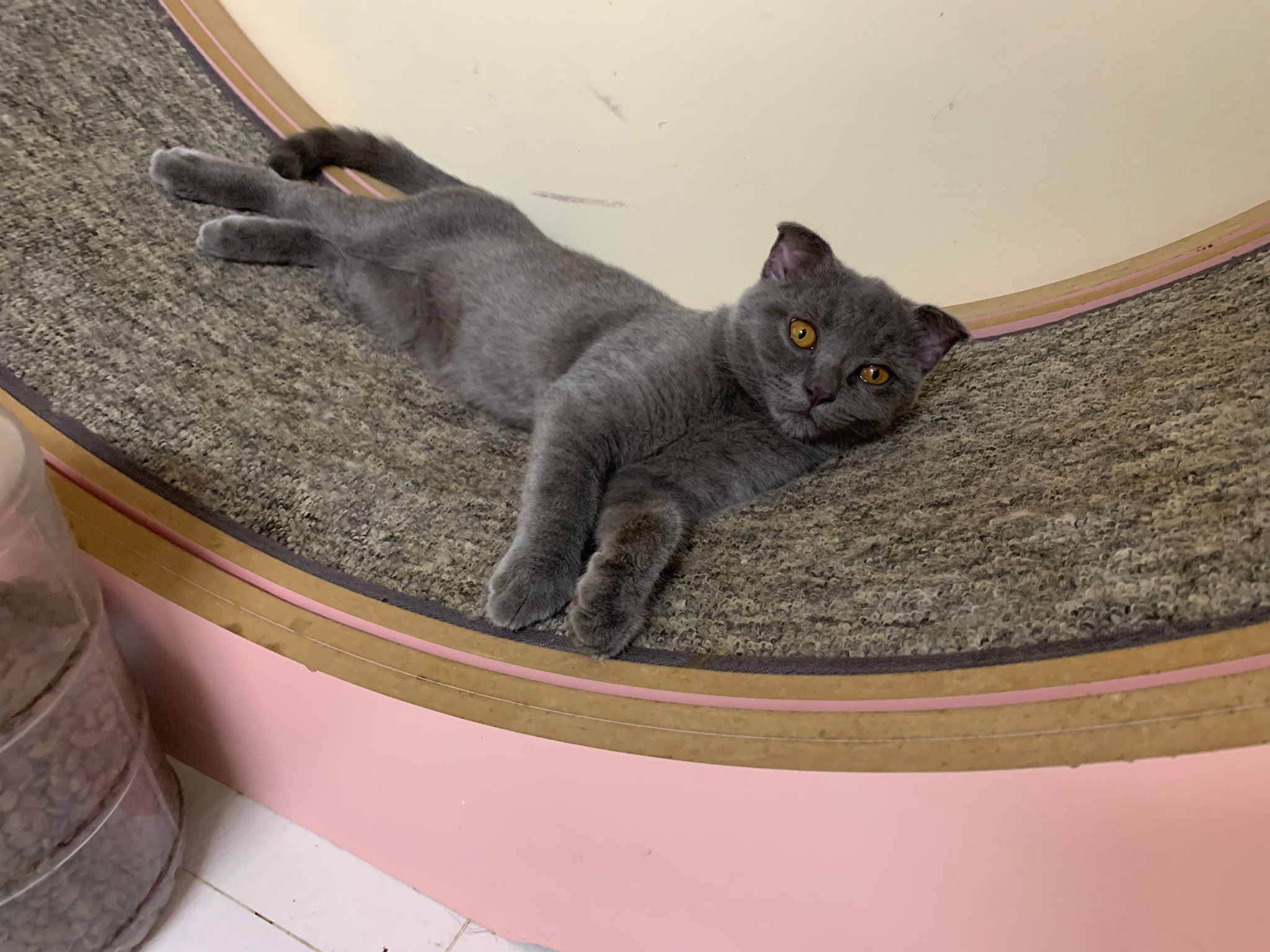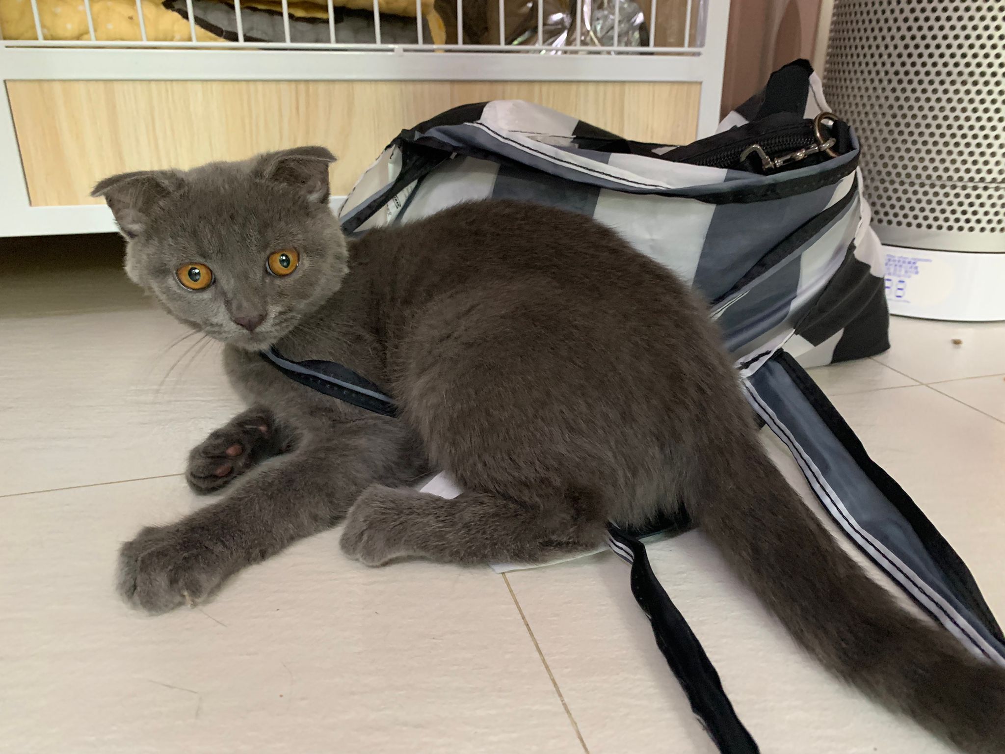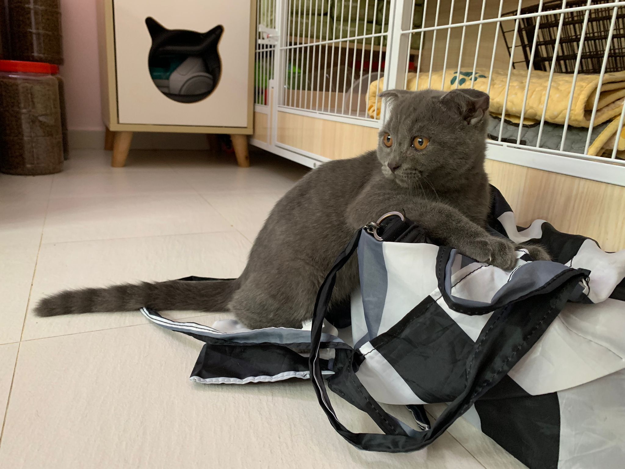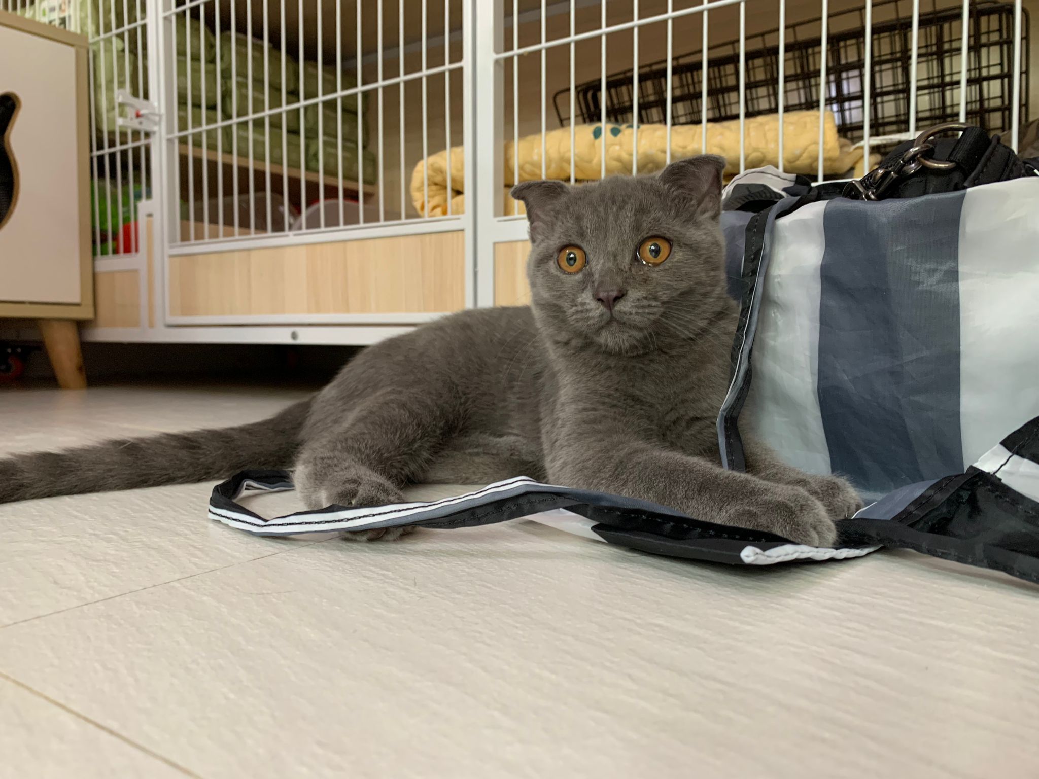 8.50pm: lumi t enter 猫房 4G for quarantine one night cos not tested. Wa checked. Boy. Super cute though I don’t like kitten. He really like mix. Confirm bsh but I think plus Scottish fold now? Not curls. V small. About 3-4 months bah. I go change to 3.5 months. Weigh only 1.61kg, needs some time to beef up to Steralise. Hungry, go eat kibble on his own and I open a can of tuna w white fish and he eat also. He eat damn cute also. He really very cute. friendly. Not naughty. But he initially seem scare when my hand go near to sayang him, he scare I want to hit him?