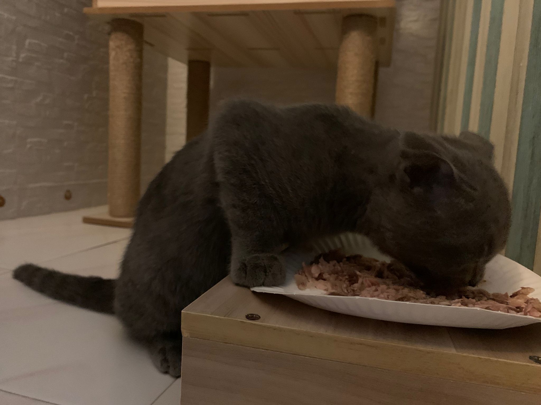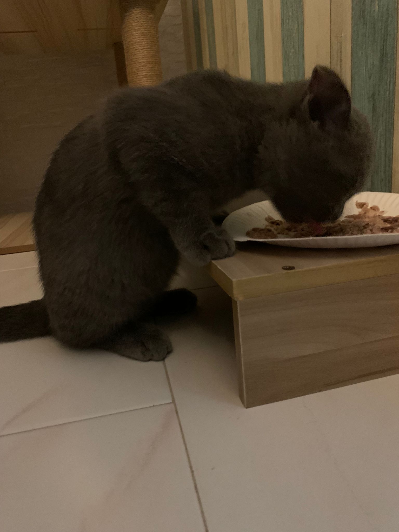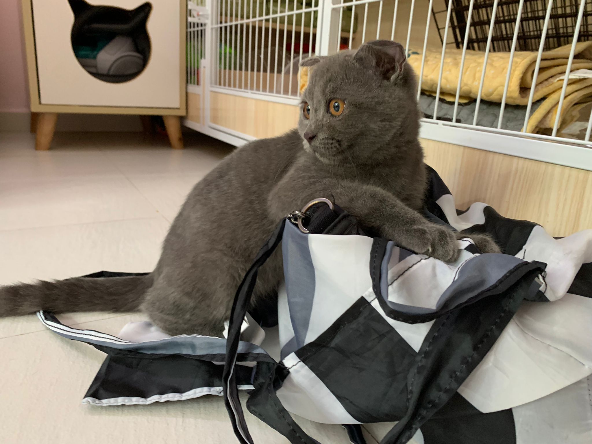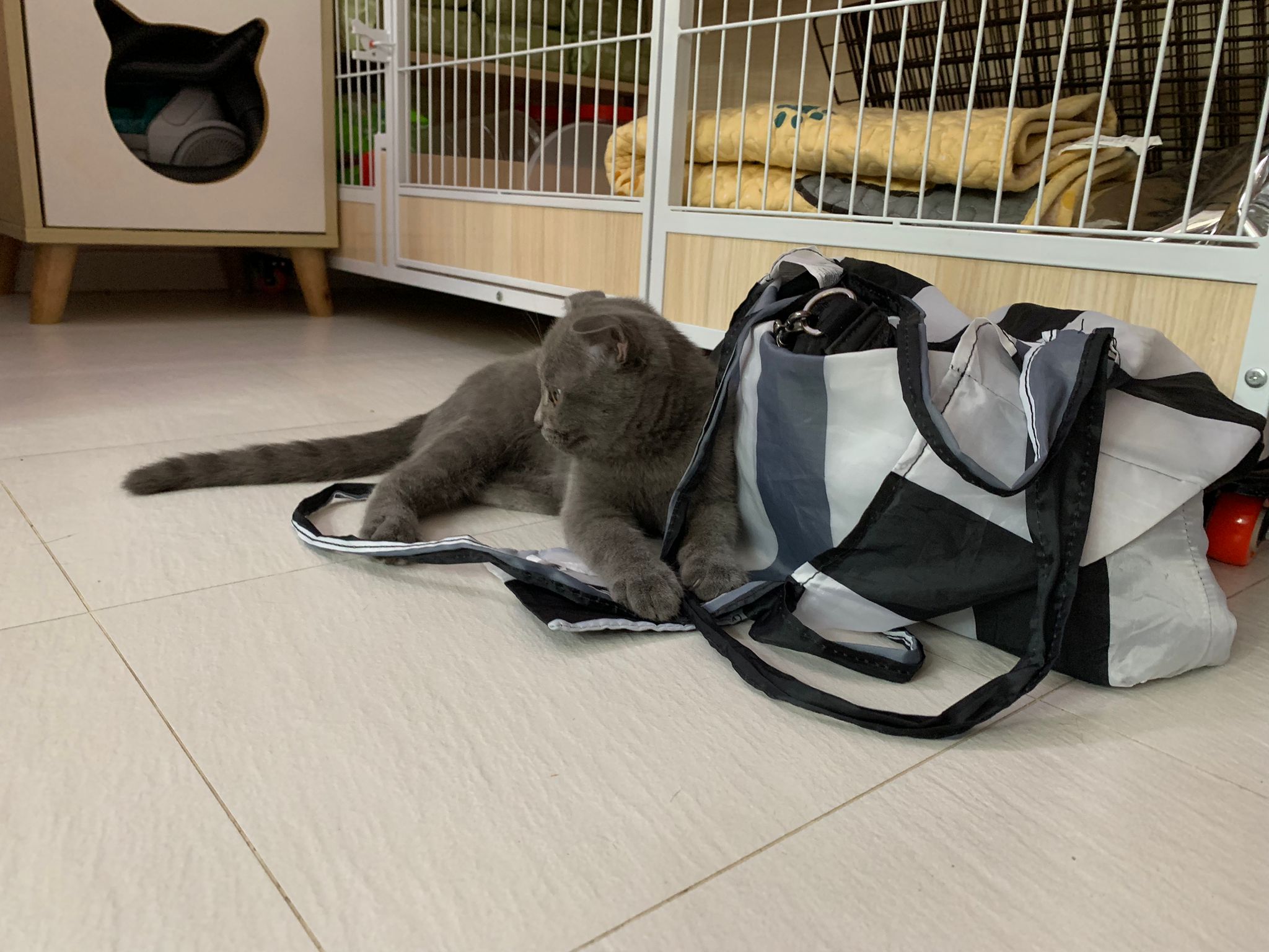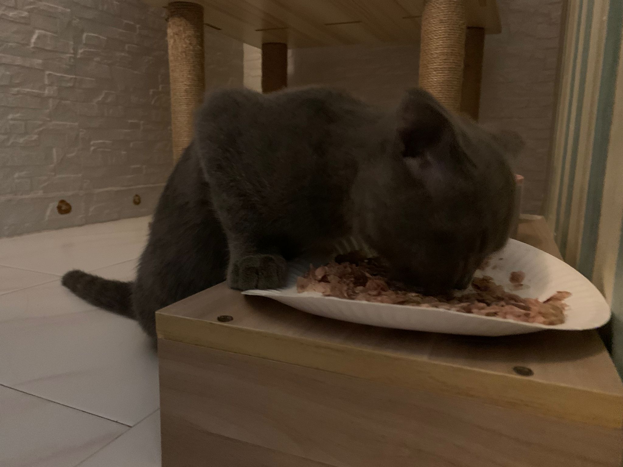 8.50pm: lumi t enter 猫房 4G for quarantine one night cos not tested. Wa checked. Boy. Super cute though I don’t like kitten. He really like mix. Confirm bsh but I think plus Scottish fold now? Not curls. V small. About 3-4 months bah. I go change to 3.5 months. Weigh only 1.61kg, needs some time to beef up to Steralise. Hungry, go eat kibble on his own and I open a can of tuna w white fish and he eat also. He eat damn cute also. He really very cute. friendly. Not naughty. But he initially seem scare when my hand go near to sayang him, he scare I want to hit him?