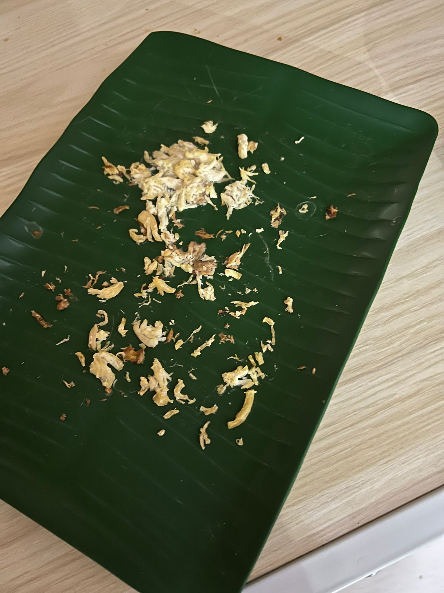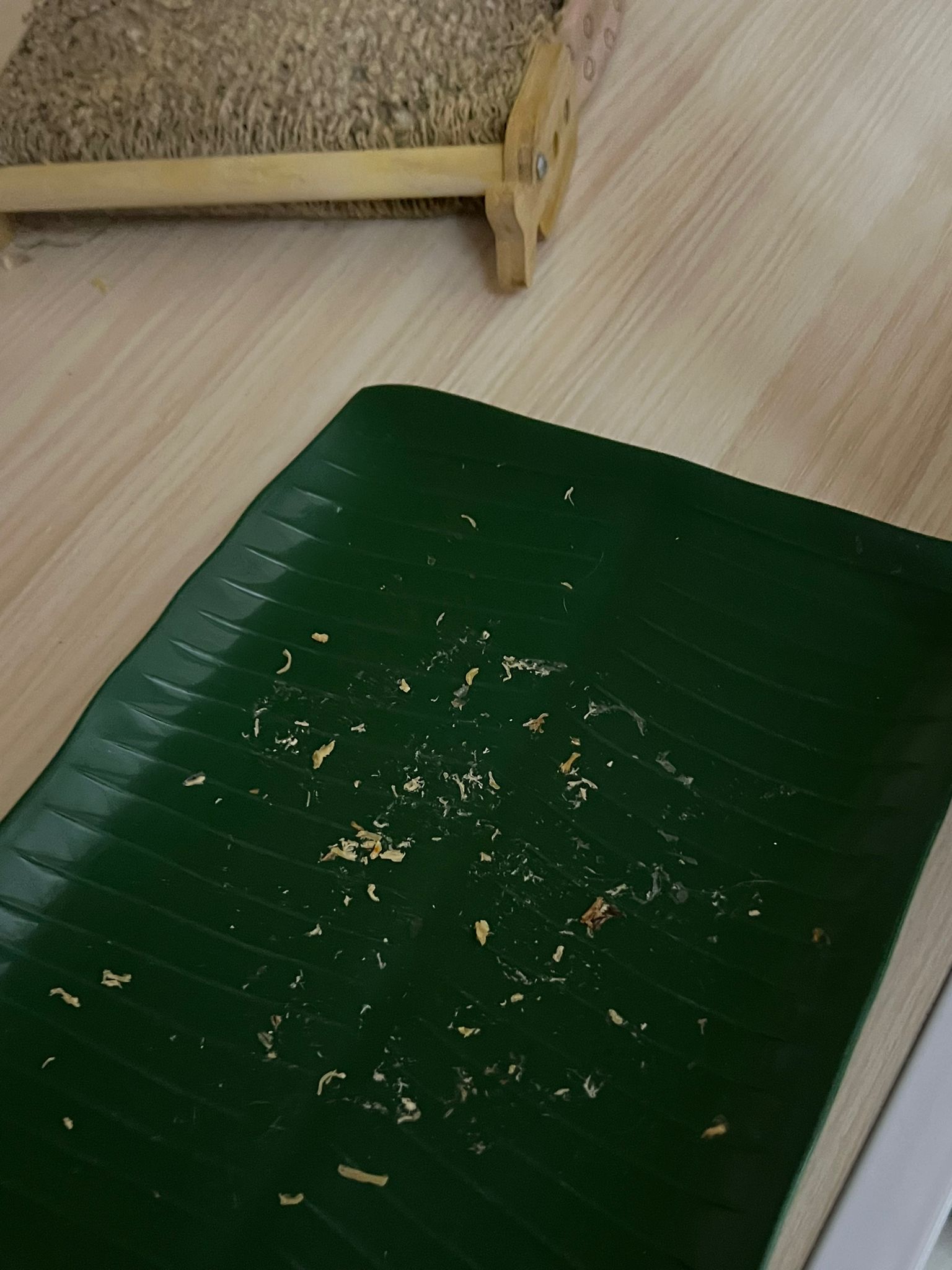 I serve food and he don’t know how to come down ah. I got to carry him down n he scare n he see food he happy quickly eat.