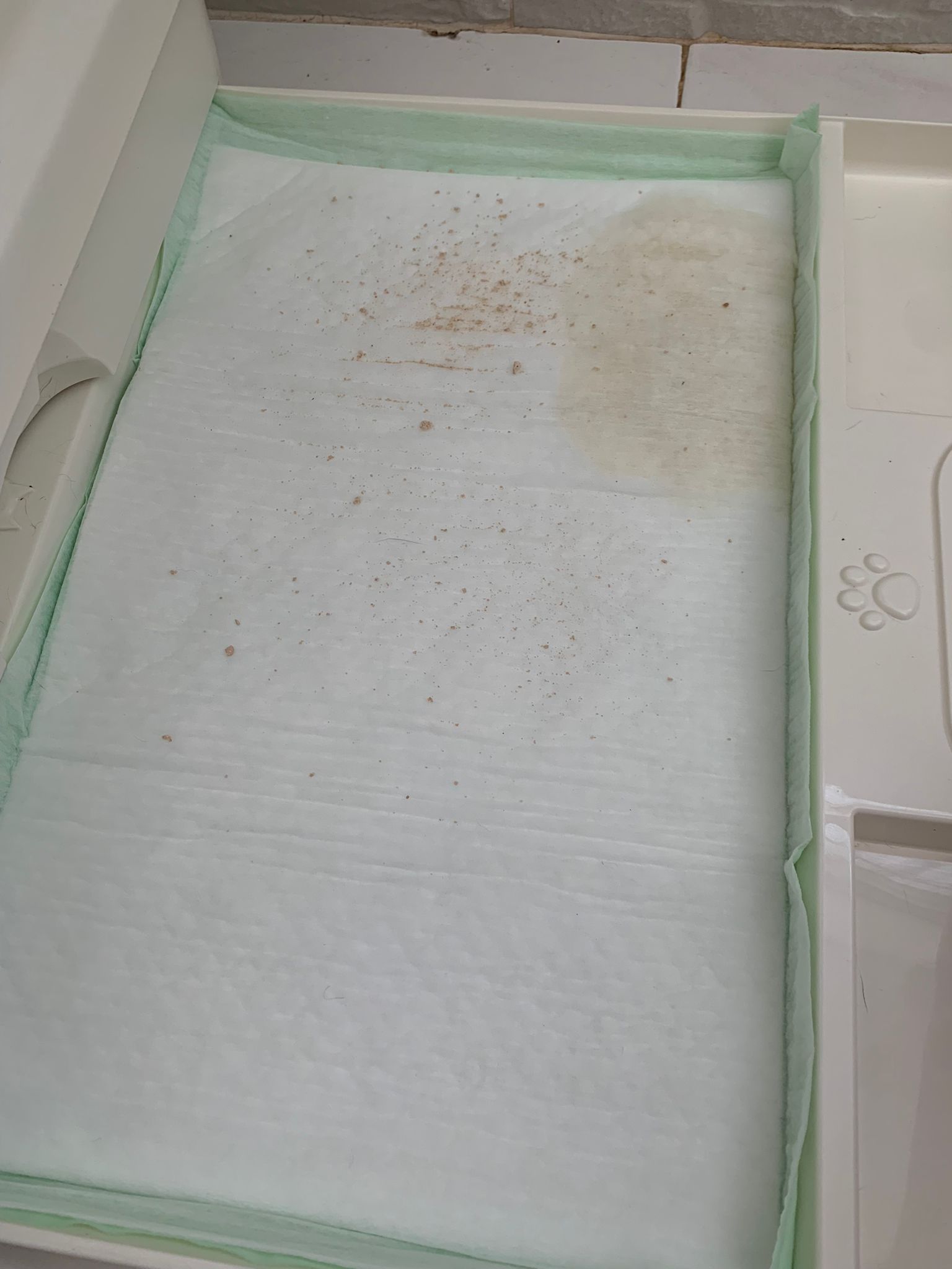 Morning; no poo, got pee, he knows how to use bin. Good cleared. On highest deck.