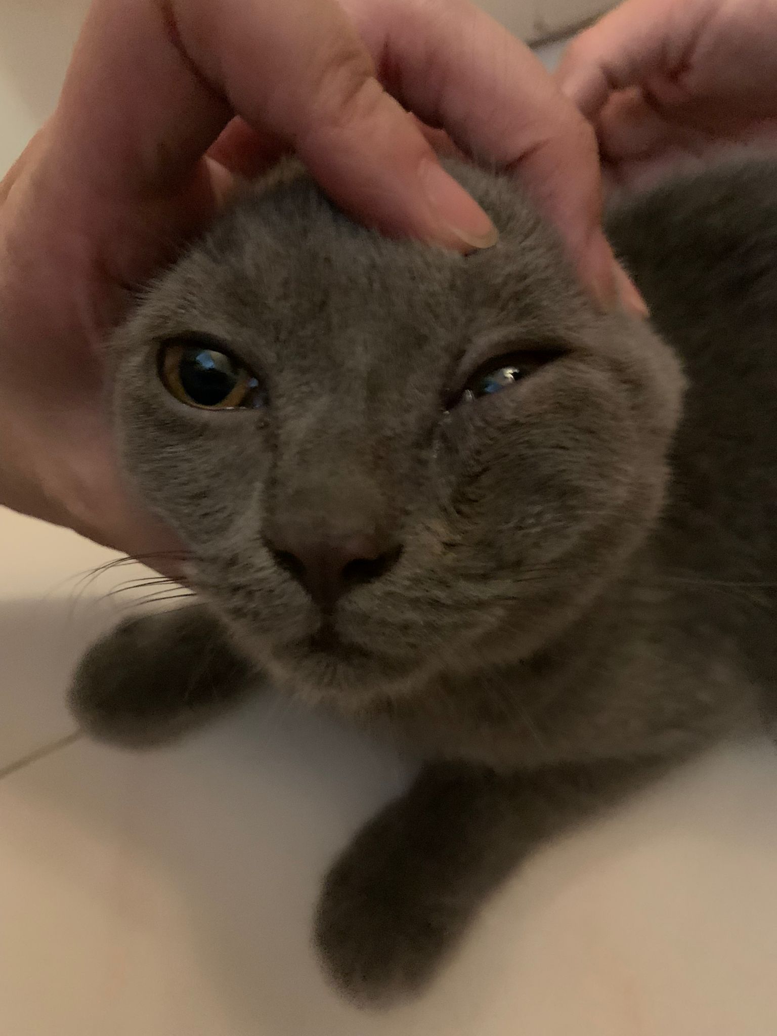 Evening: agnes also see how happy and active he is. Eye tearing is on off. need to remember to bring broadline and revo plus to 猫房 Tmr for Tues grooming