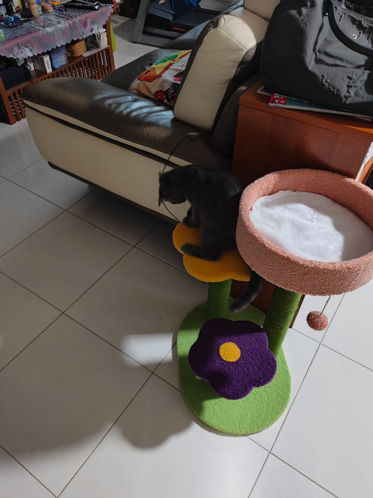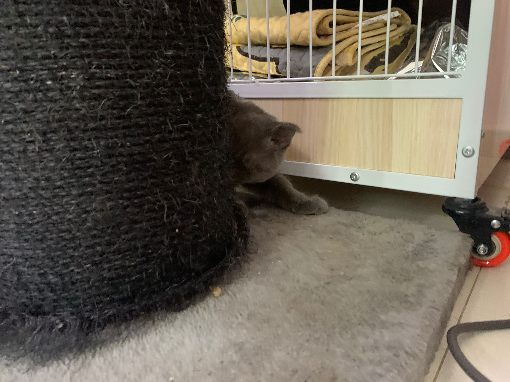 Oh ya this boy will nibble me when he knows me. Will play w my finger. Don’t play w the bell ball and sb I pass him, but he go smell the rest. He tried jumping up the cat tree (agnes said he fell, I didn’t see) but later part he is successful, he even rest on the ledge near the window but I got to close all windows cos he is too small, I feel even the 5cm square he got chance to squeeze out too. So no risk taking in 猫房. Fan on only mode low. Tmr go 5G will he aircon place … Erm. Maybe Friday morning then go 5G.