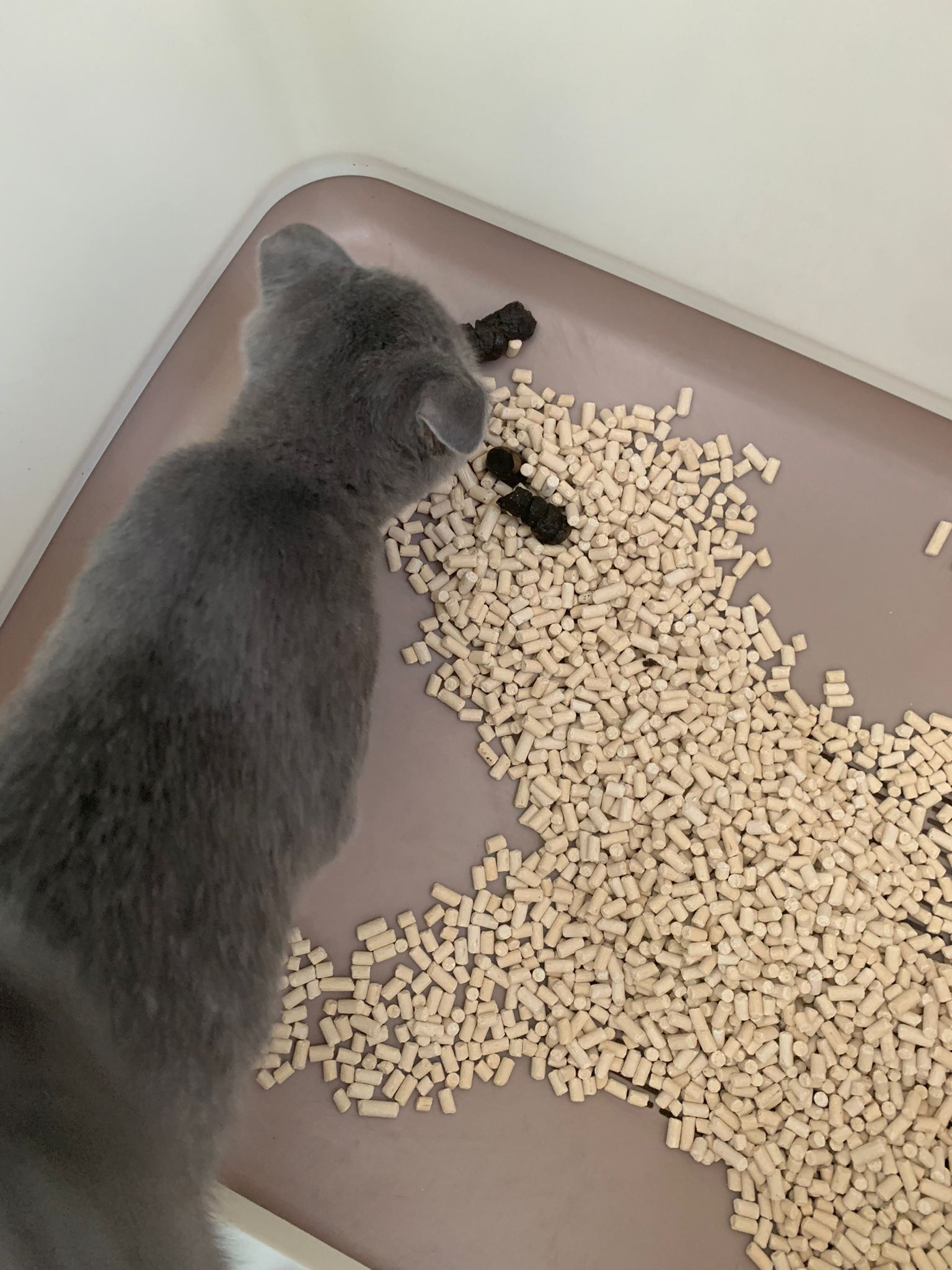 10.30pm: he know how to wait at door for me le. Seem not to scare when I sayang. He knows I’m food provider. serve tuna w salmon and ciao cup – he likes ciao cup.didn’t meow much. Did pee 2 more times today, no poo yet. Day 02.