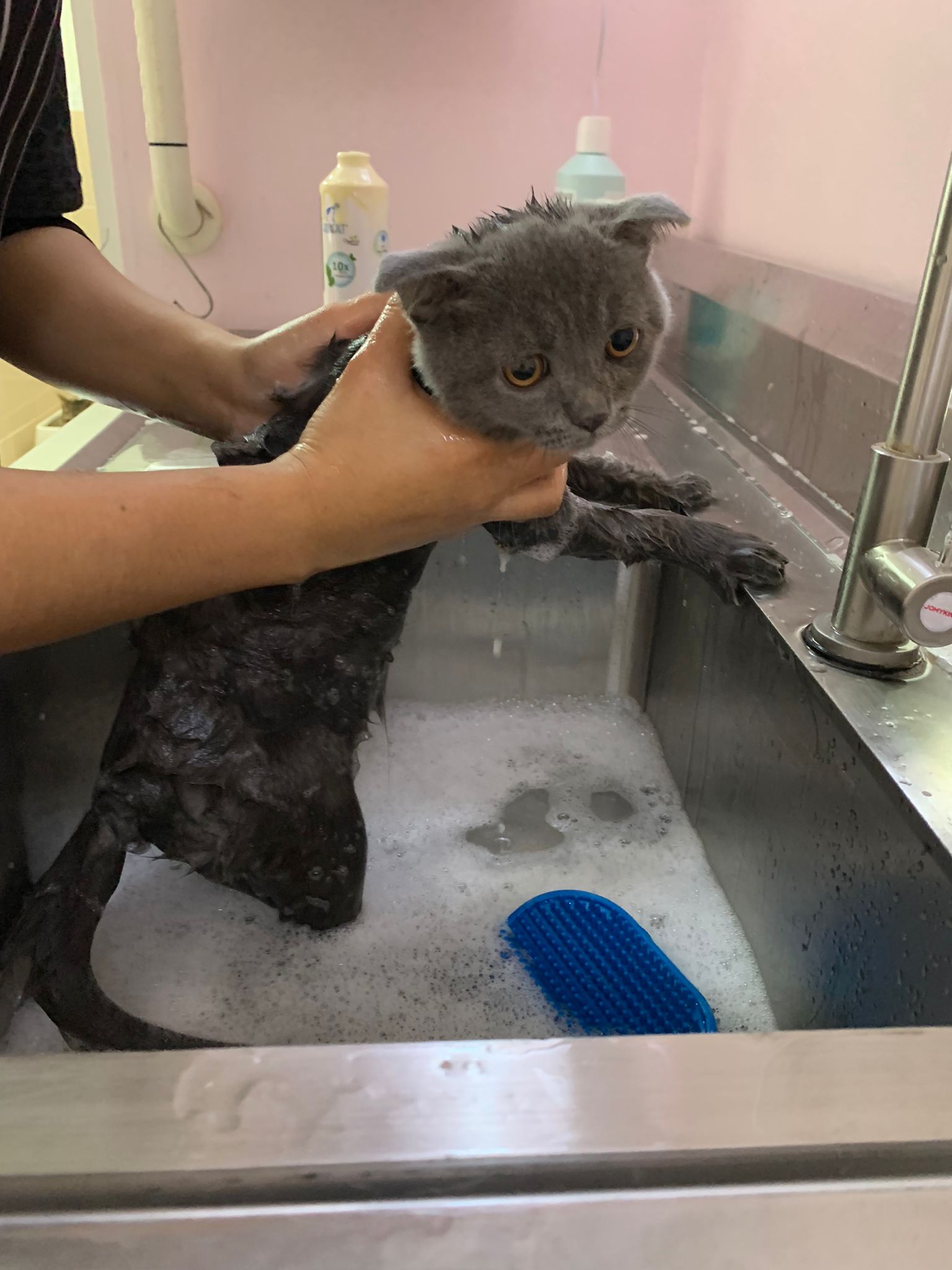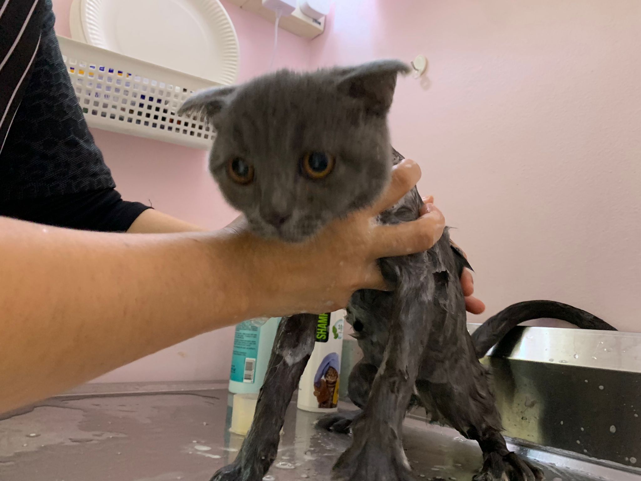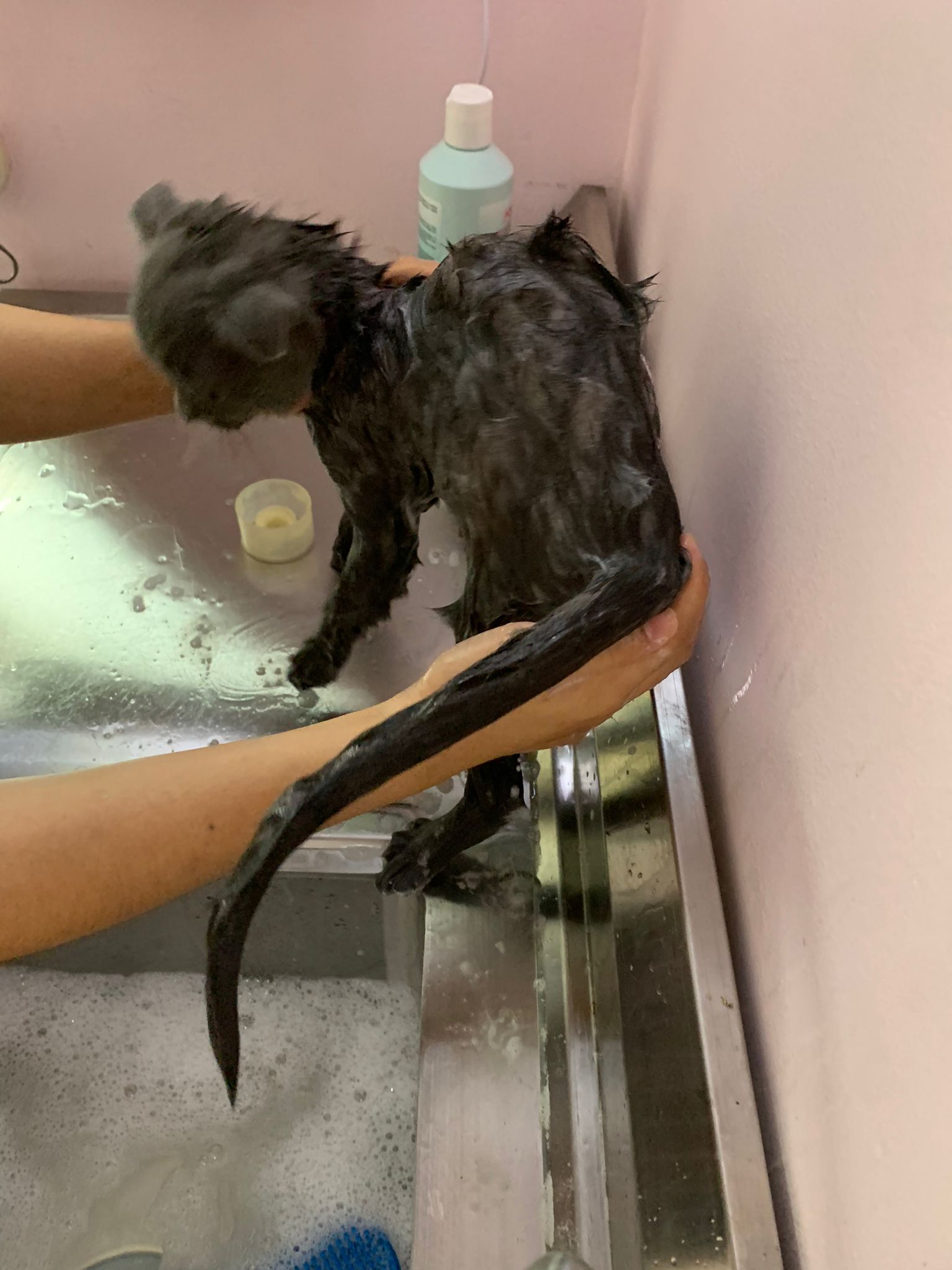 1025am: second to bath, w adorepet shampoo. Keep running about v hard to bath. Ha. He is very very scare. even when drying. Cut nails alr struggle a lot