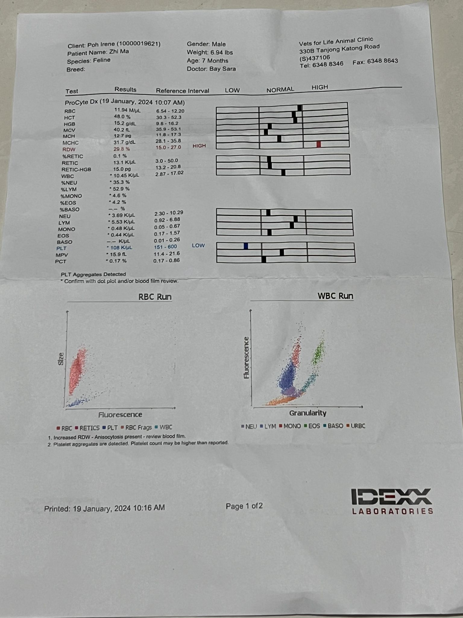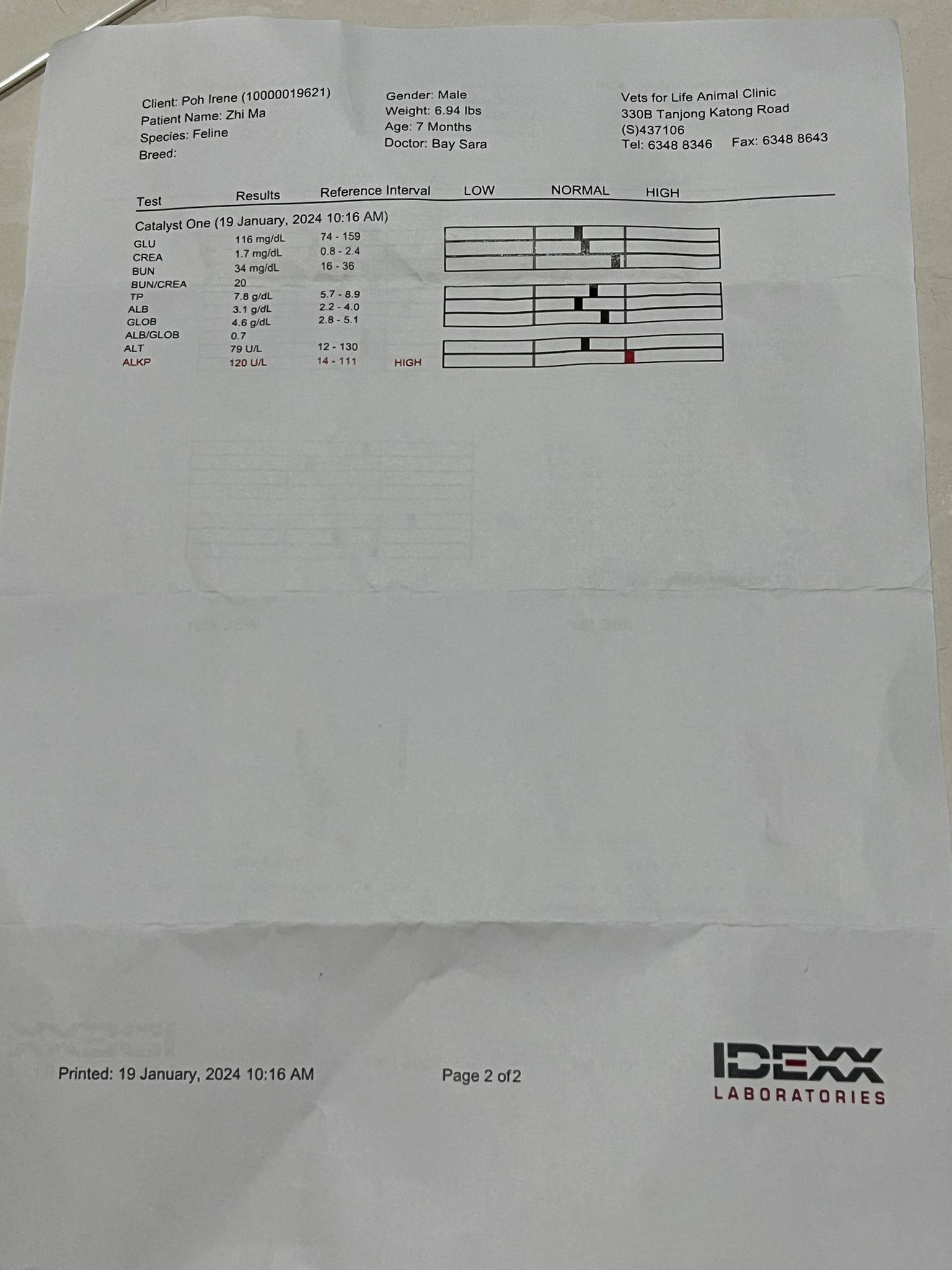 ““Lumi blood test result. Vet say he need to take supplement. This Sunday to Wed I will need to baby sit him while his mummy away”
