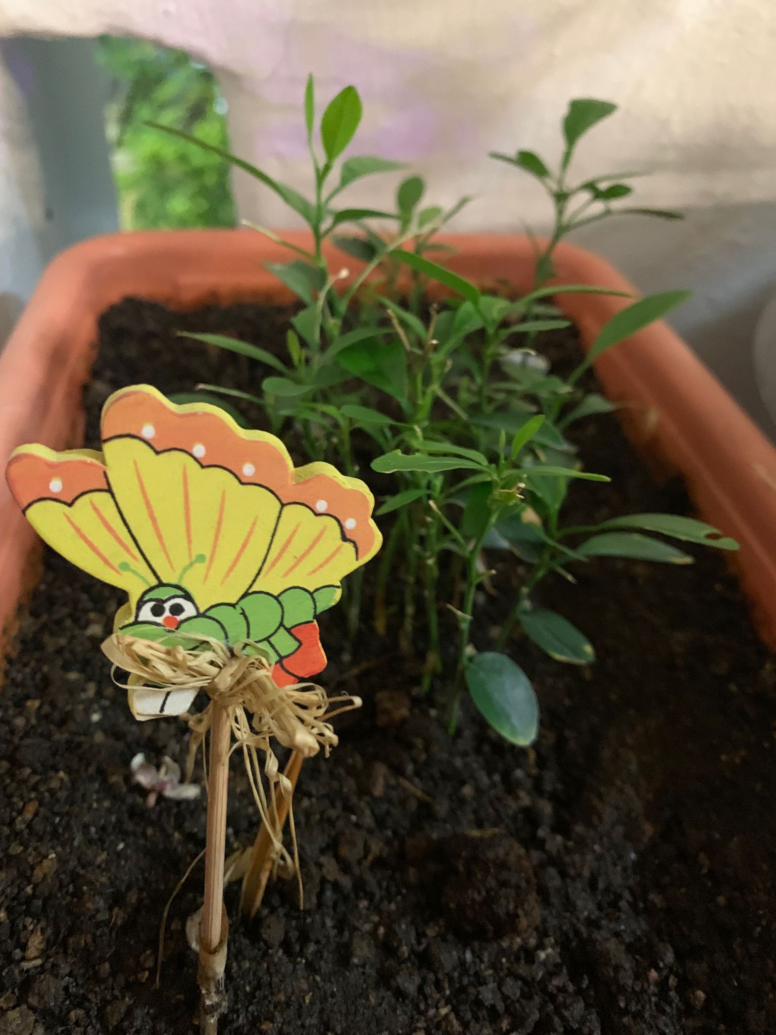 haha maomei Mummy give me one more job. Take care of mandarin orange plant … wa i scare. This harder job than supervising the 5 cats. The butterfly mama like to lay eggs here.