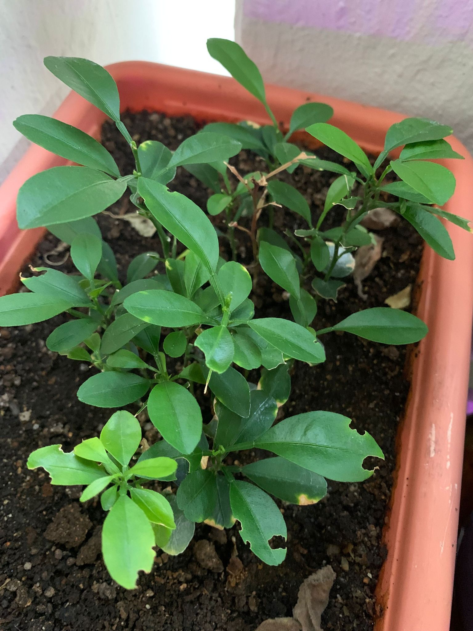 Wa I so long didnt take photos. Leaves are back. Still got some holes – caterpillars still ard. They finish the whole curry leaves …