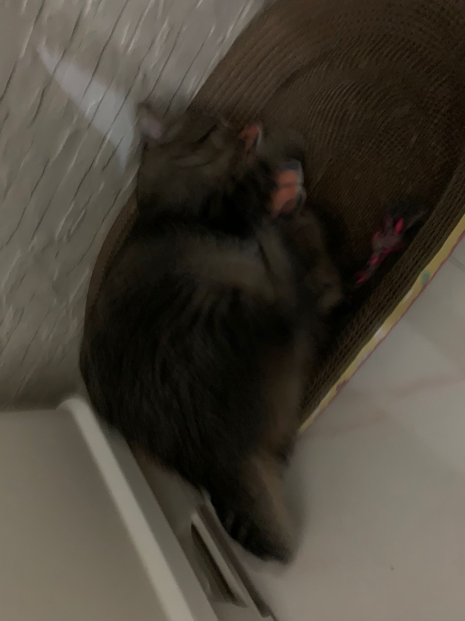 Like to play and i gave them 2 more toys to play. wait for them to dirty the floor for 2 more days then I give cat nip also – that one will stain the floor.