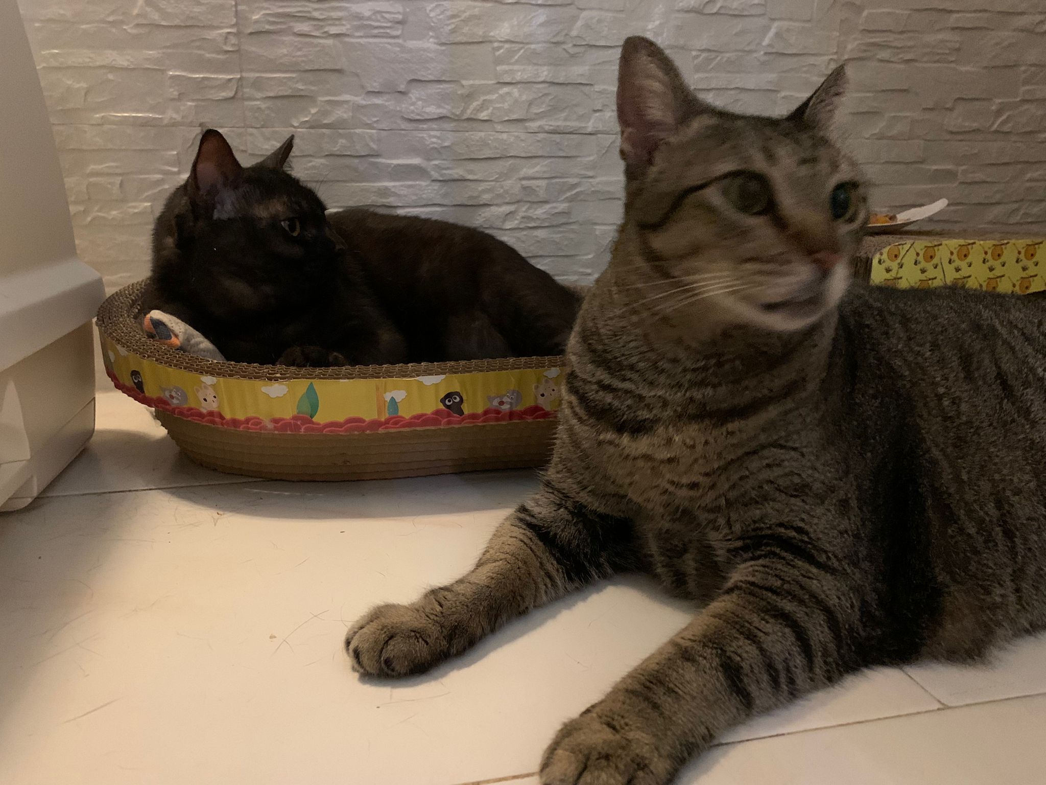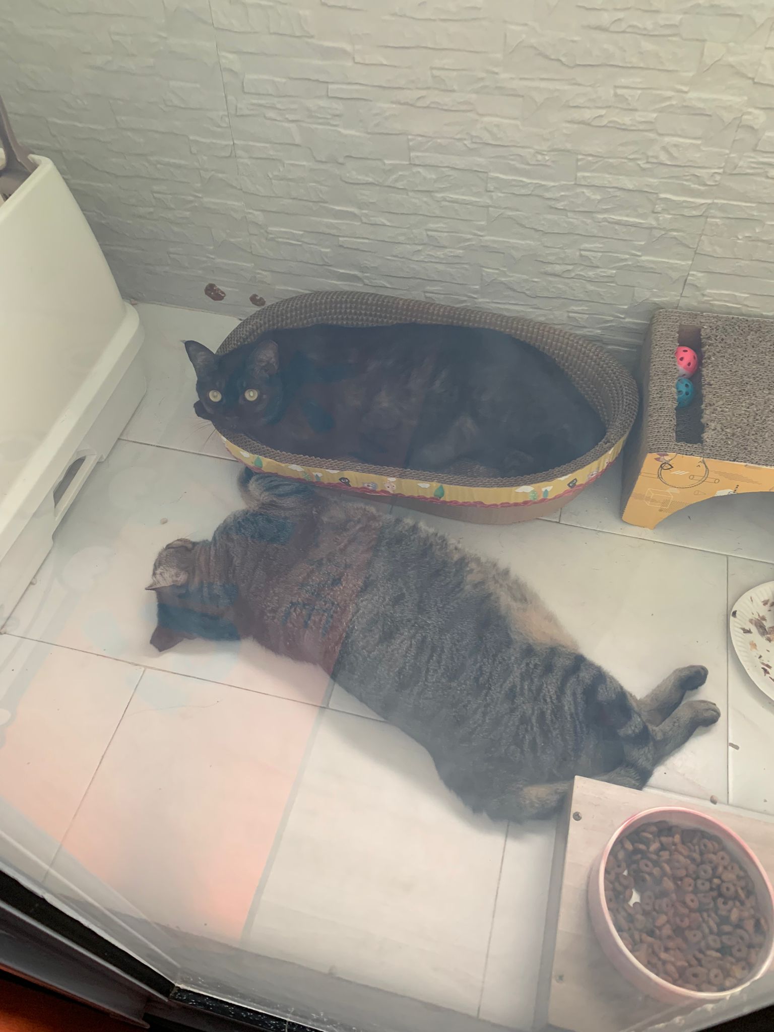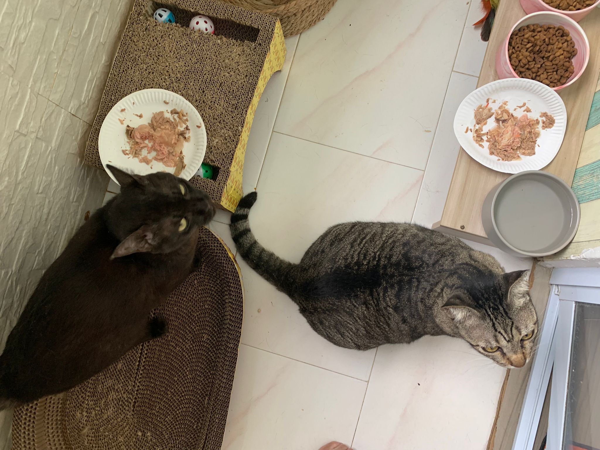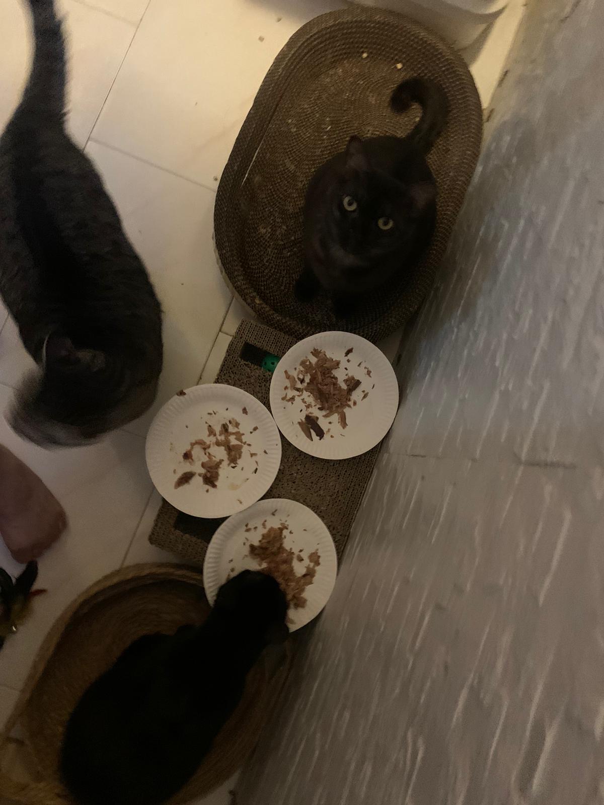 Day: first to greet me at door. All food almost clear so they quite ok la. I think all did eat.