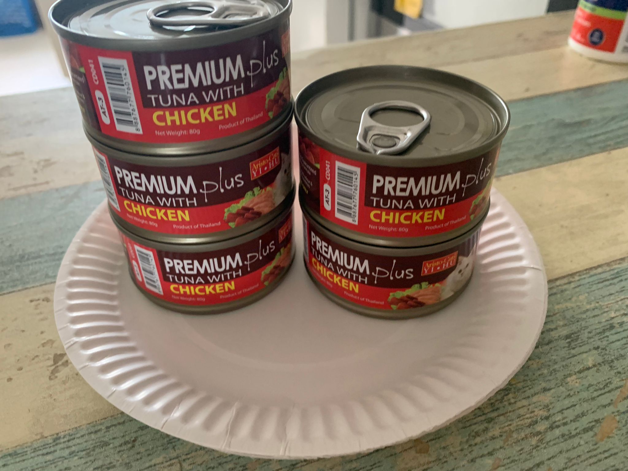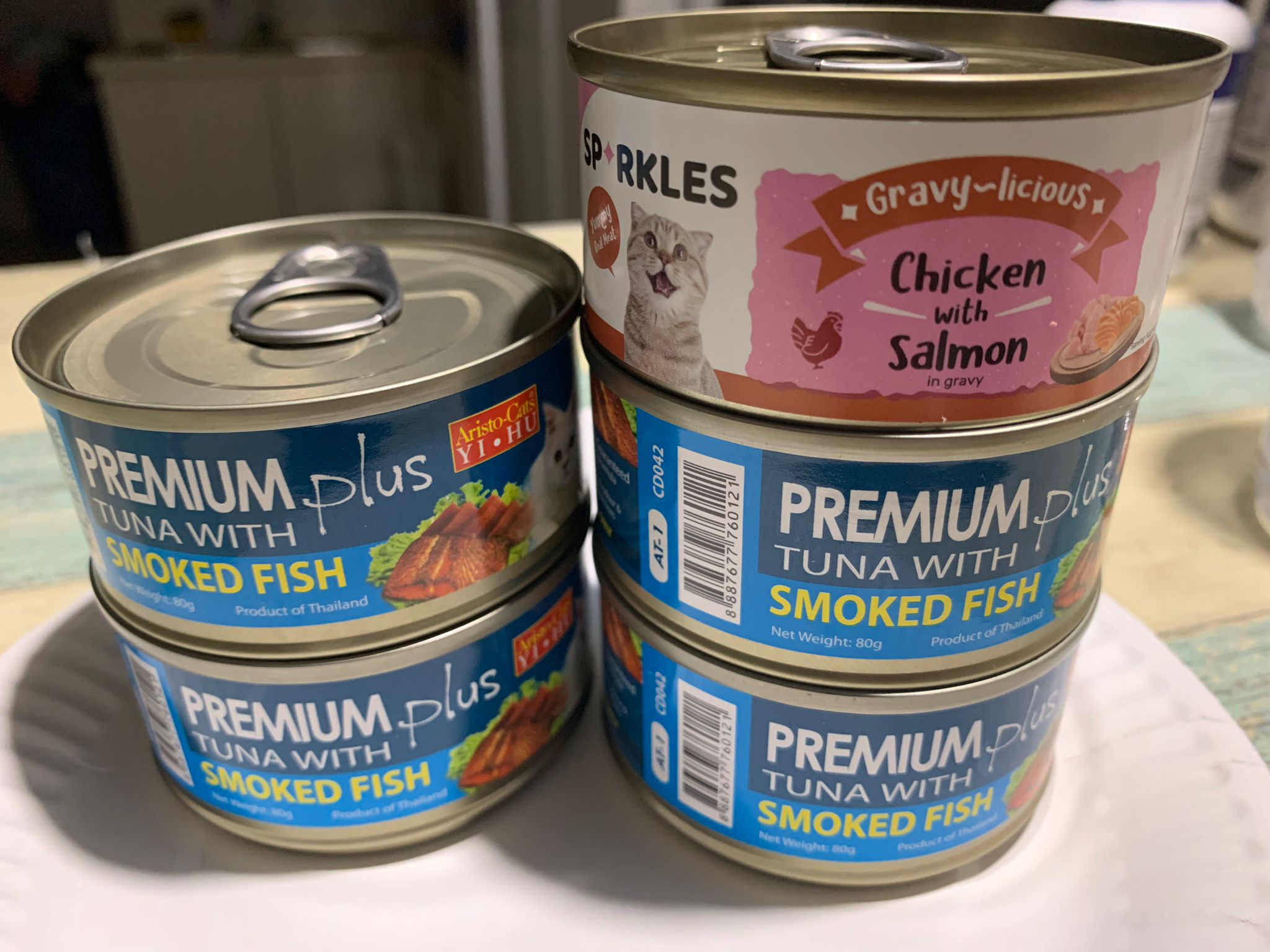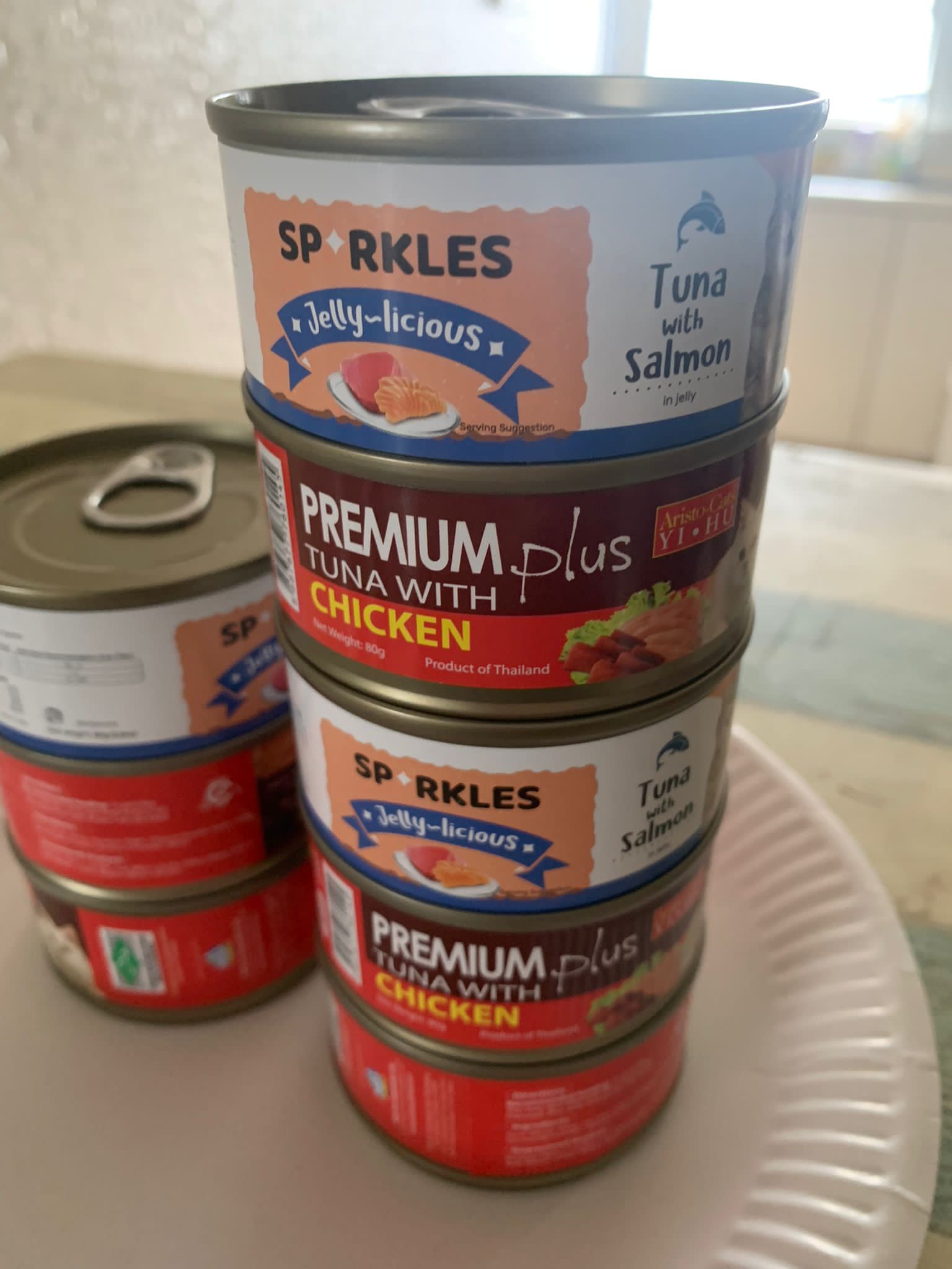 Serve tuna w chicken n sparkles tuna w salmon. ok food intake. They all clear indoor more than fit.