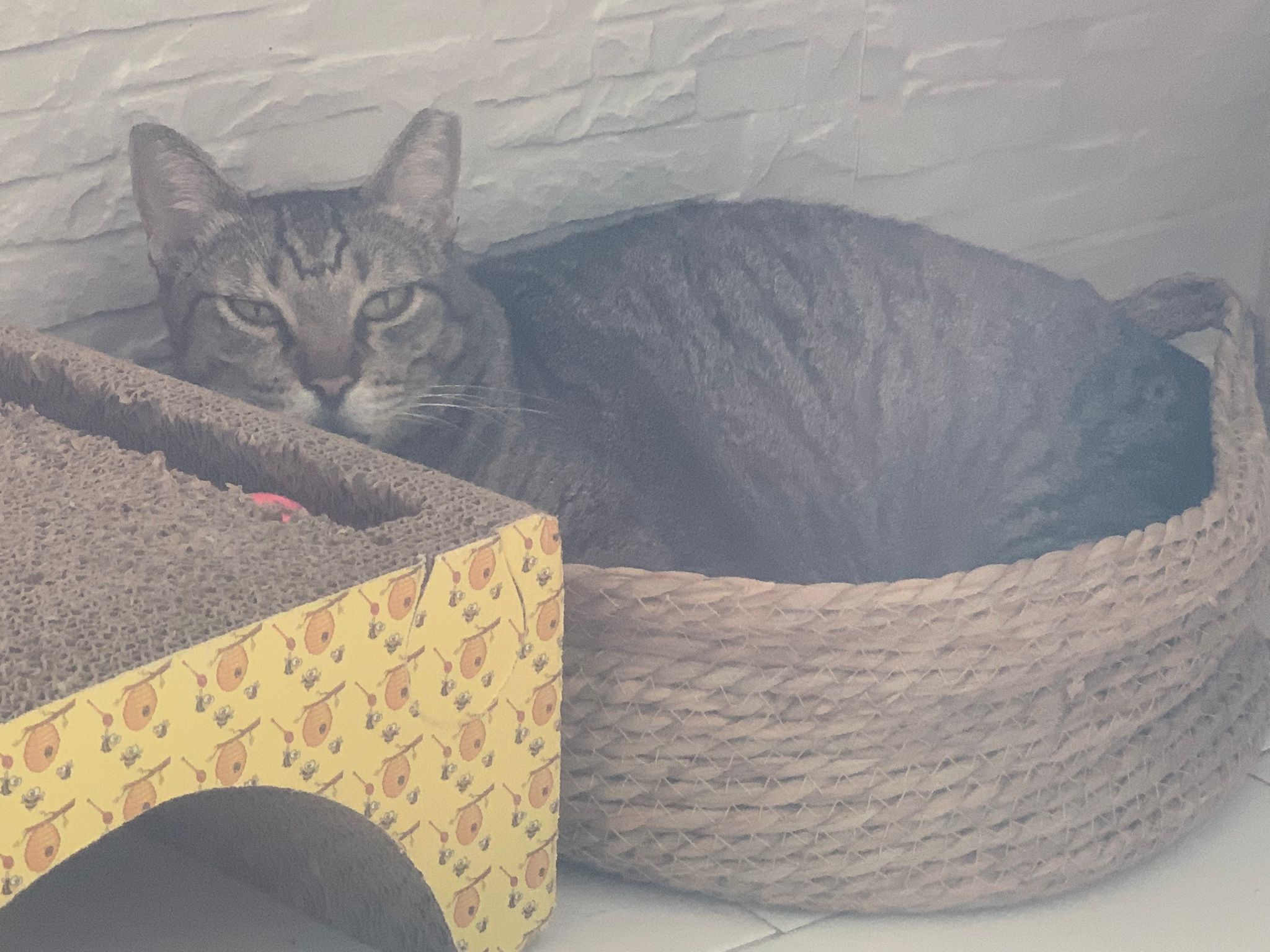 2/4pm: also on that looking at me. She know something happen outside and remain a good girl.