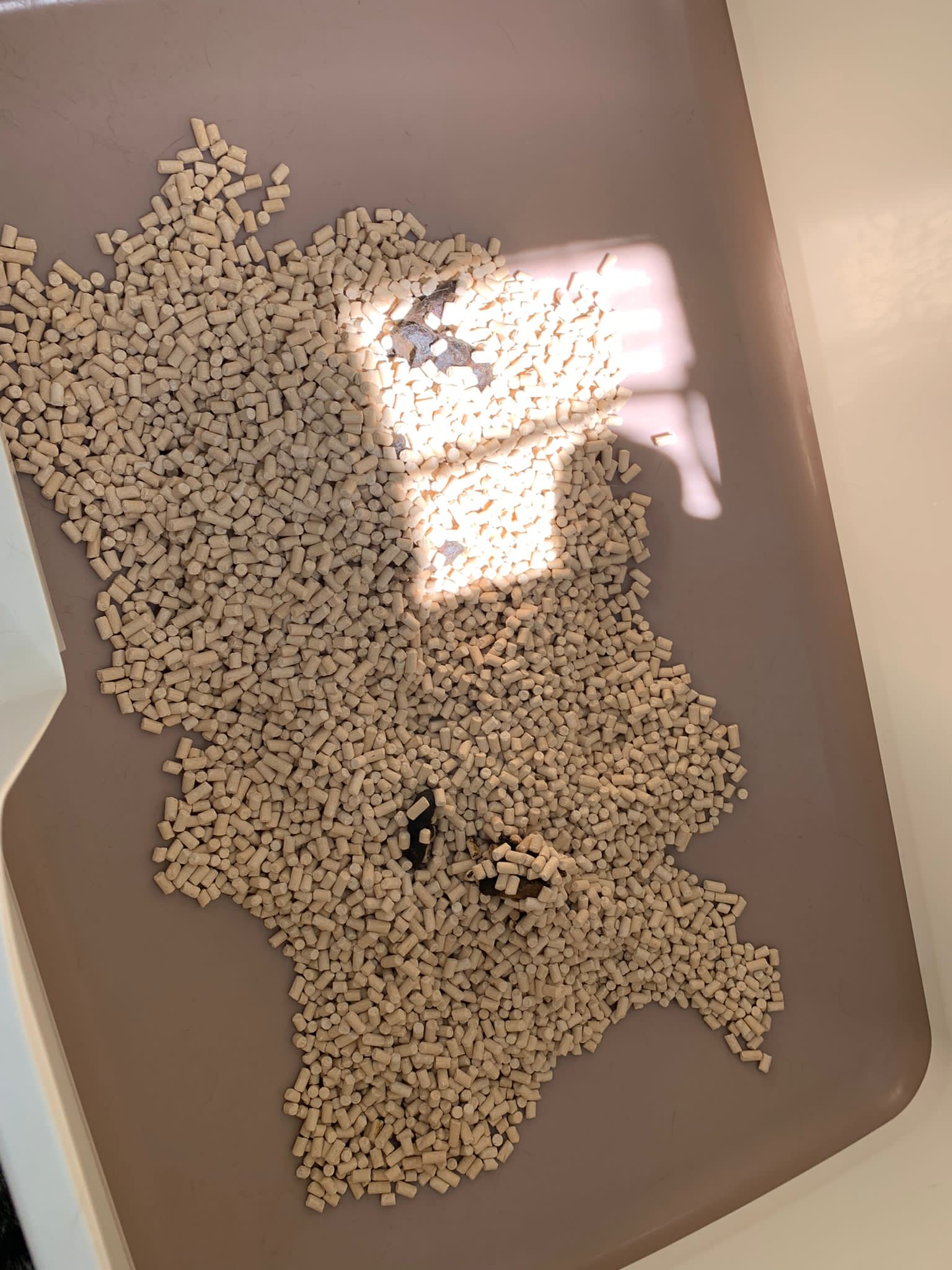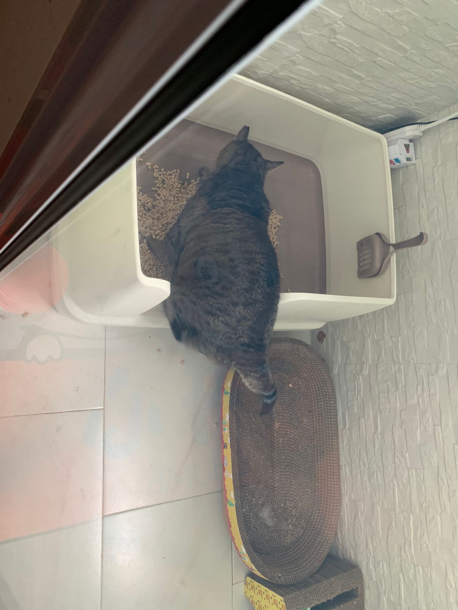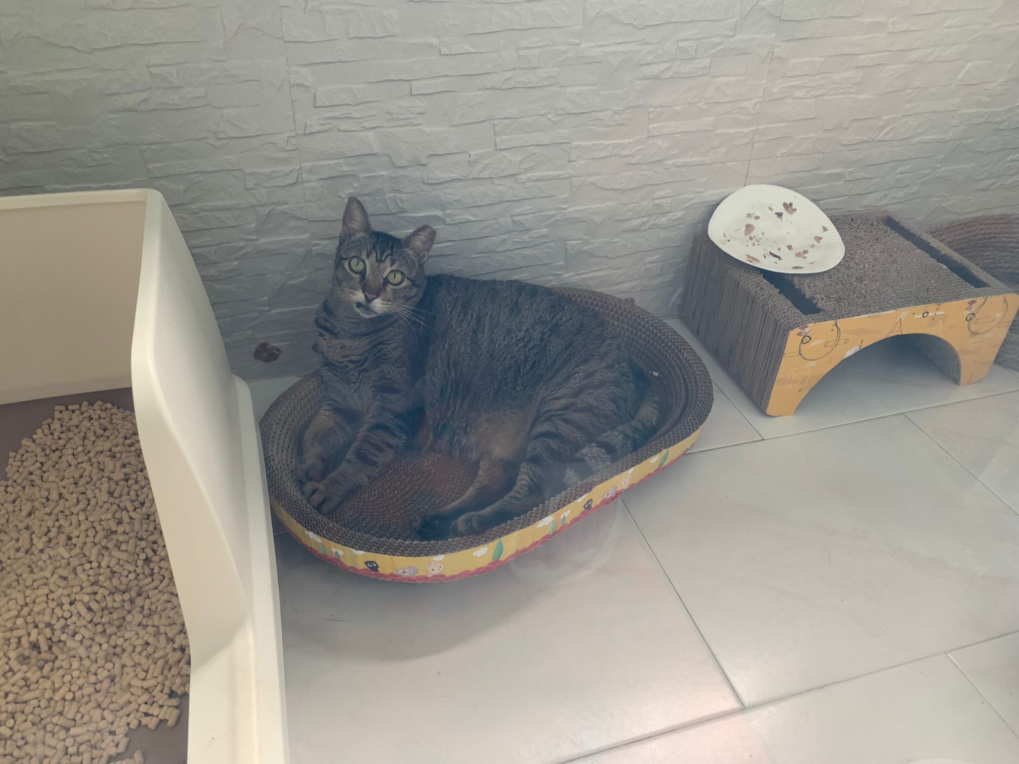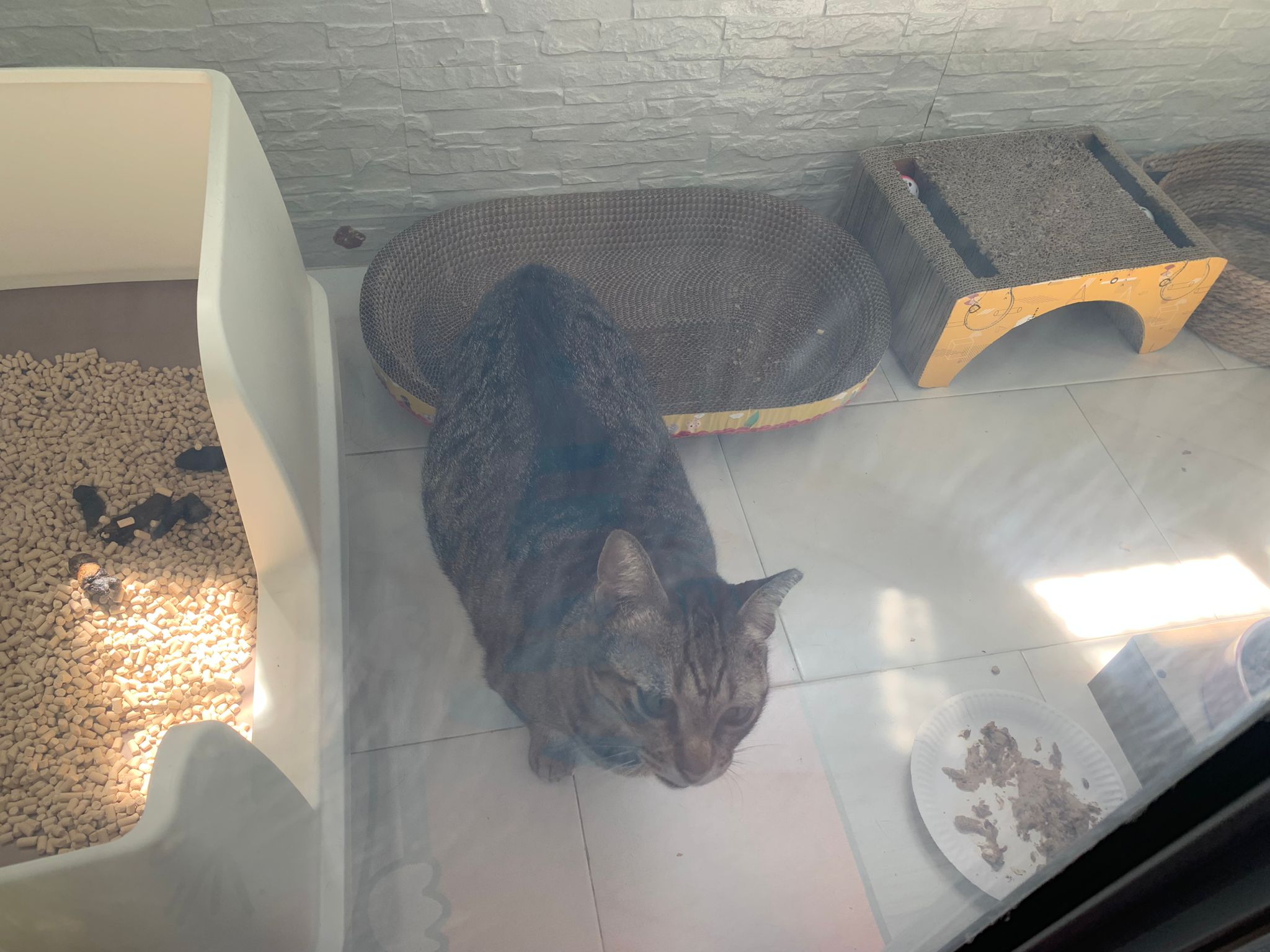 Got one set of poo only. 5/10. Pee should be more than 1 cat pee alr.