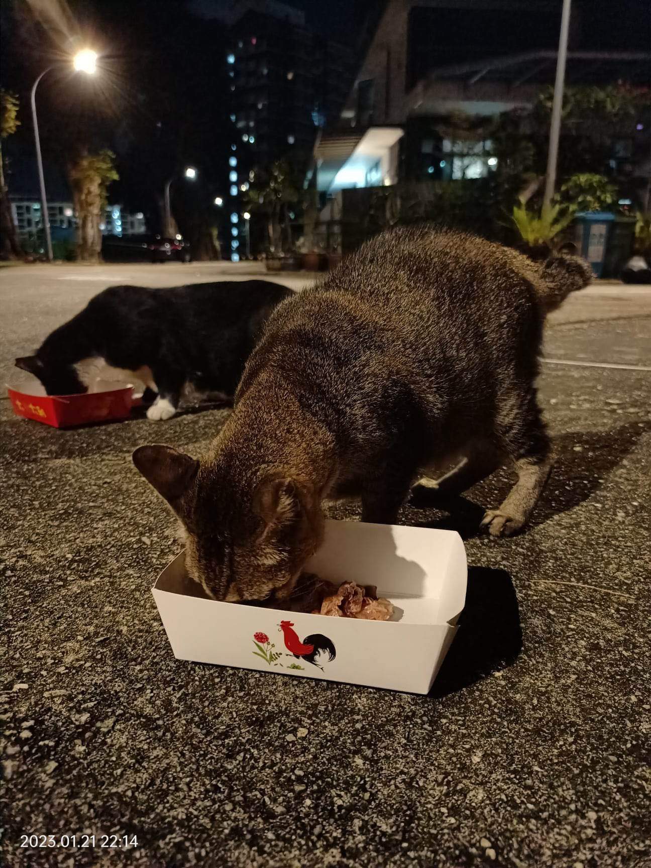 got news that July lf will stop helping to feed Naung gang. The gang is actually stocky only. But she had branch out to melody, xiao Ruselle, Siamese cat and baby moo. Erm …