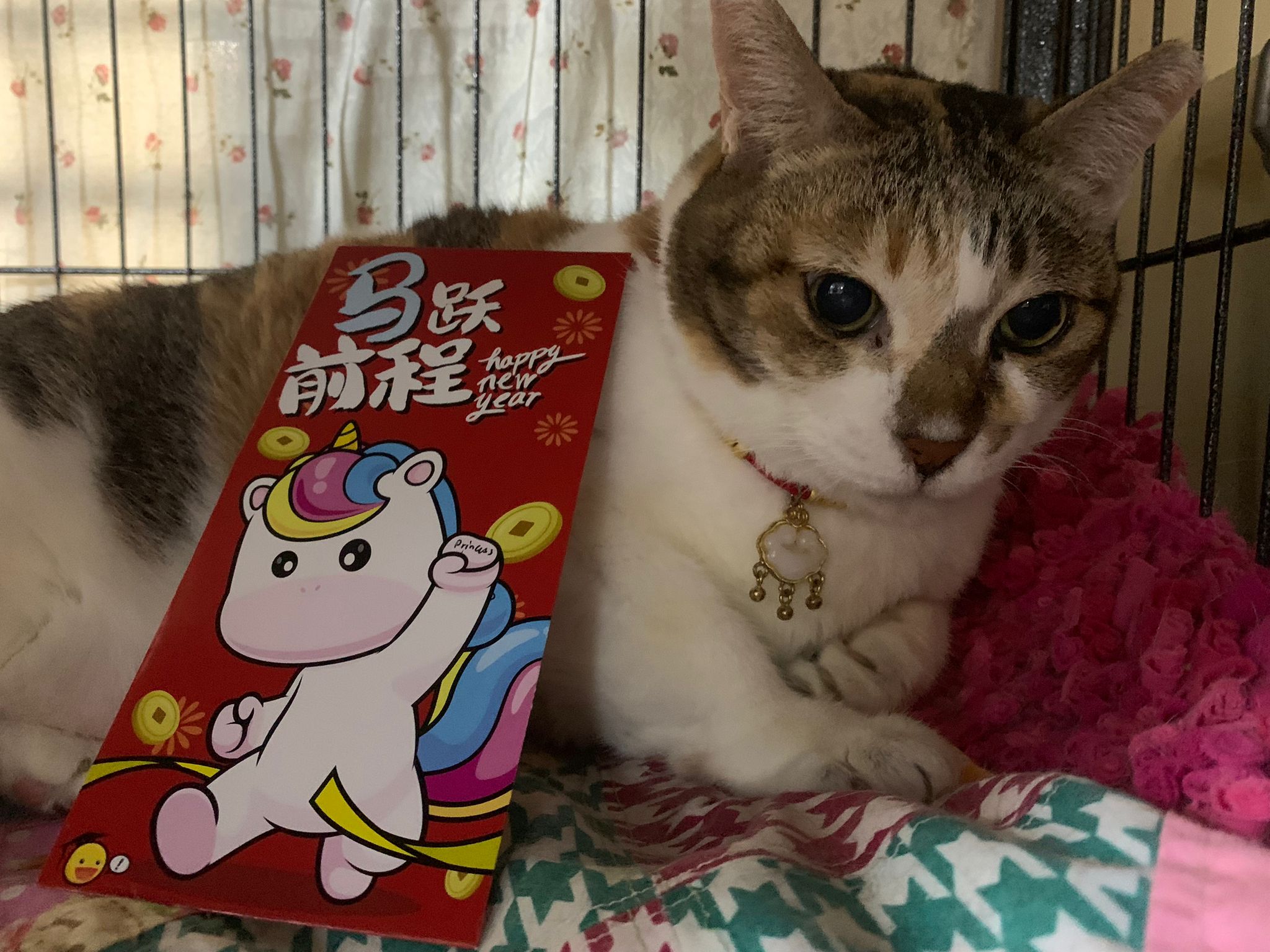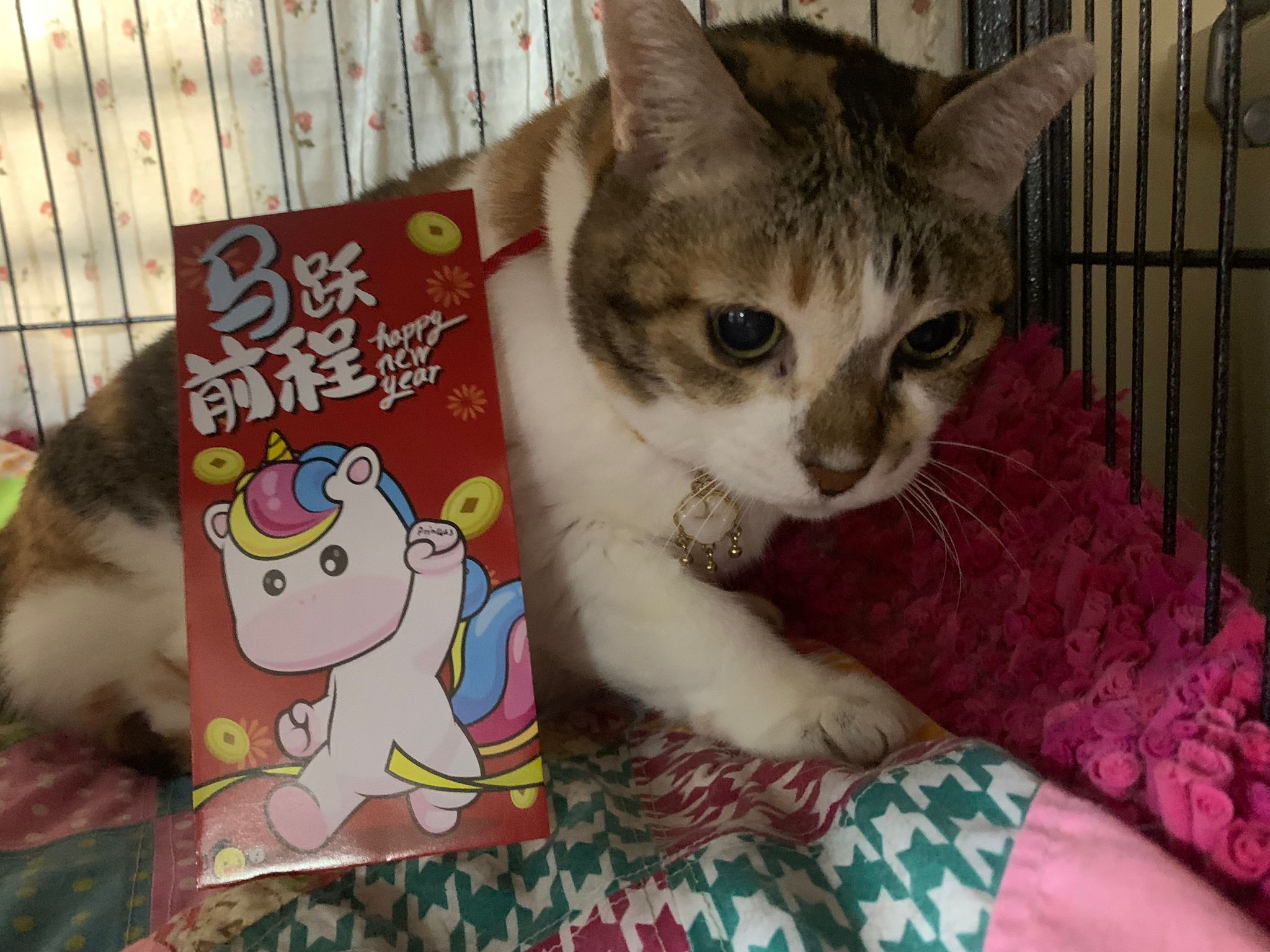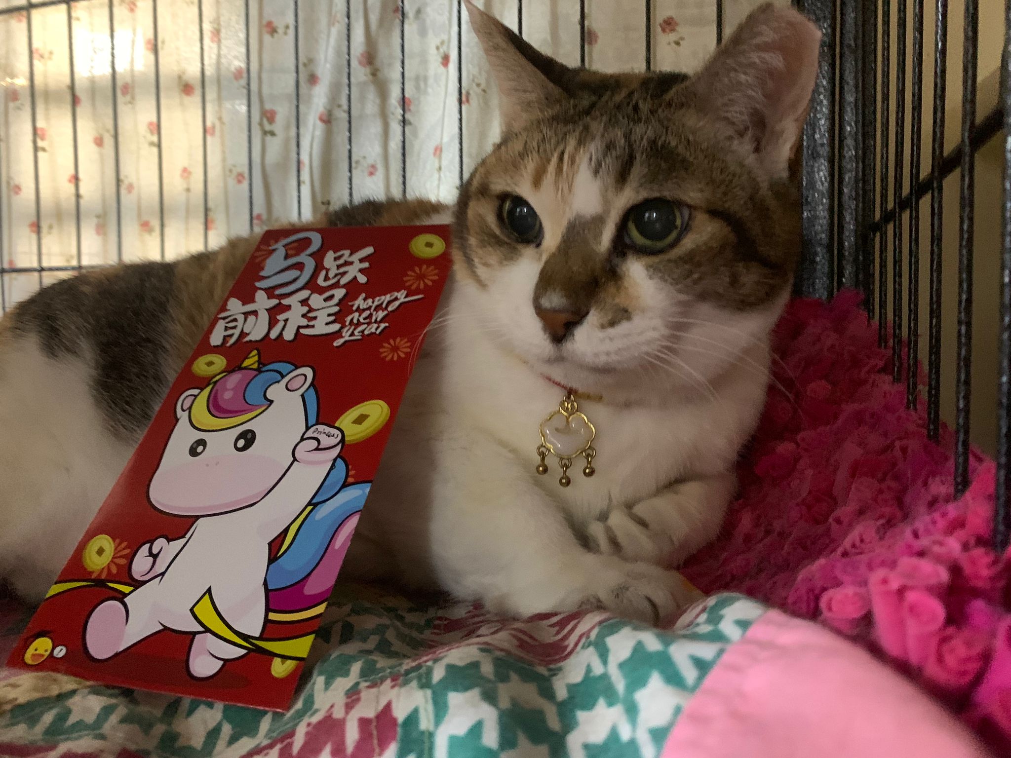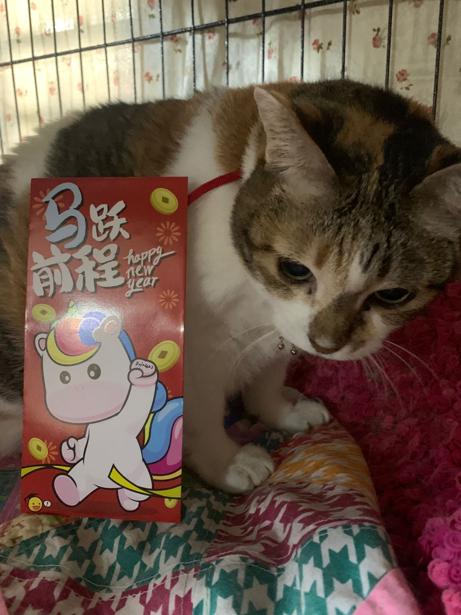 night: give her a 招财猫 new year collar – cute 🙂 I thought she seem ok, but mummy says mama not happy I put collar on her