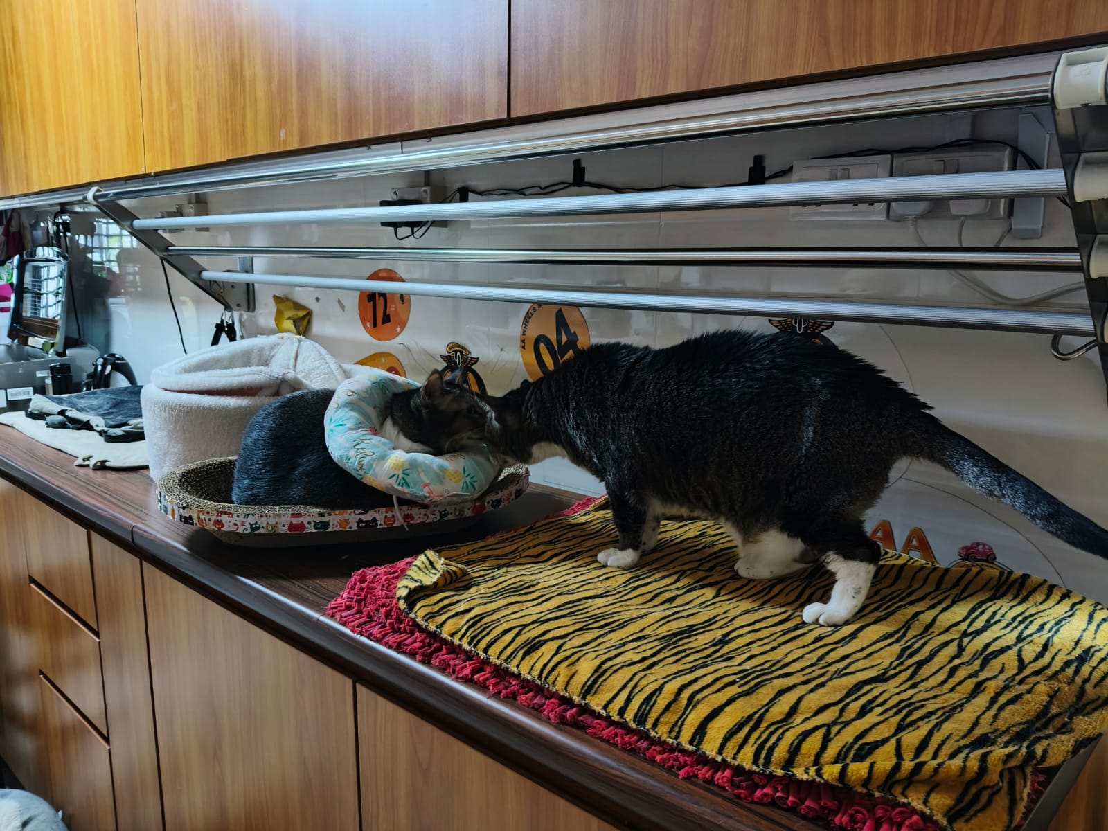 9.00am: I enter 猫房 and both joy and rufus right there. But they Waited for me to throw plates. Scoop poo n I go into 猫房 take new plates n they stare at me, so long then serve food.