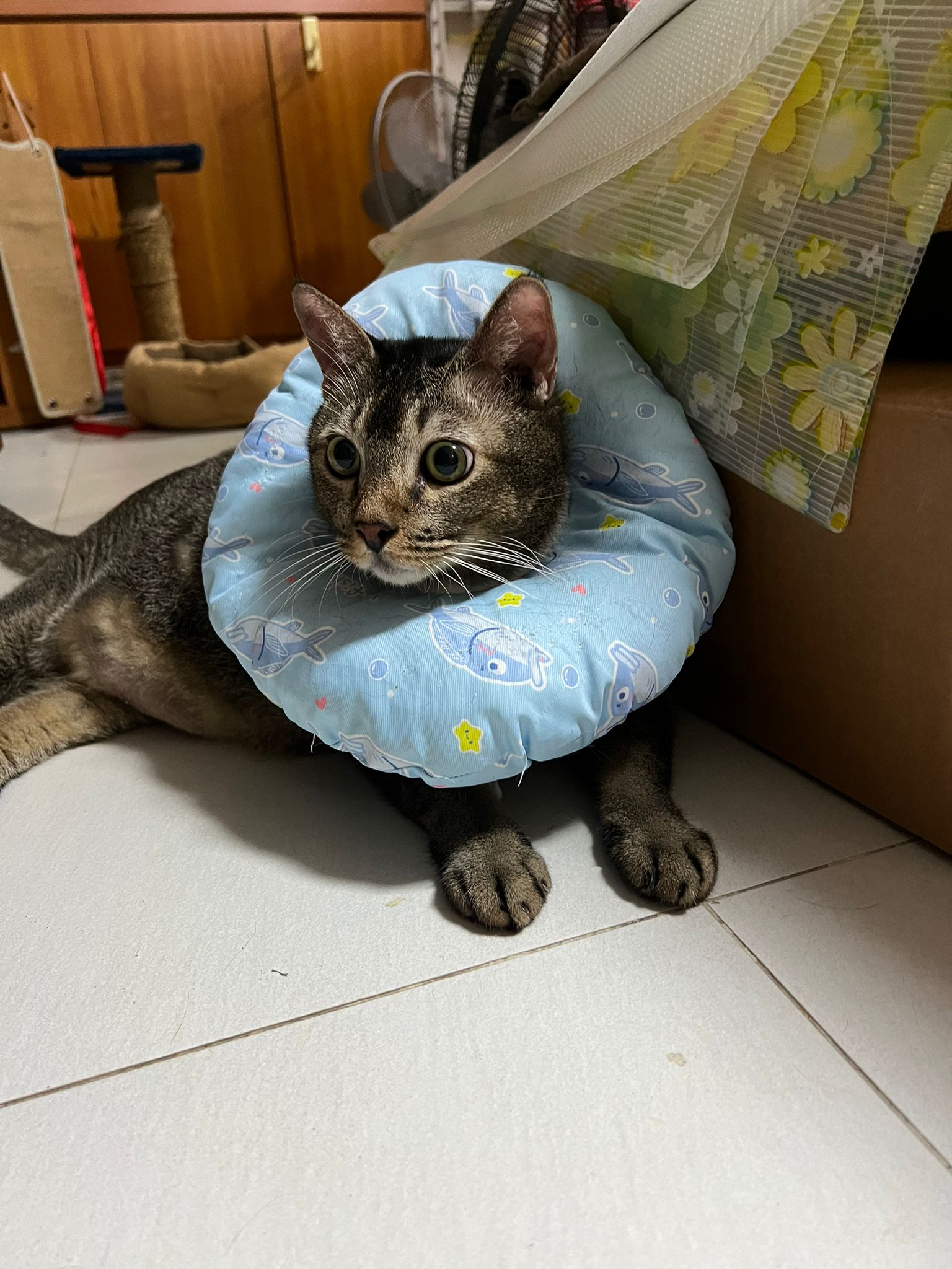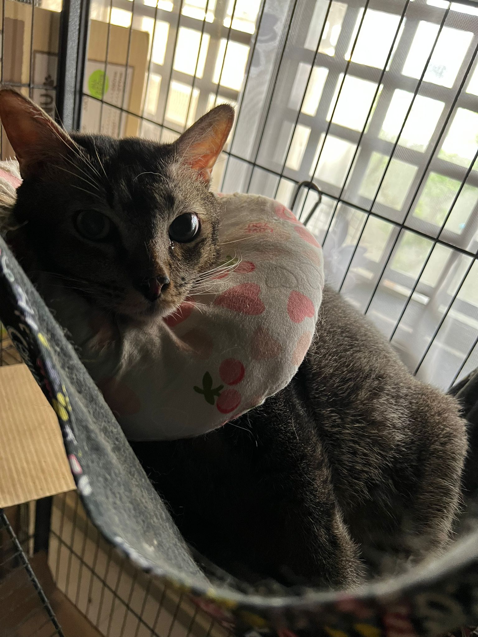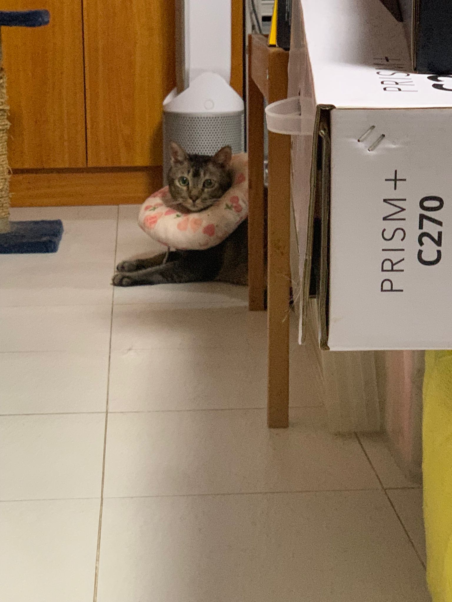 Morning: came to welcome me when I enter. No bad poo in bin. Serve food – got eat. Today i open door when I’m ard, aircon not on yet, all windows open to air the house. Today he didn’t sit in cage, he sit under table and I give him fortiflora, easy.
