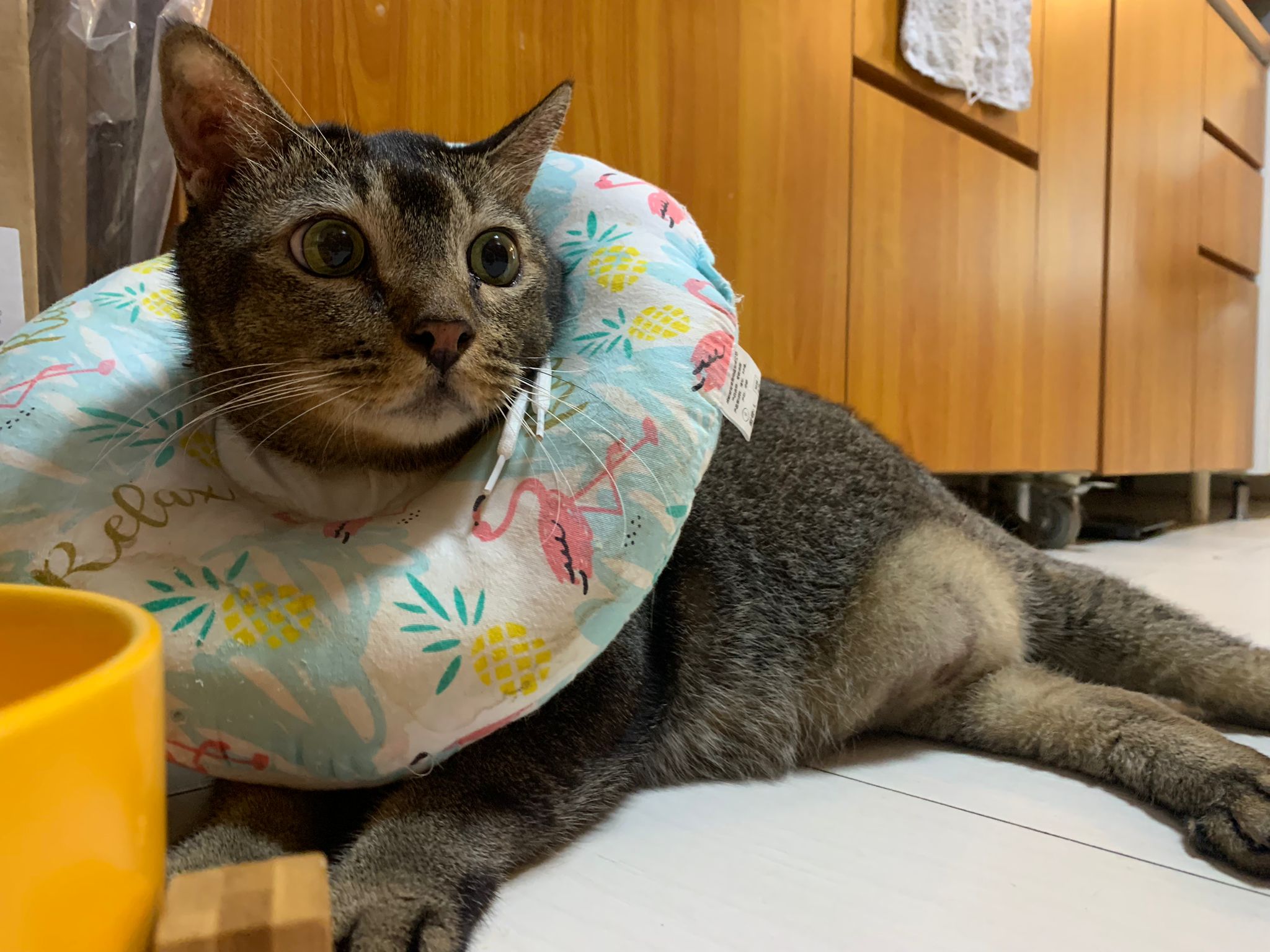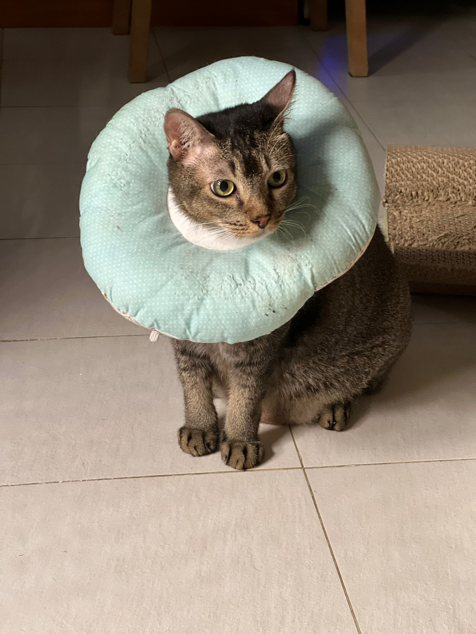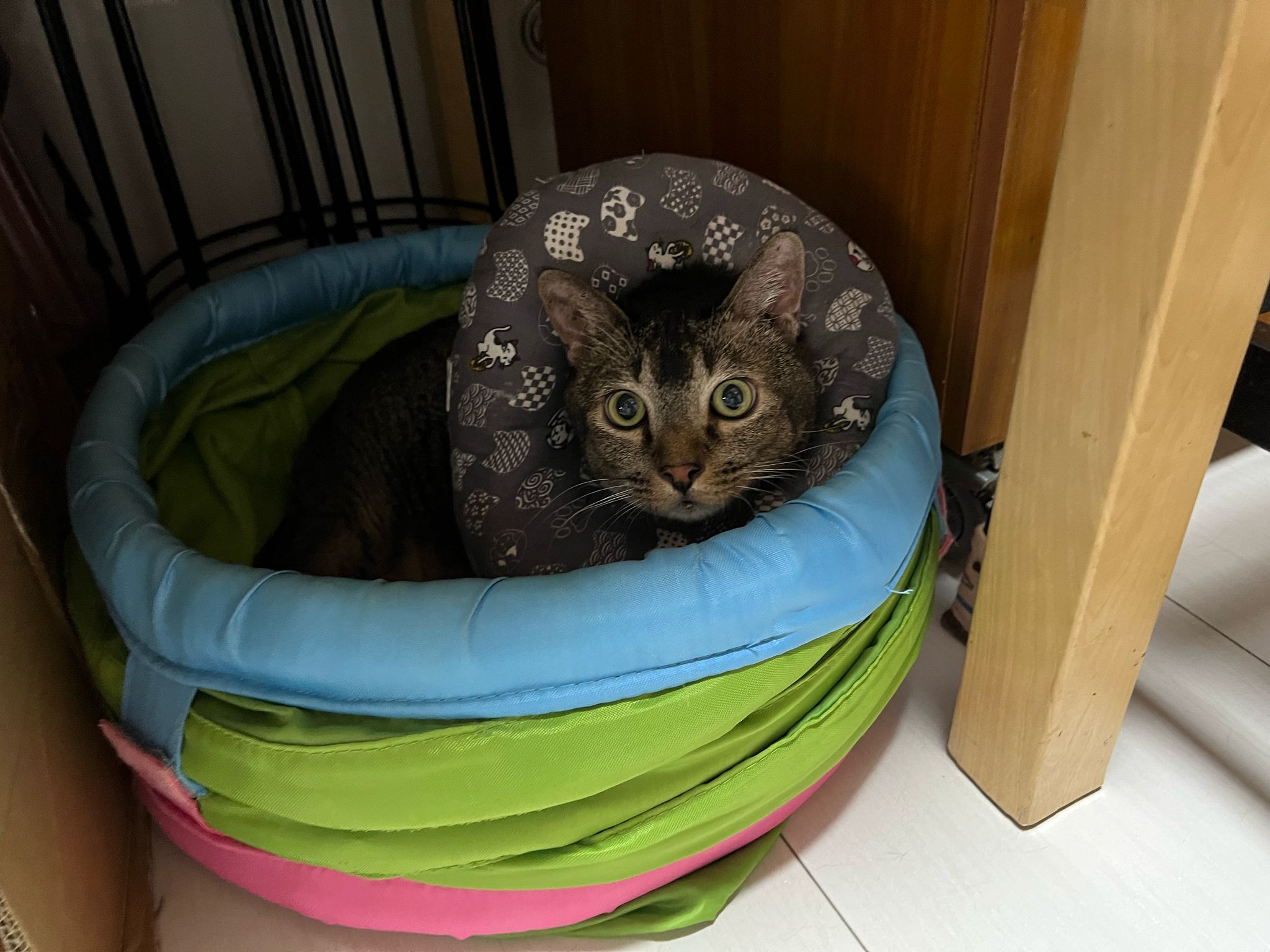 Morning: came to welcome me when I enter. No bad poo in bin. Serve food – got eat. Today i open door when I’m ard, aircon not on yet, all windows open to air the house. Today he didn’t sit in cage, he sit under table and I give him fortiflora, easy.