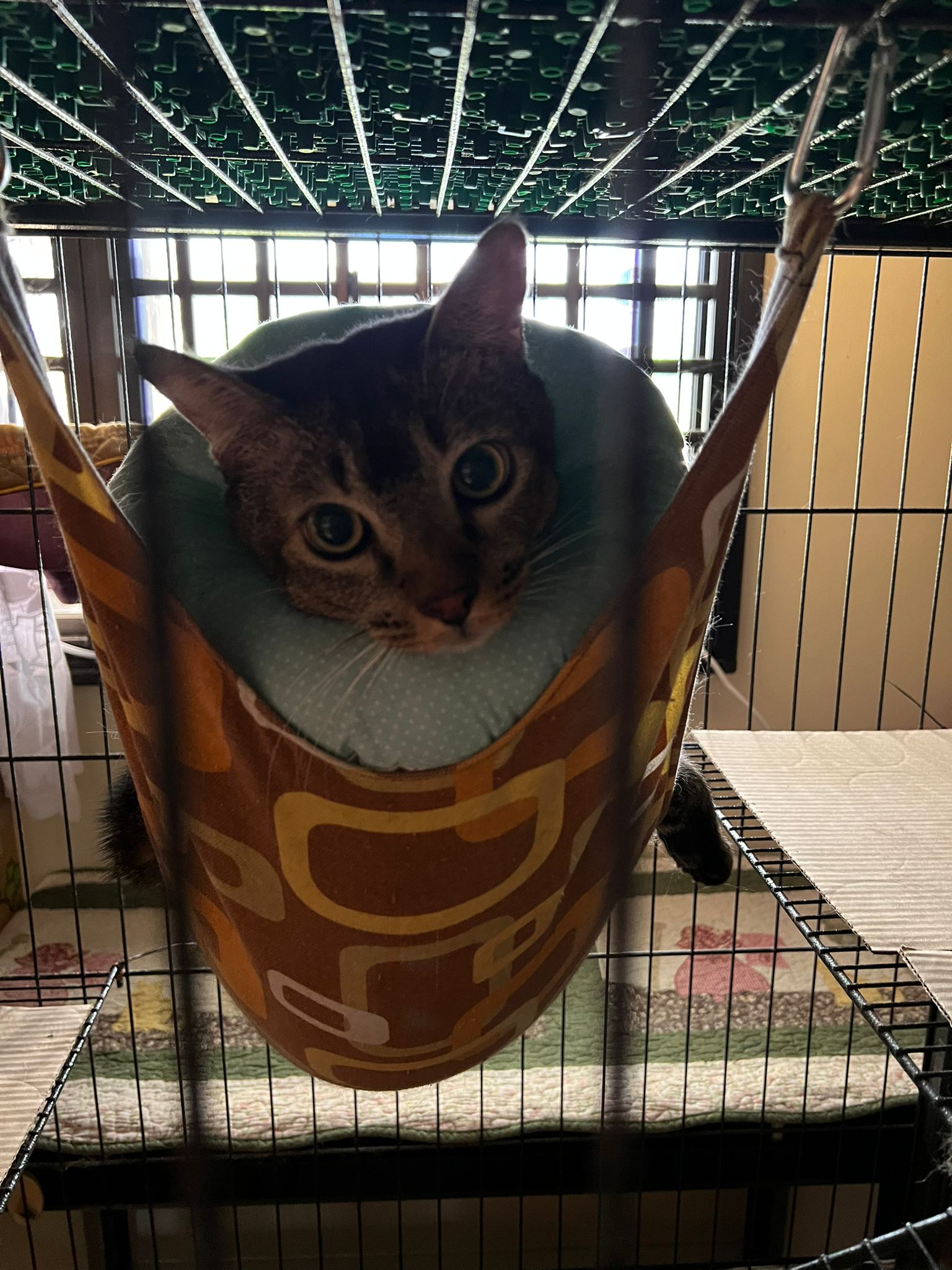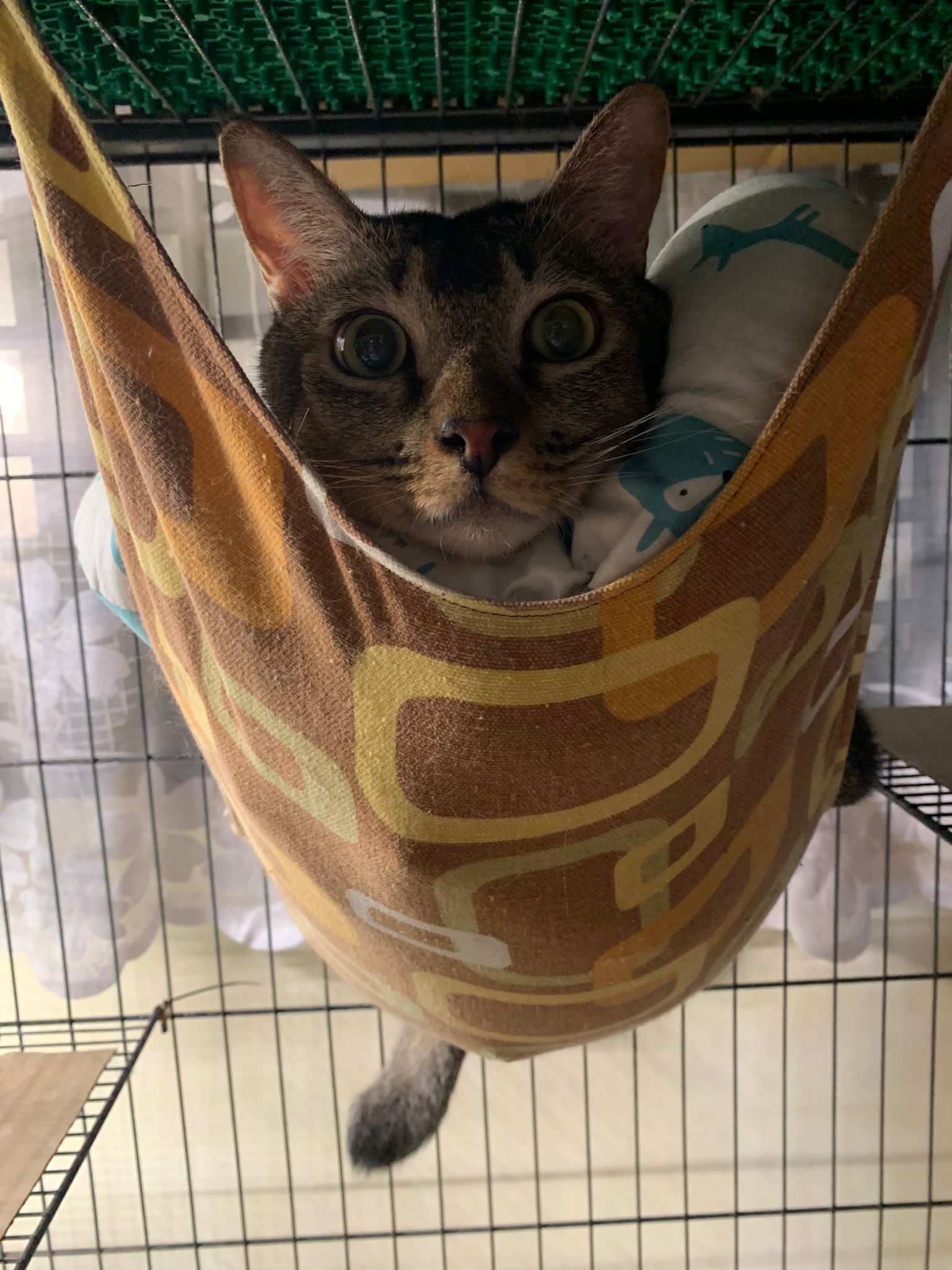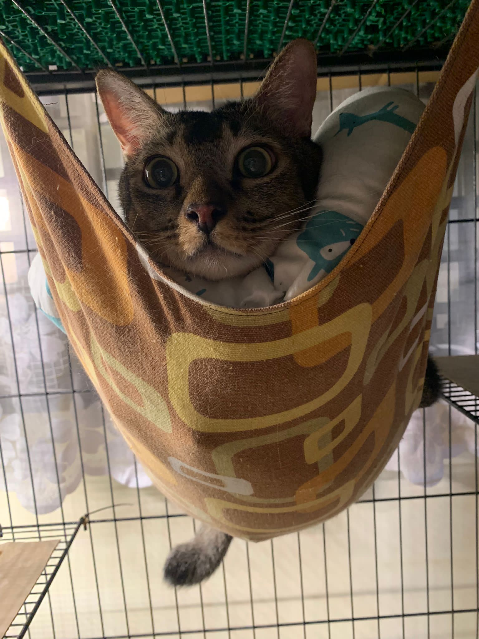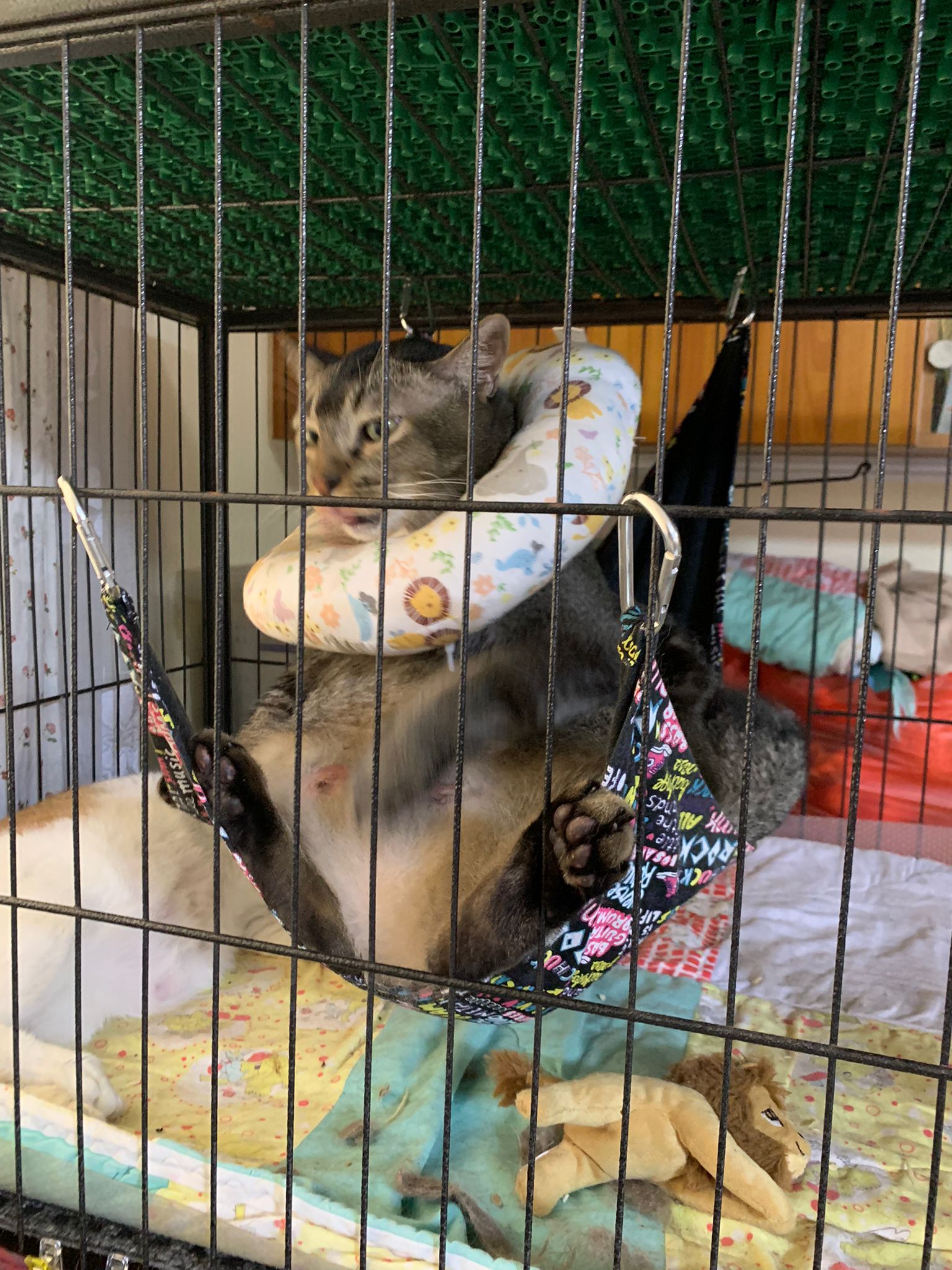10am+: when I come in he is alr sit on hammock till I left. Fed him forti in cage. Didn’t find bad poo. No vomit.