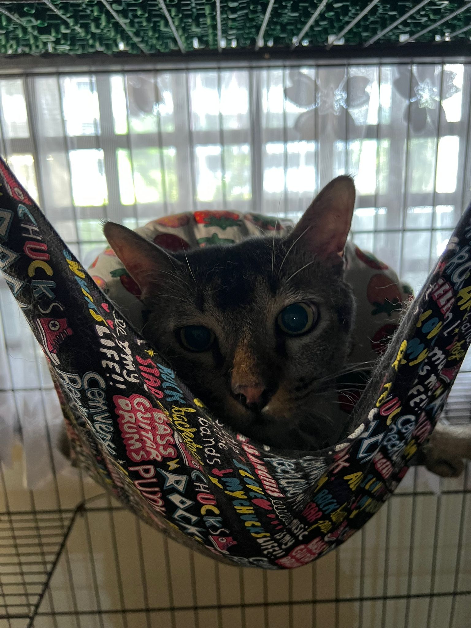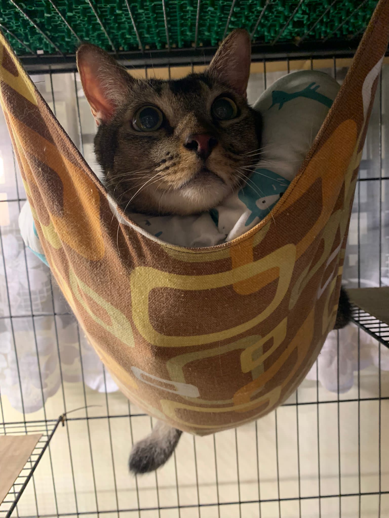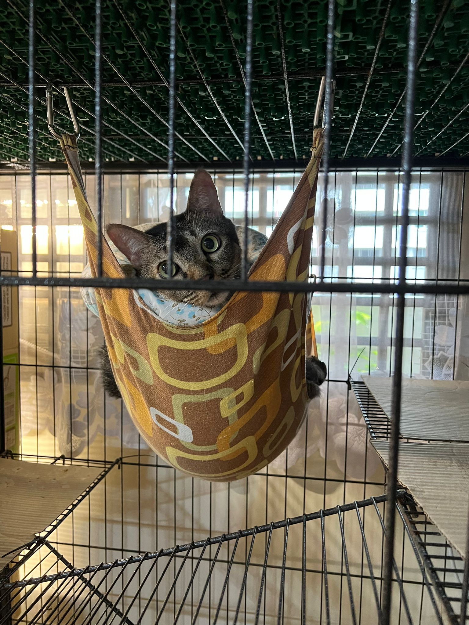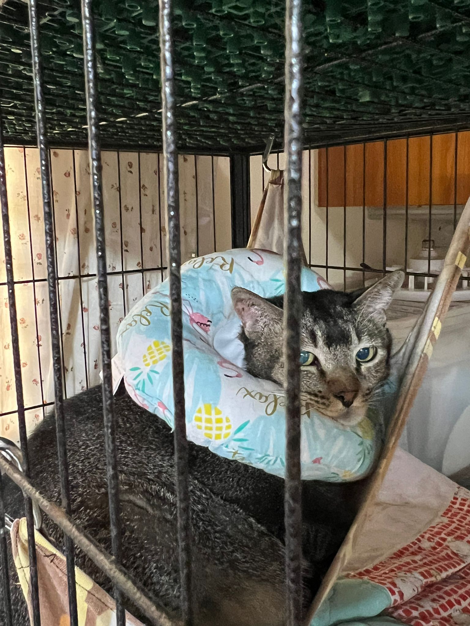 10am+: when I come in he is alr sit on hammock till I left. Fed him forti in cage. Didn’t find bad poo. No vomit.
