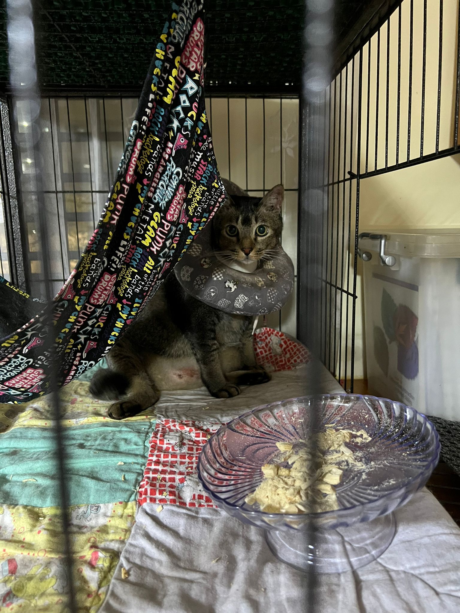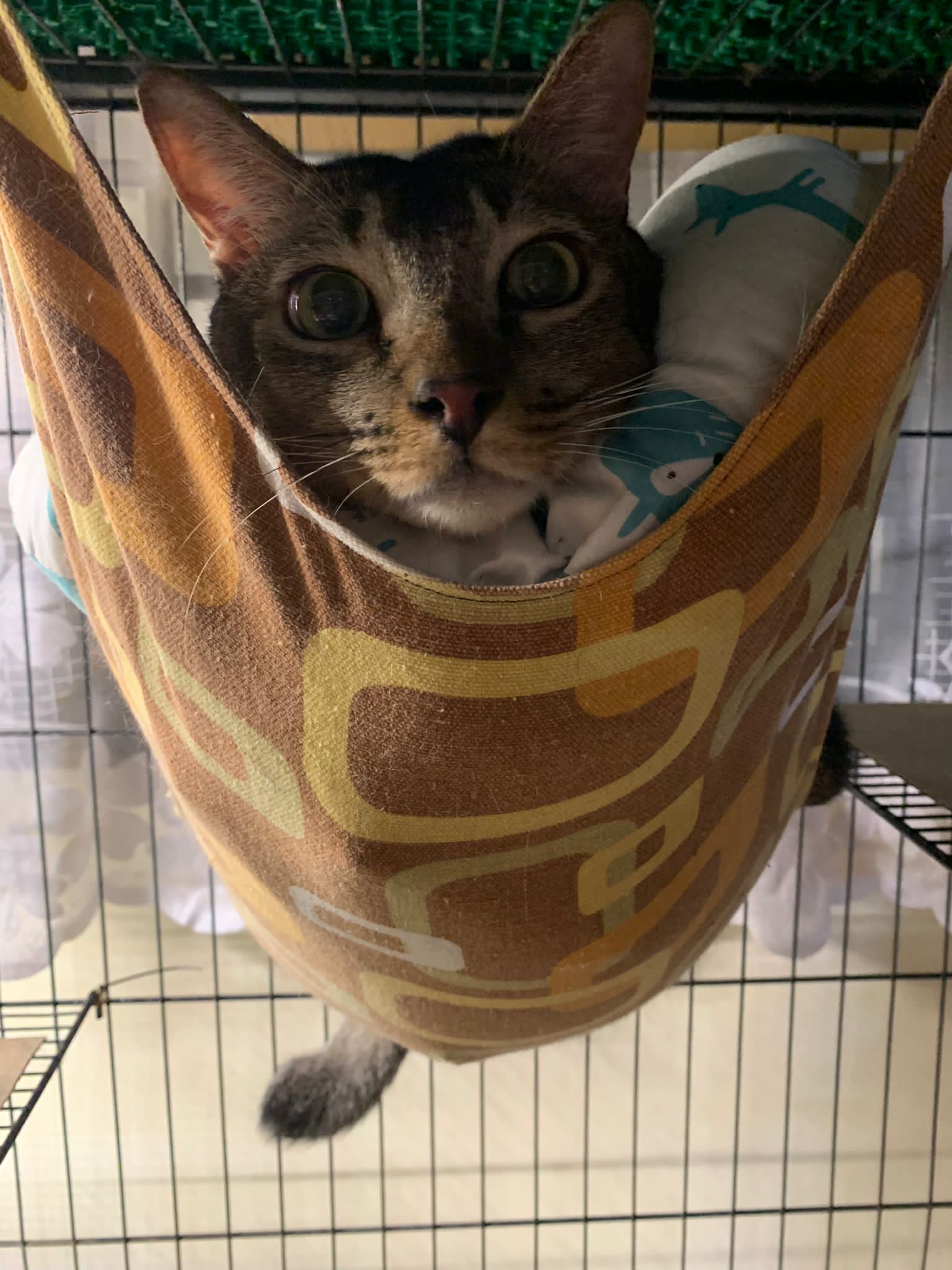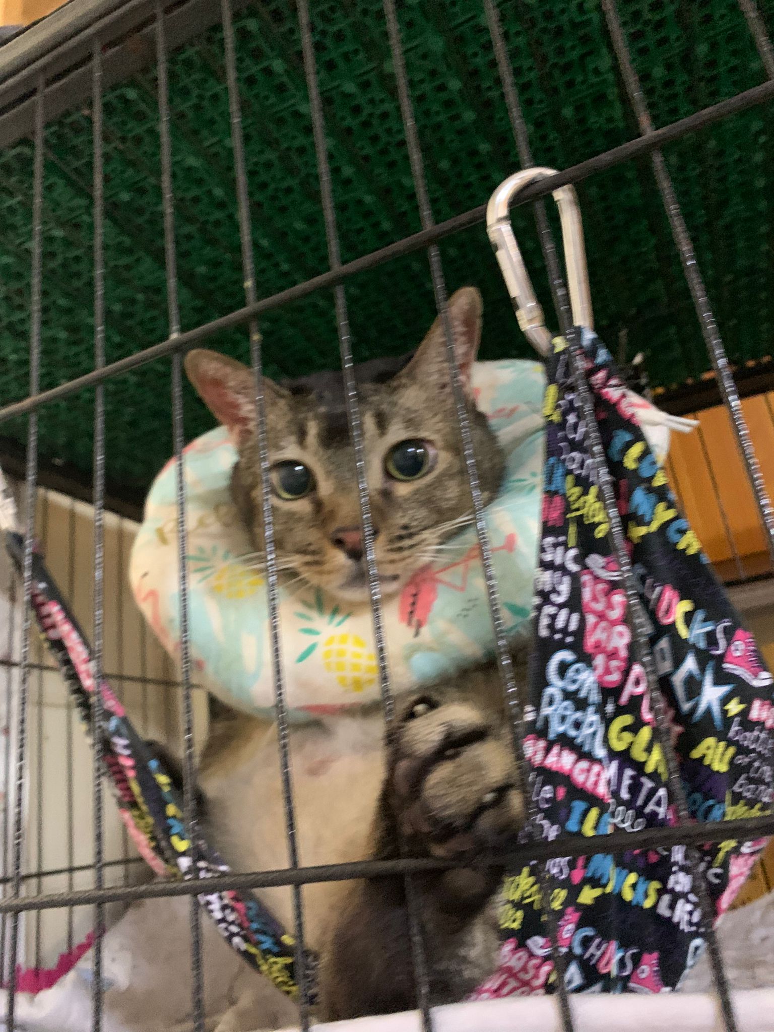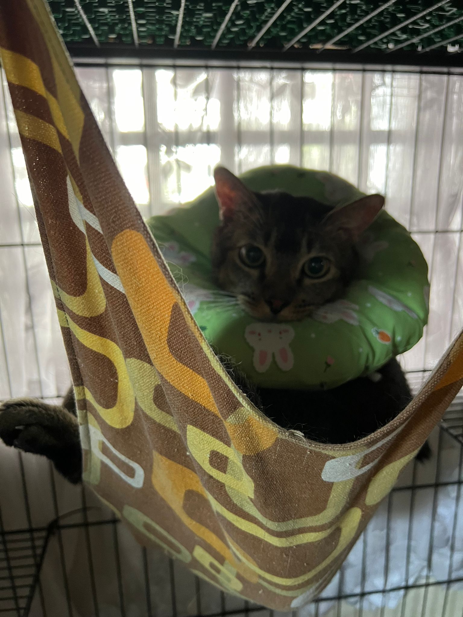 10am+: when I come in he is alr sit on hammock till I left. Fed him forti in cage. Didn’t find bad poo. No vomit.