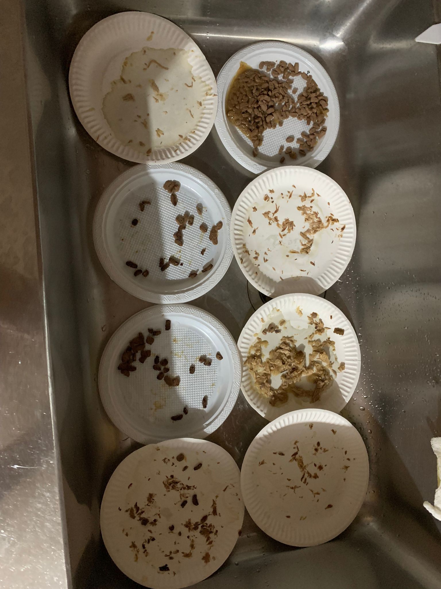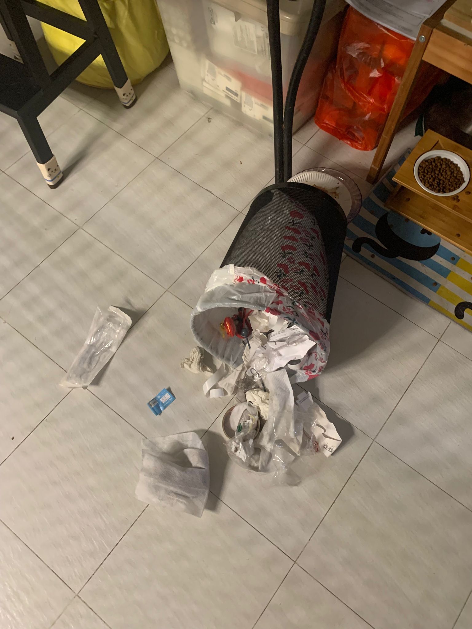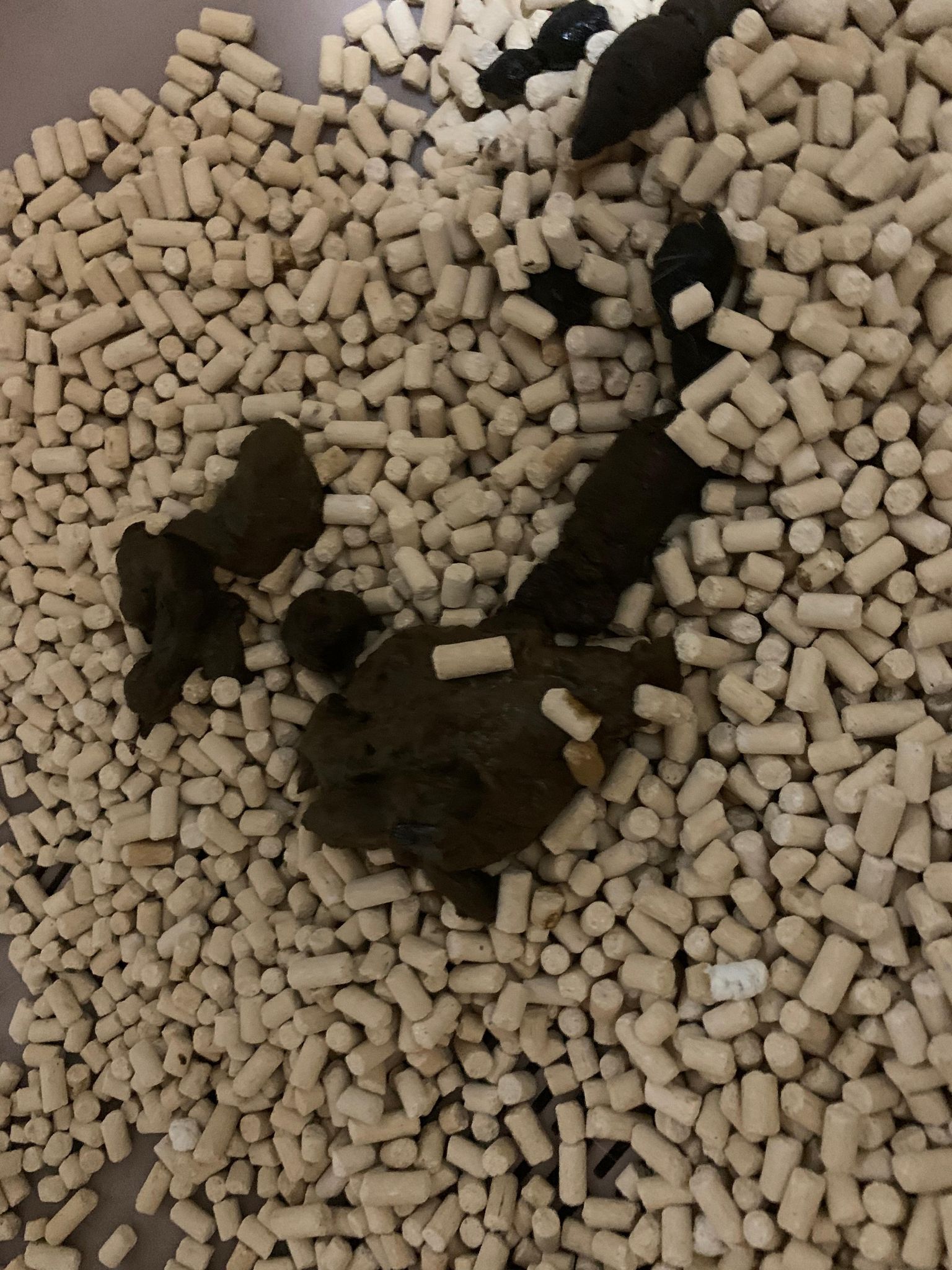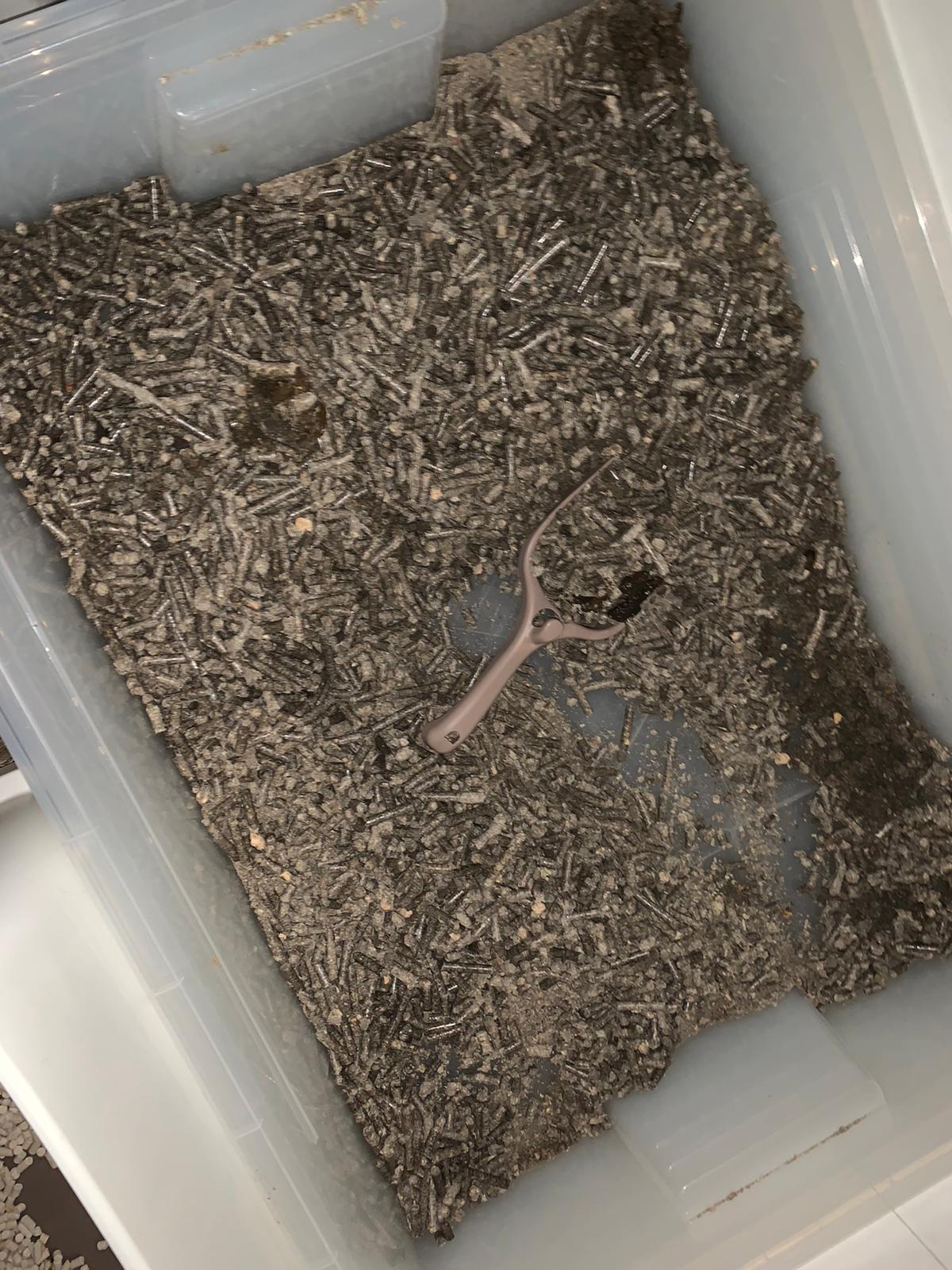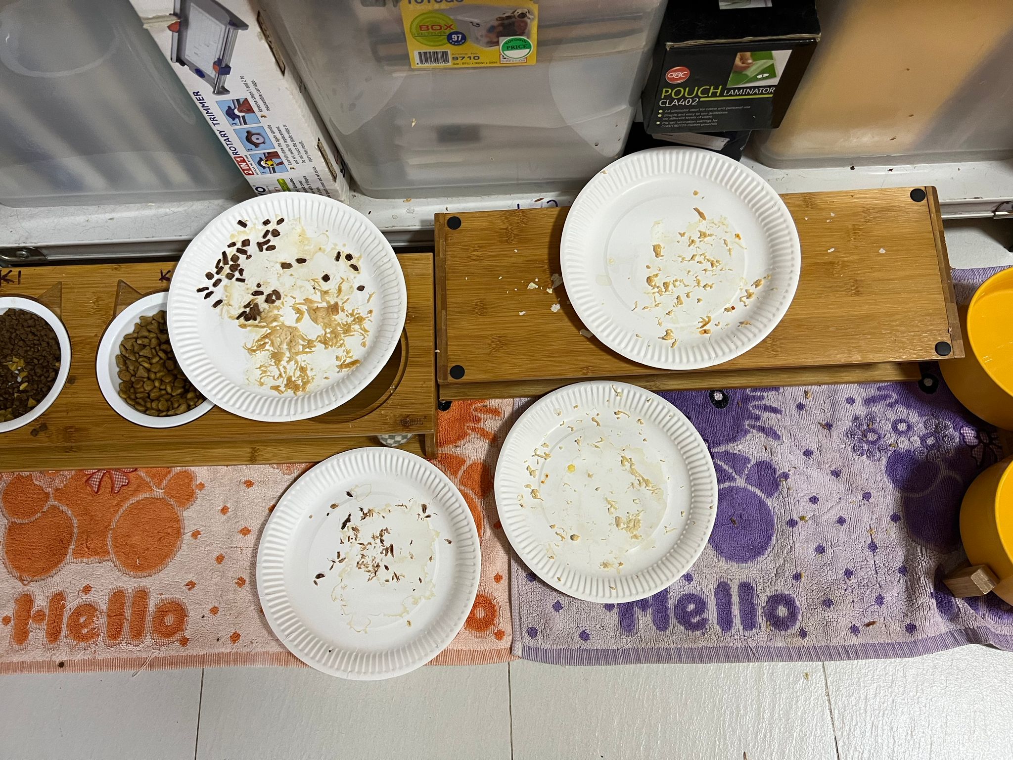Morning; got 3.5/10 poo in bin. Joy n rufus wait for food tgt as usual. All bins quite clean cos wash very frequent but should be good for them la. So messy the floor ha to major cleaning weekly.