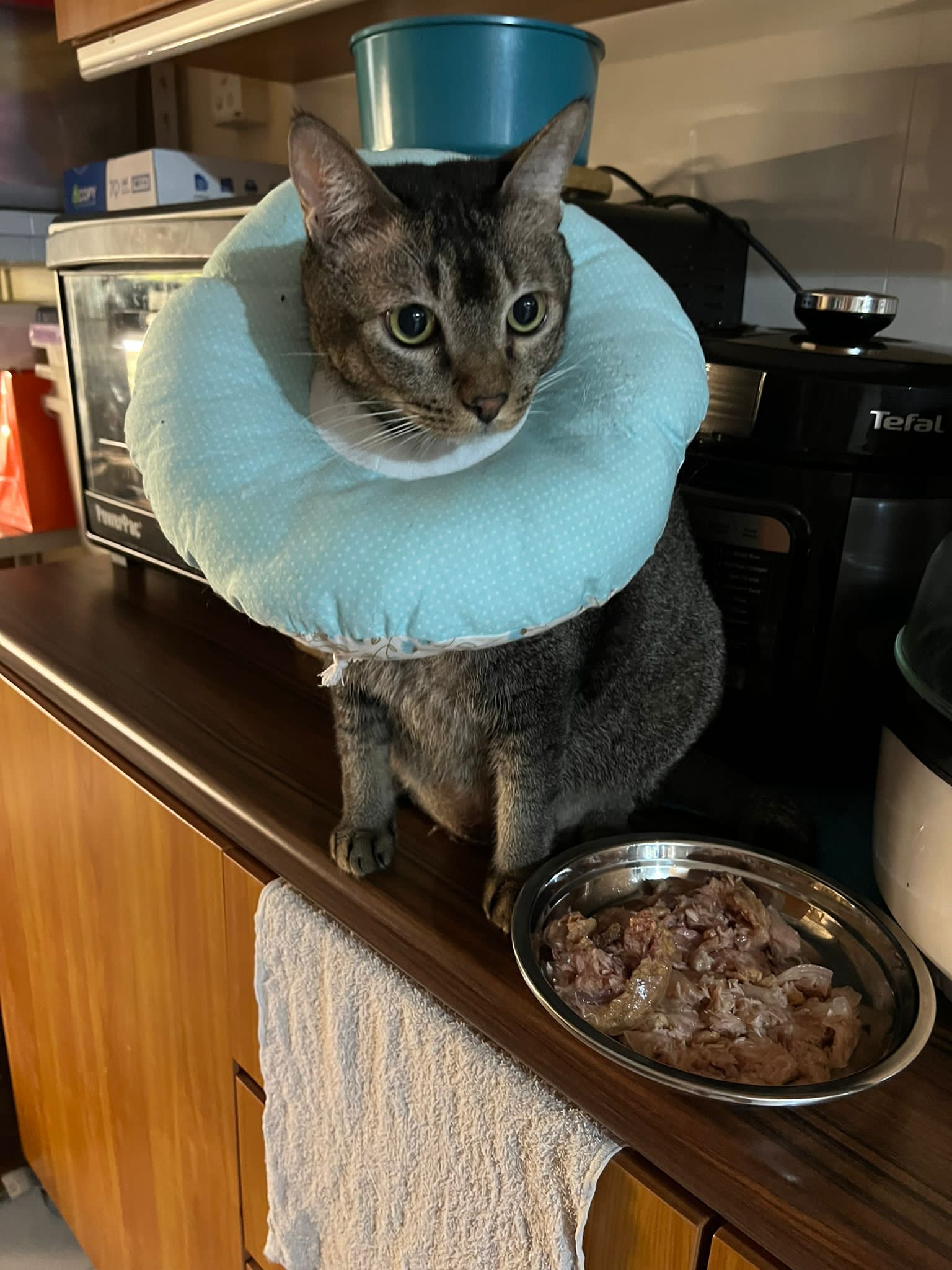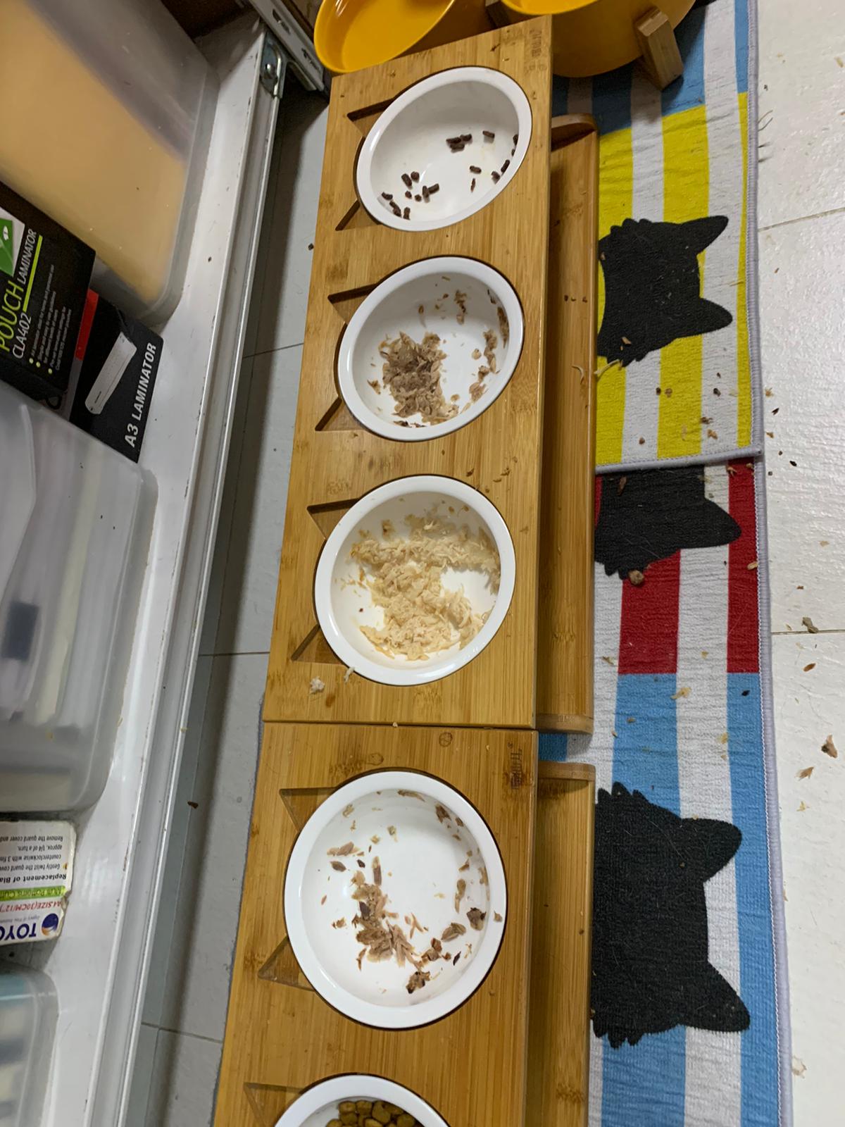 2pm+ near 3pm: I’m done w the basics and wanna go check their bins b4 I go into Kerry room, got one set of 4/10 poo, rufus and joy stand on the serving like as if it’s the next meal time. Today raining so hungry? So fast thought next meal? I told them it’s not leh. But I serve them the good for food chicken fillet, rufus did eat.