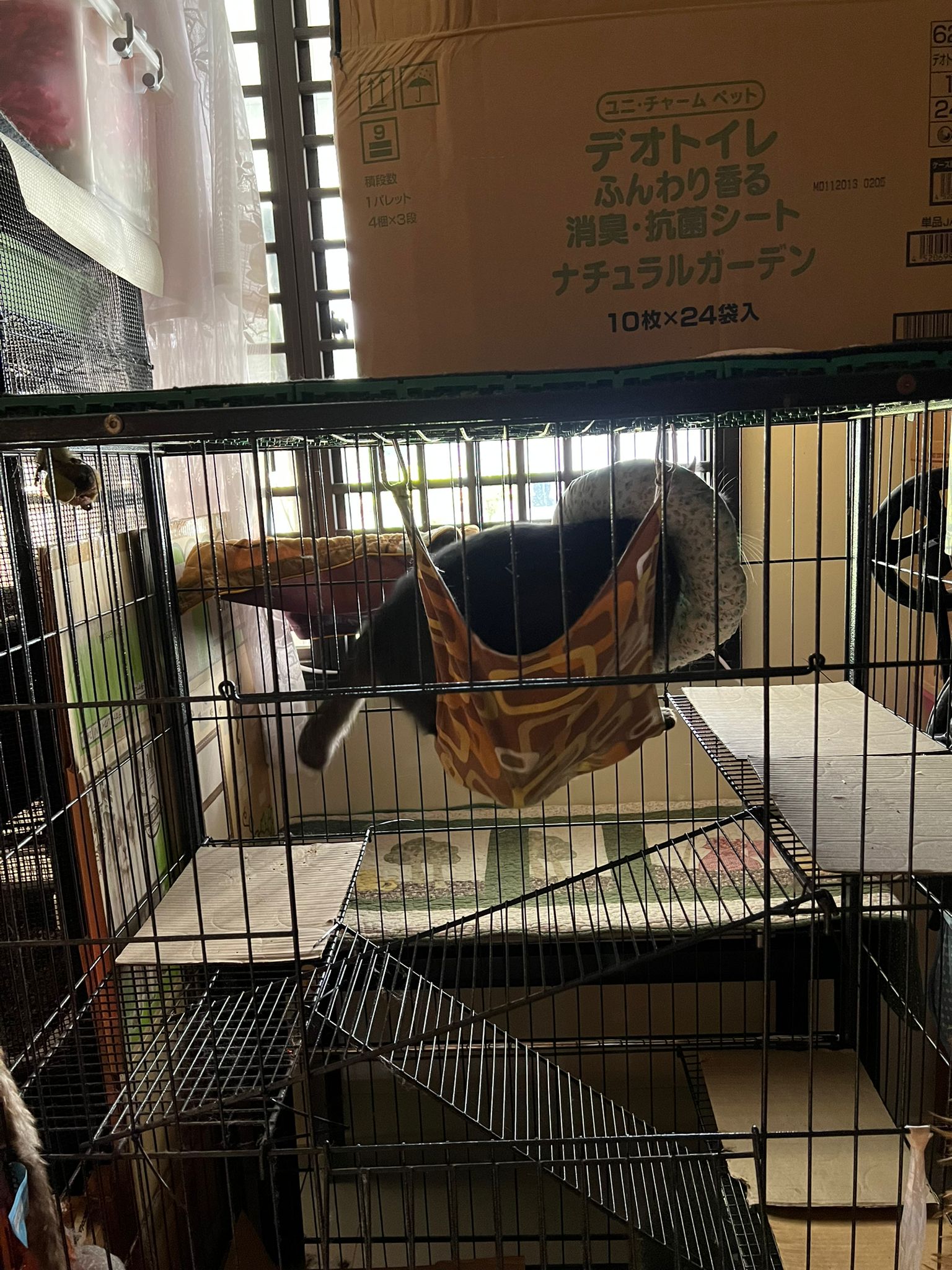 10am+: I rush out w cora and they should know so when I fly back, he is on hammock as usual and bin got 2 more sets of poo 5/10.