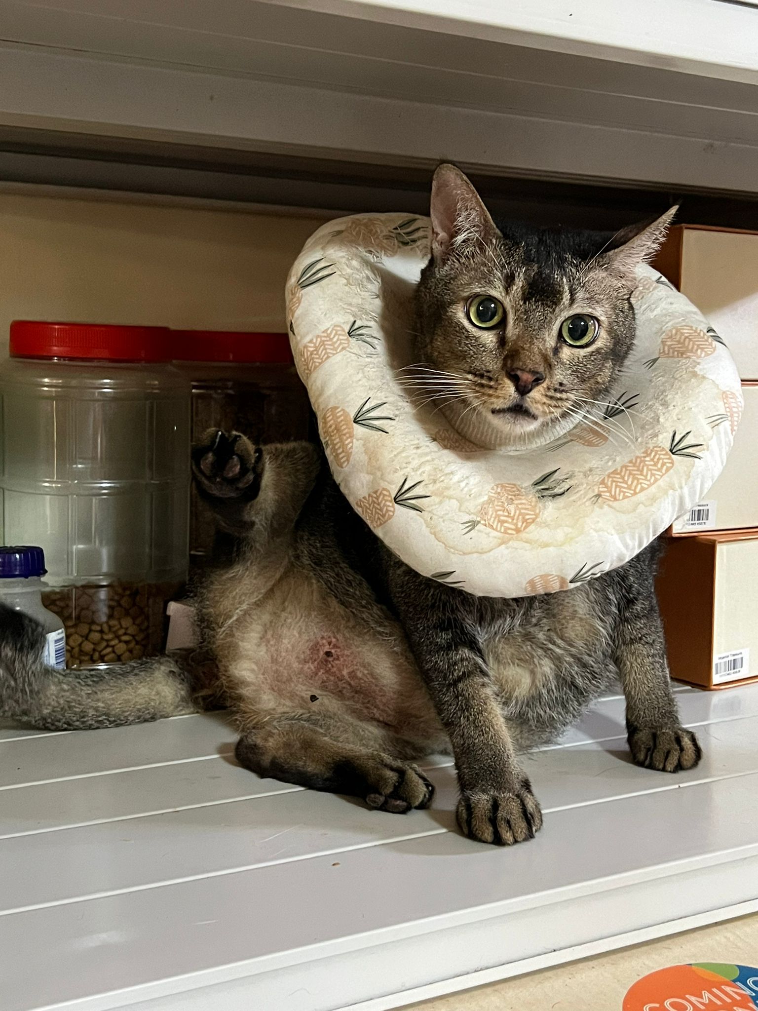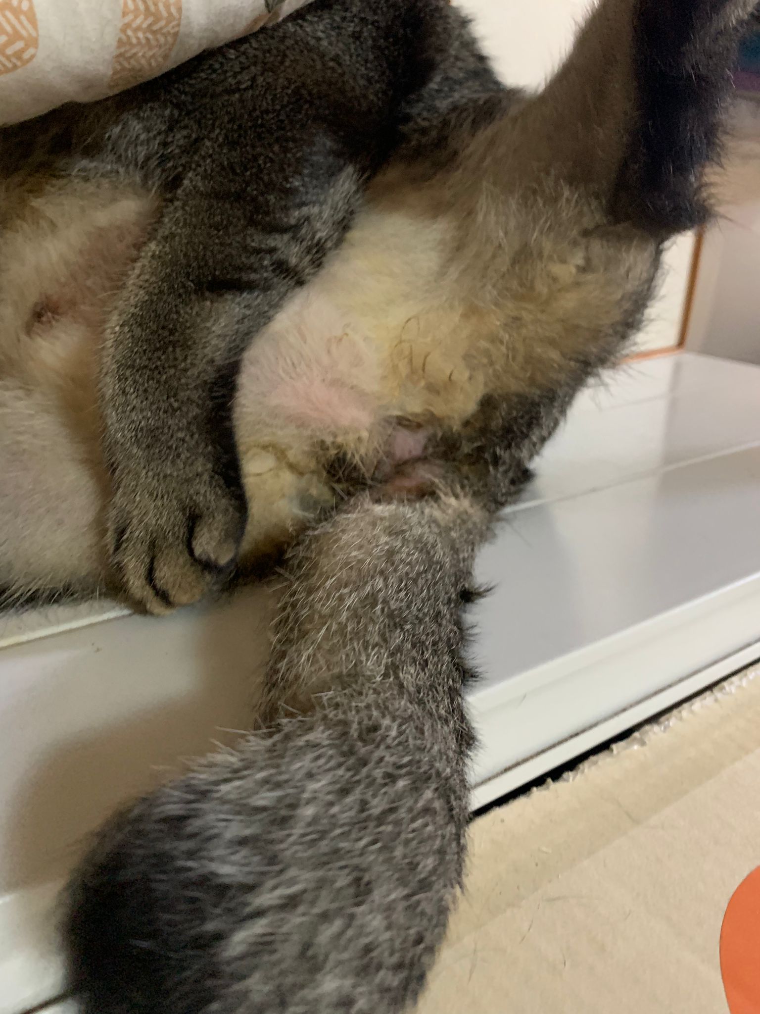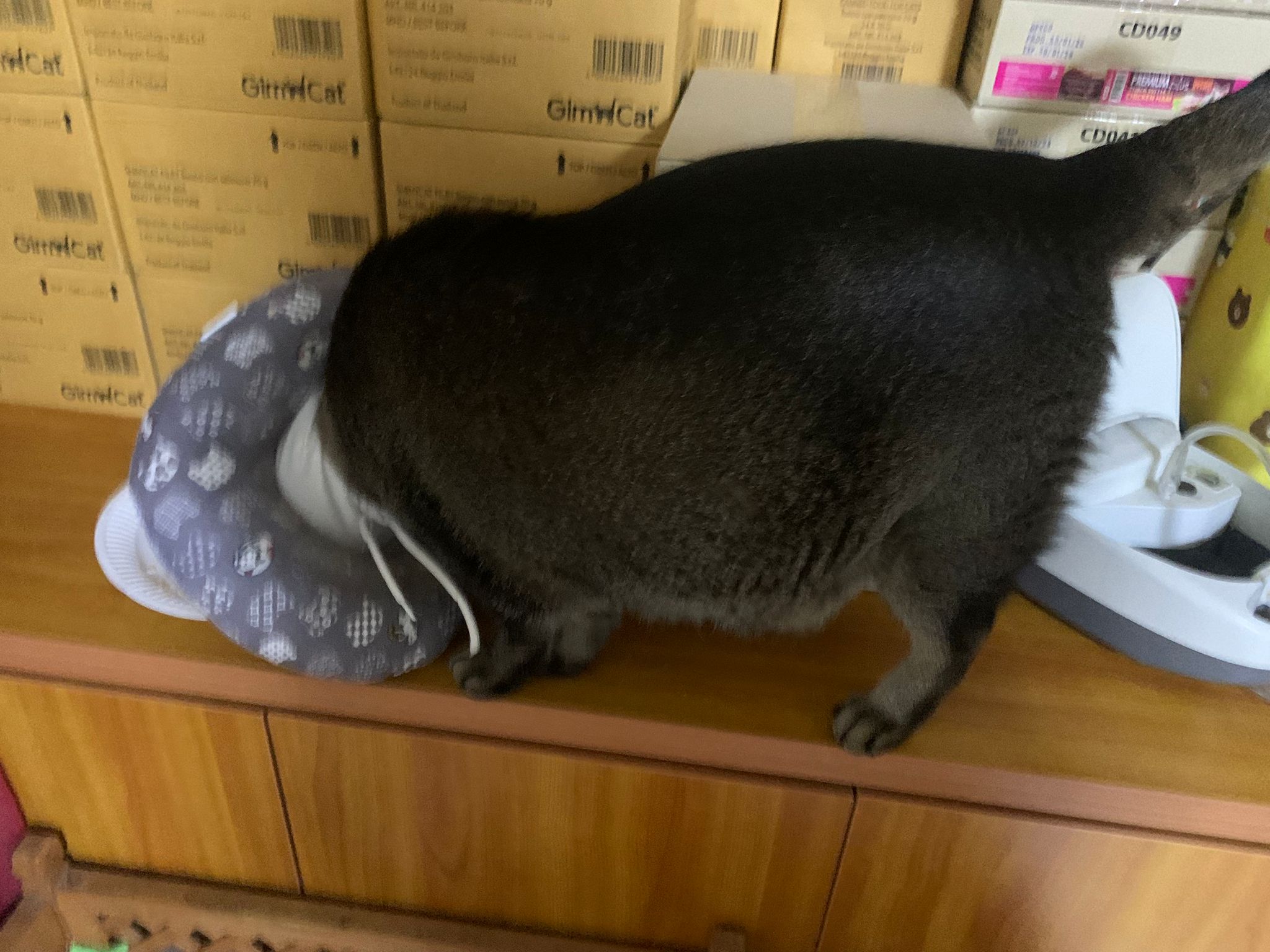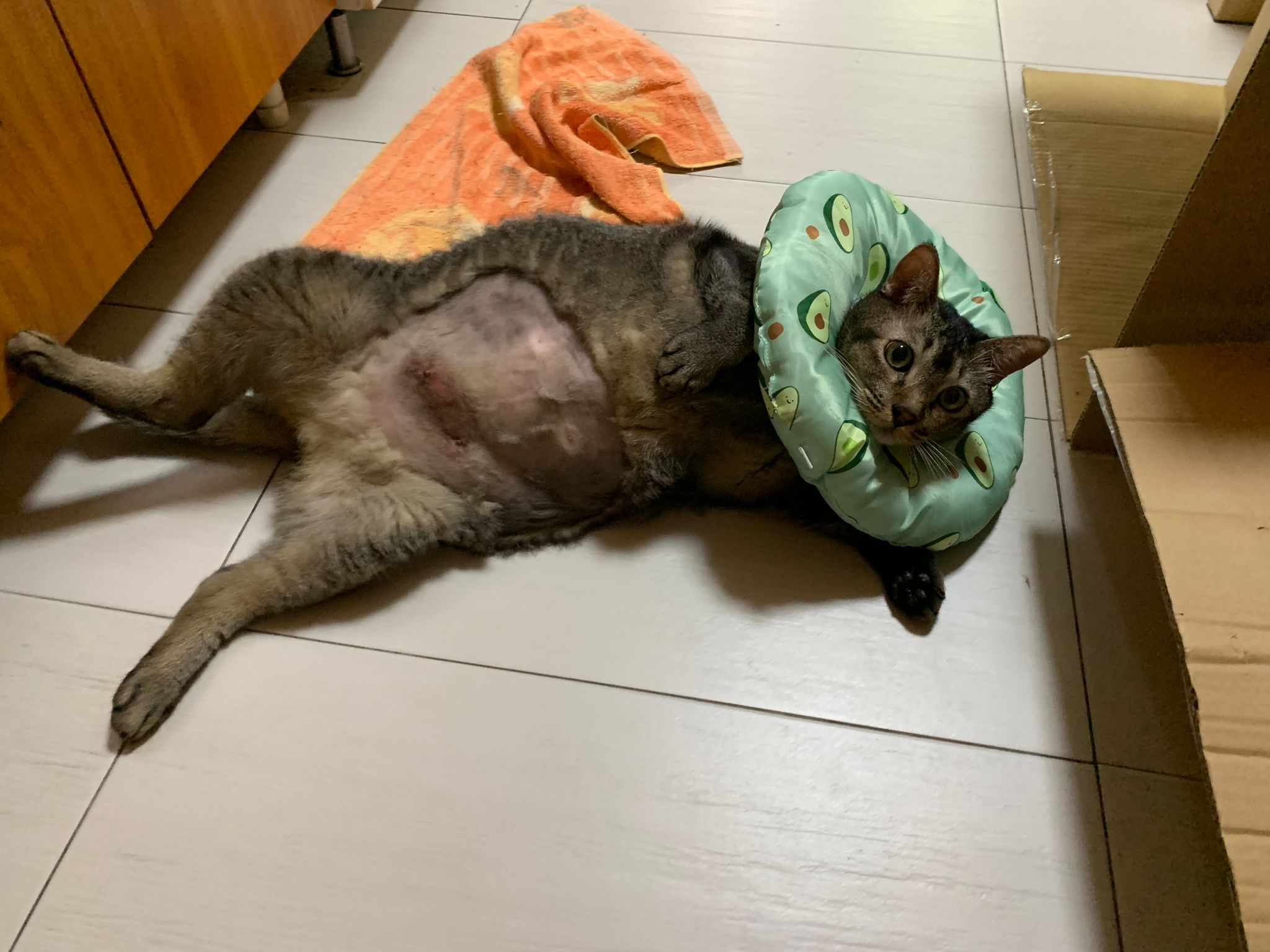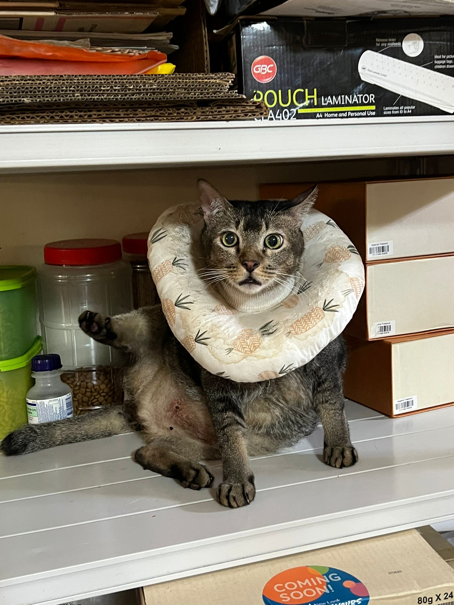 10pm+: up there on top of the metal cabinet sleeping. Didn’t wake up at all. Tummy moving.