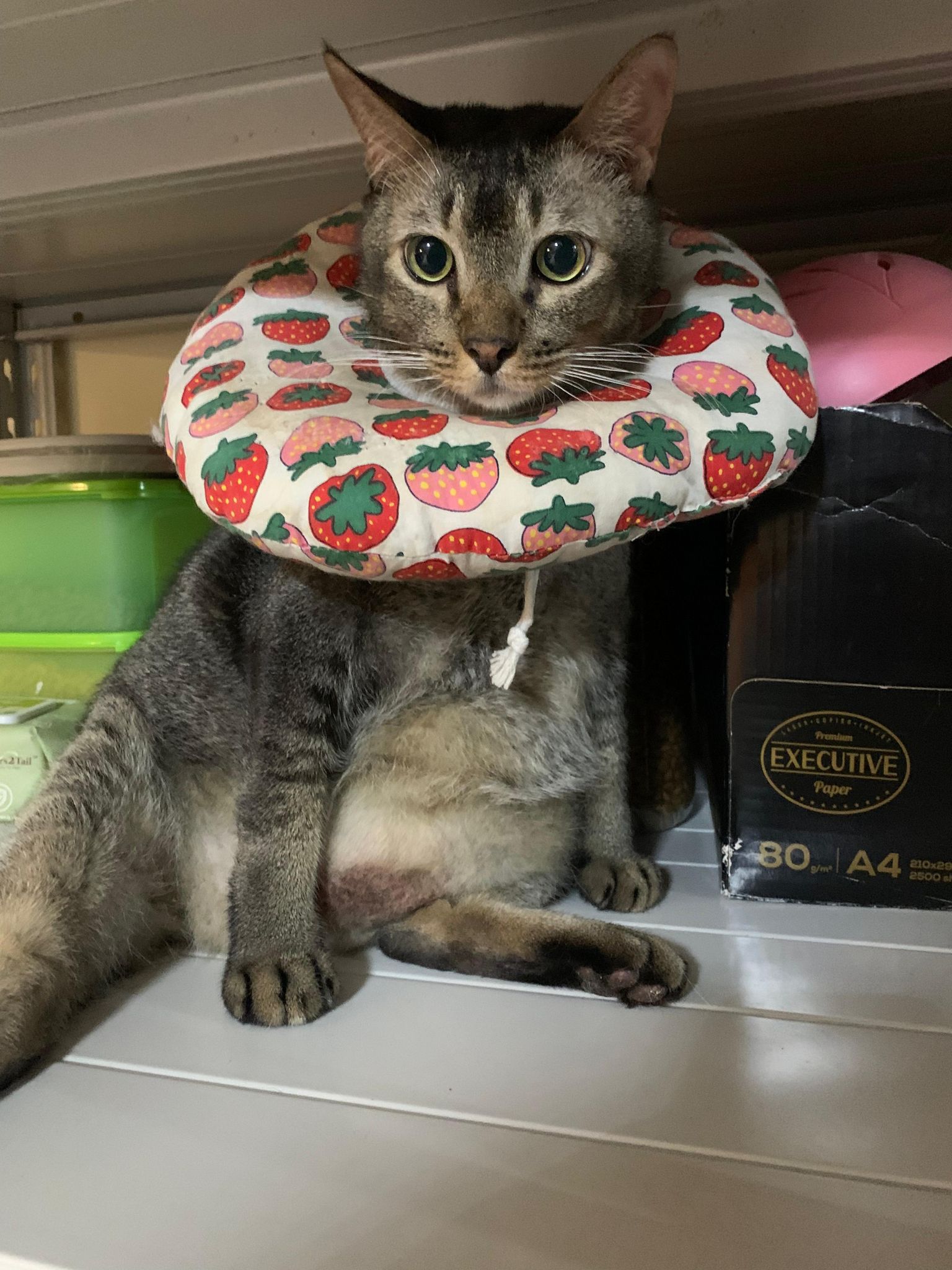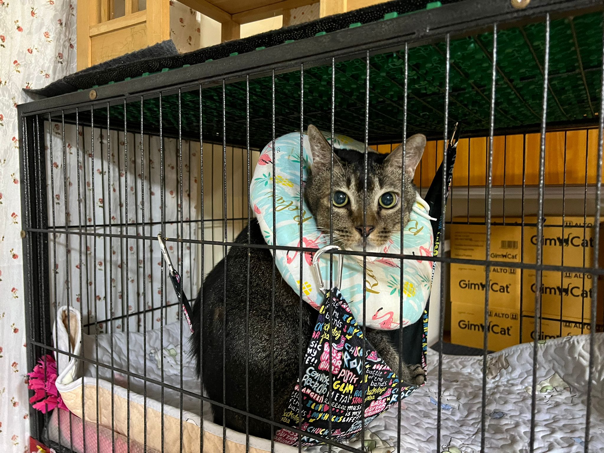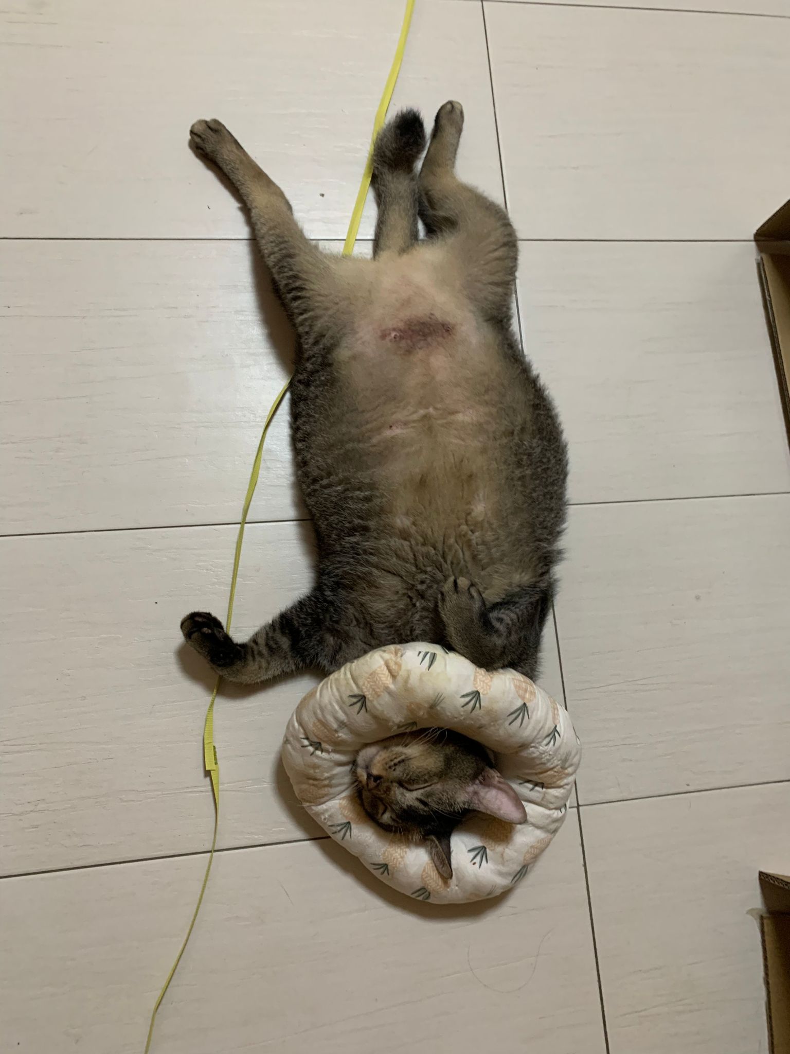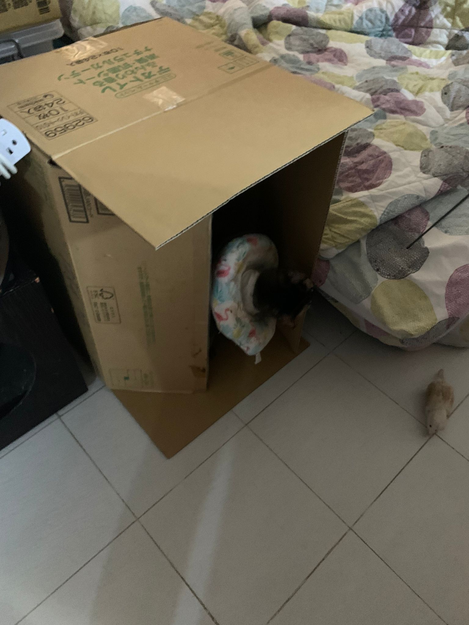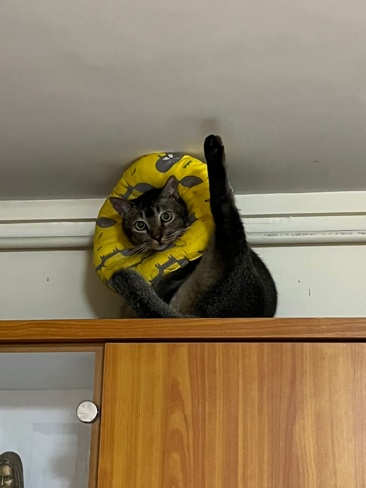 10pm+: up there on top of the metal cabinet sleeping. Didn’t wake up at all. Tummy moving.