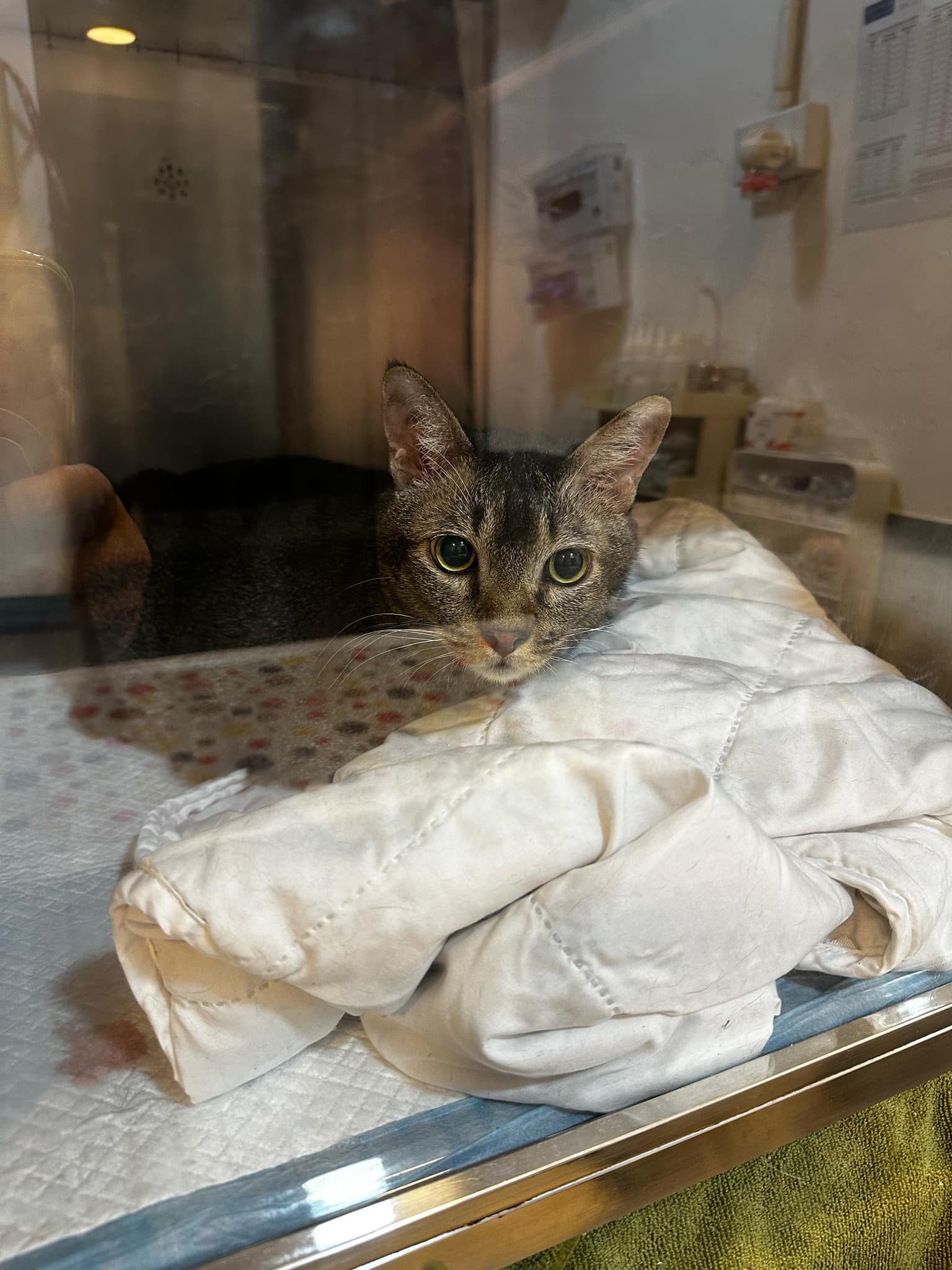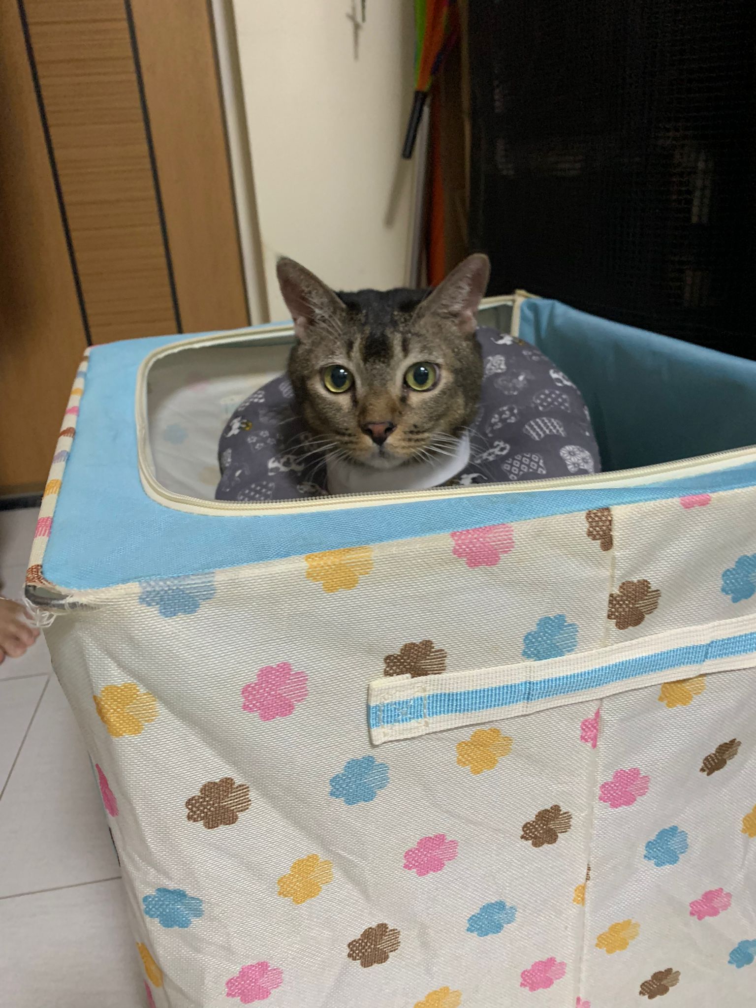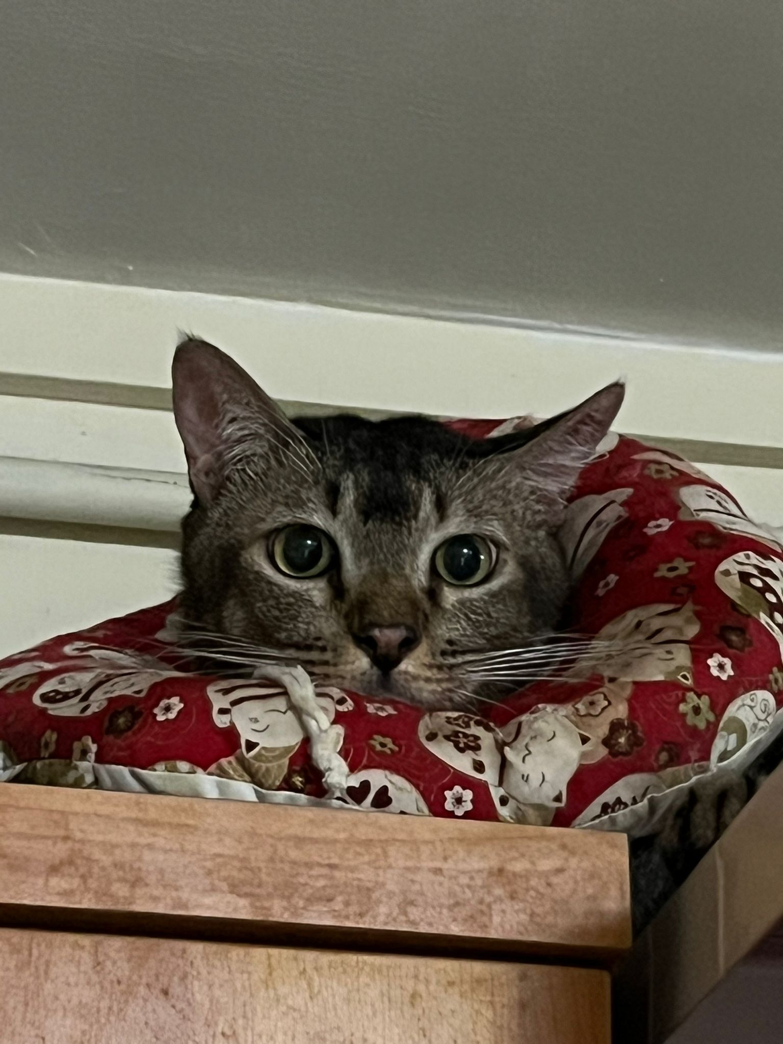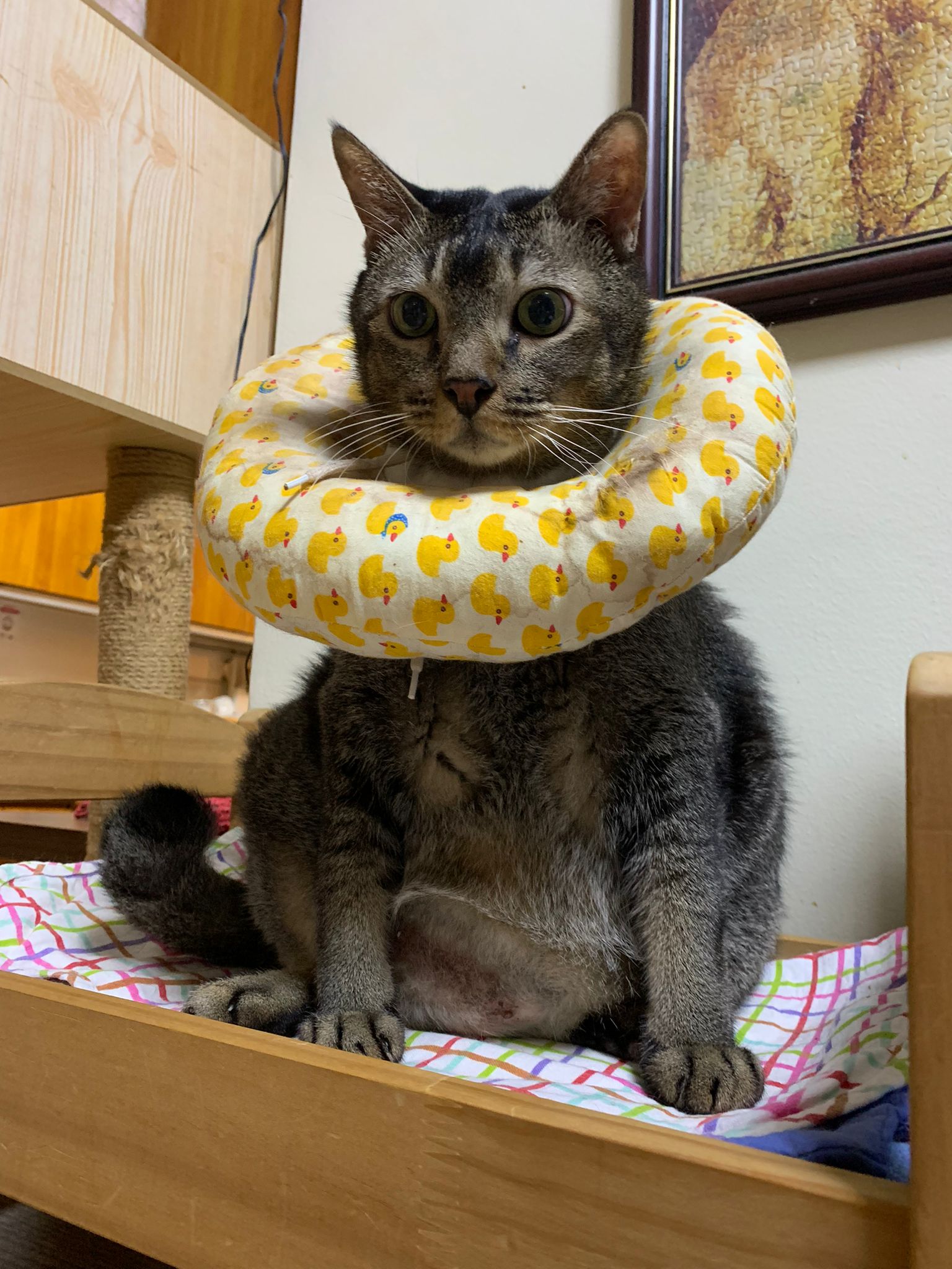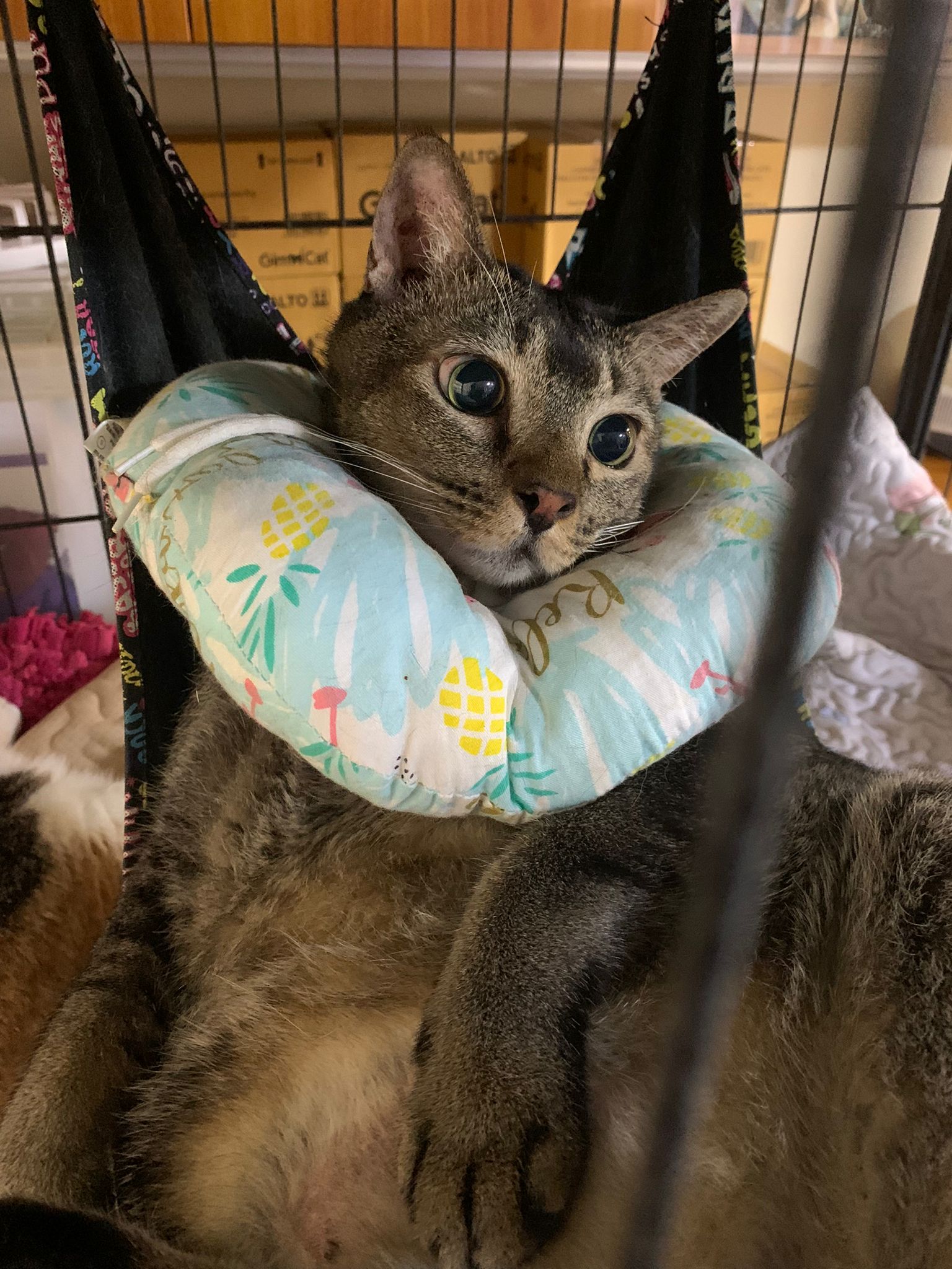 10pm+: up there on top of the metal cabinet sleeping. Didn’t wake up at all. Tummy moving.