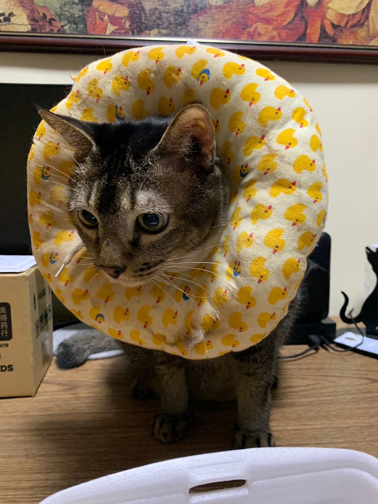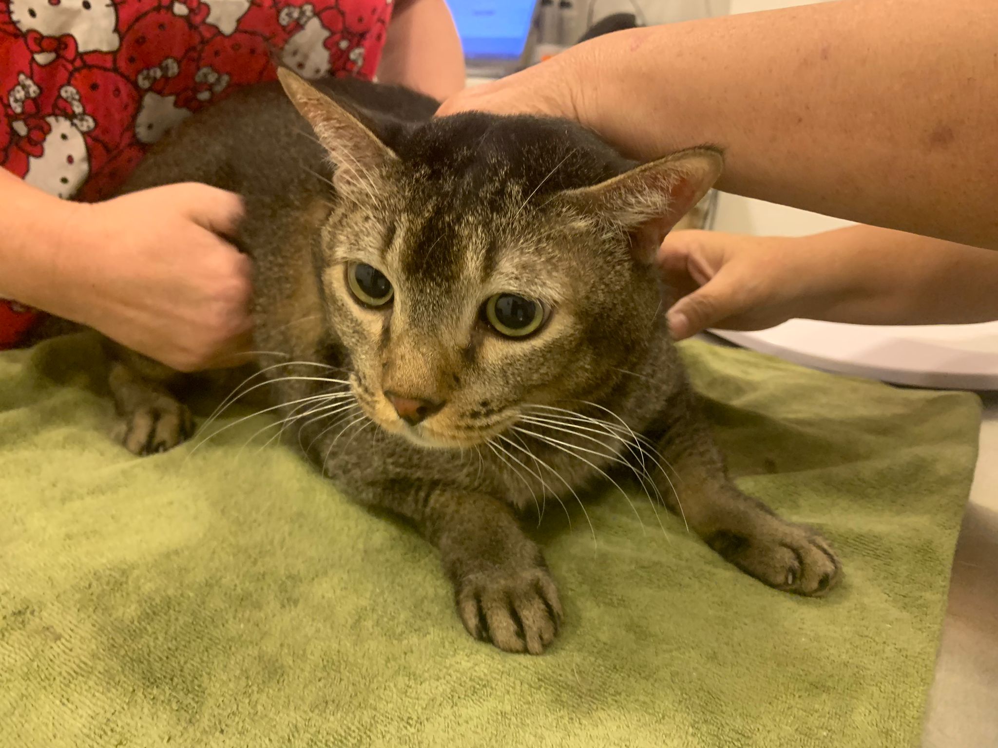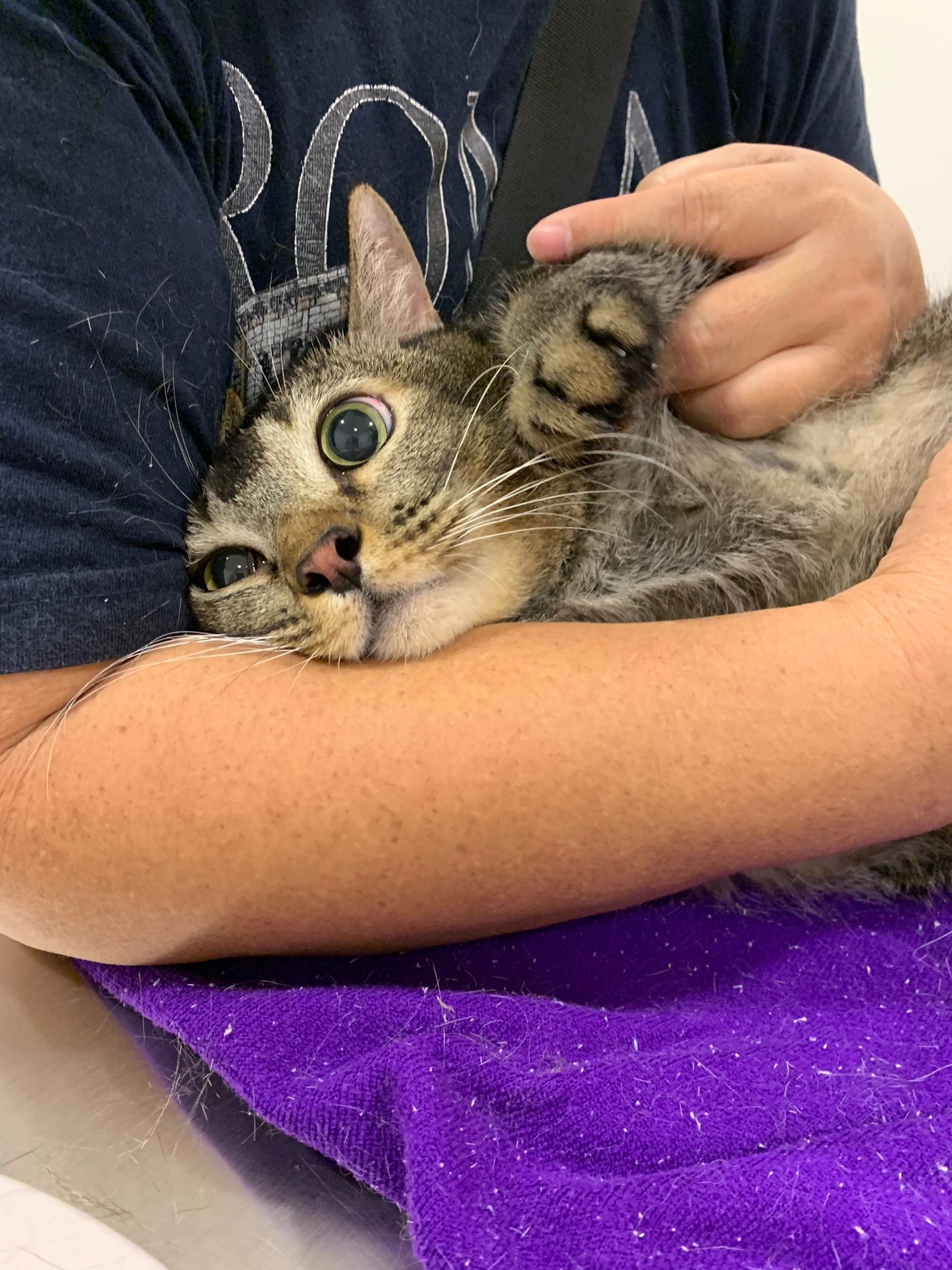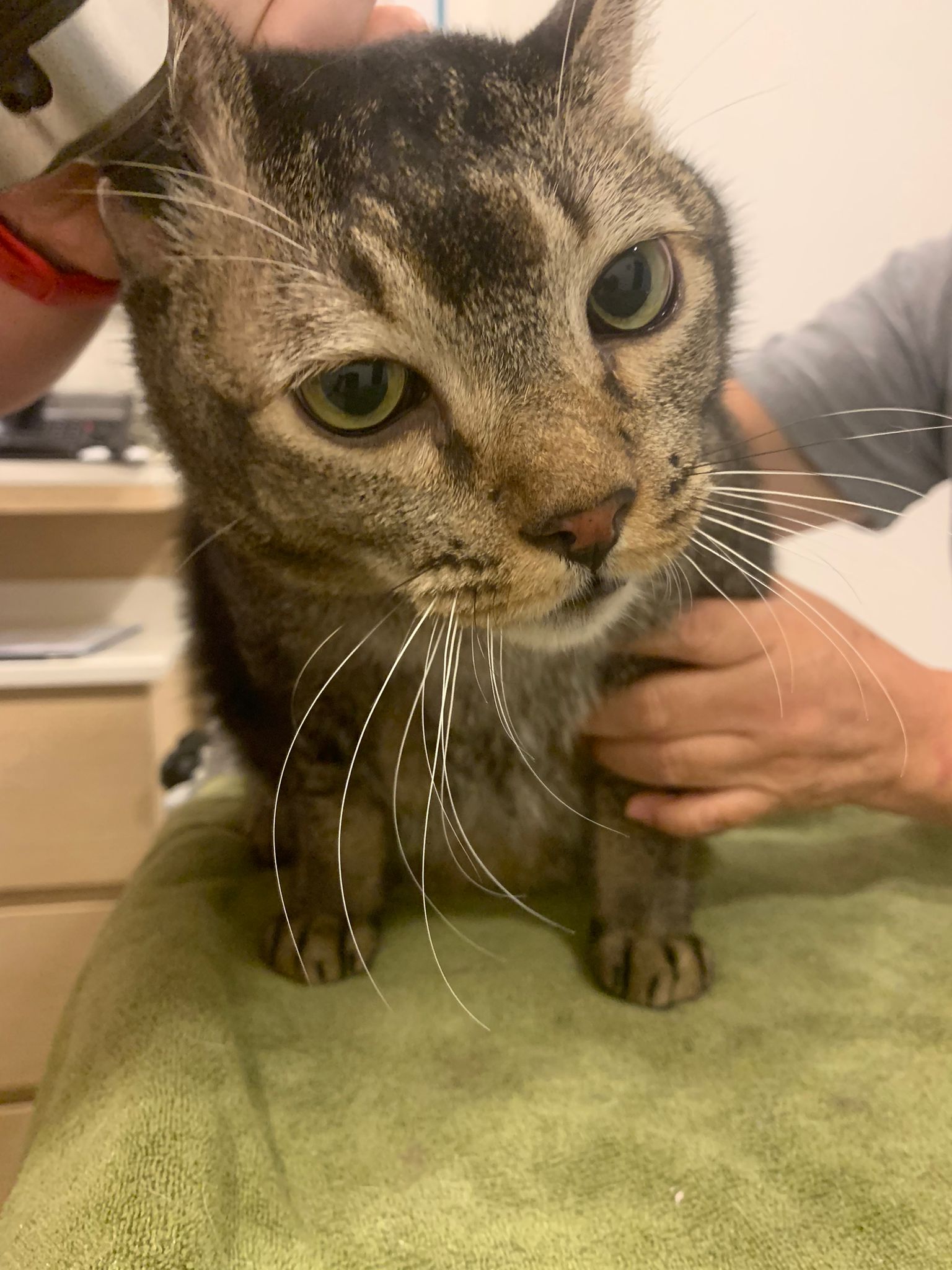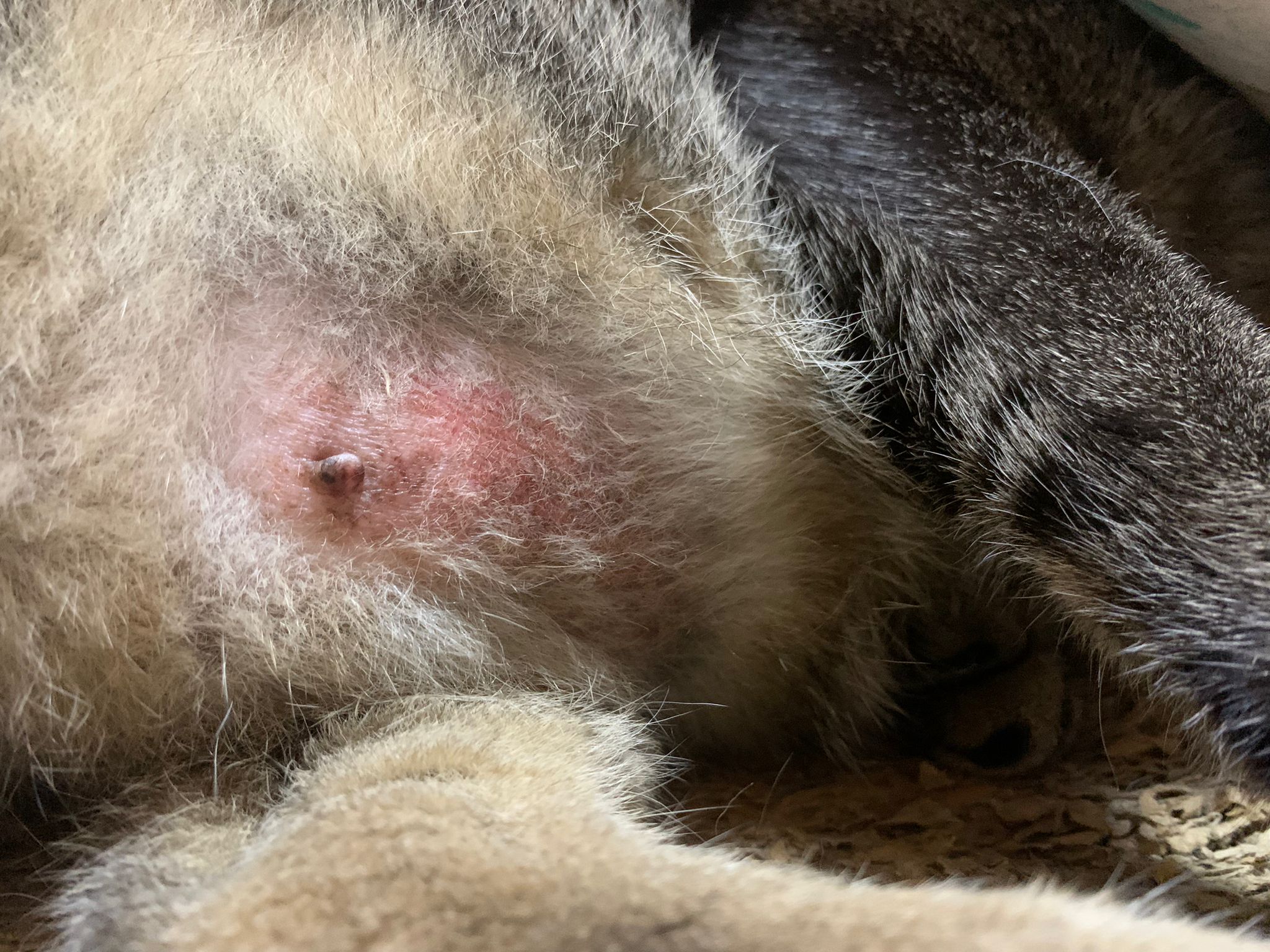 10pm+: up there on top of the metal cabinet sleeping. Didn’t wake up at all. Tummy moving.