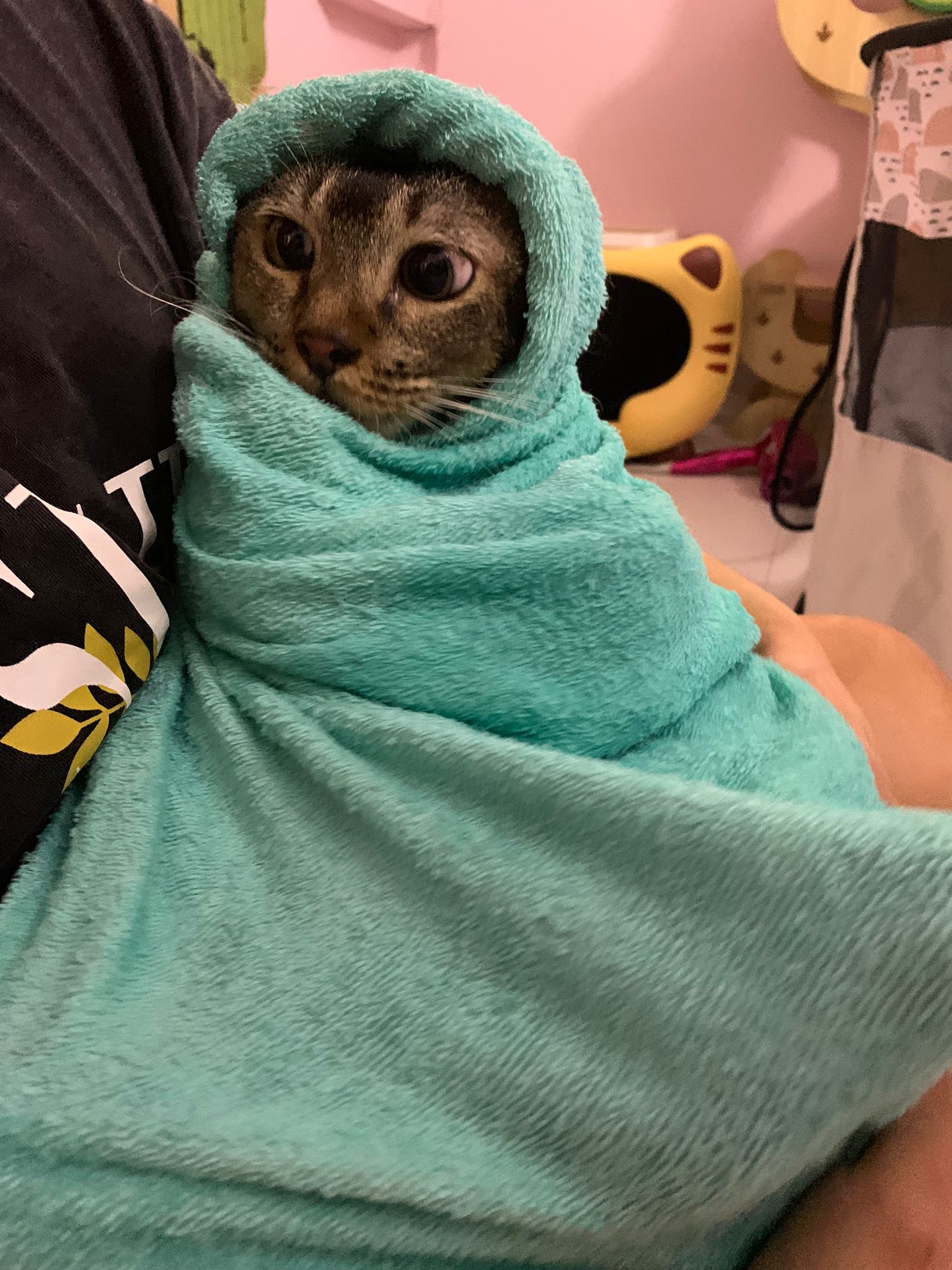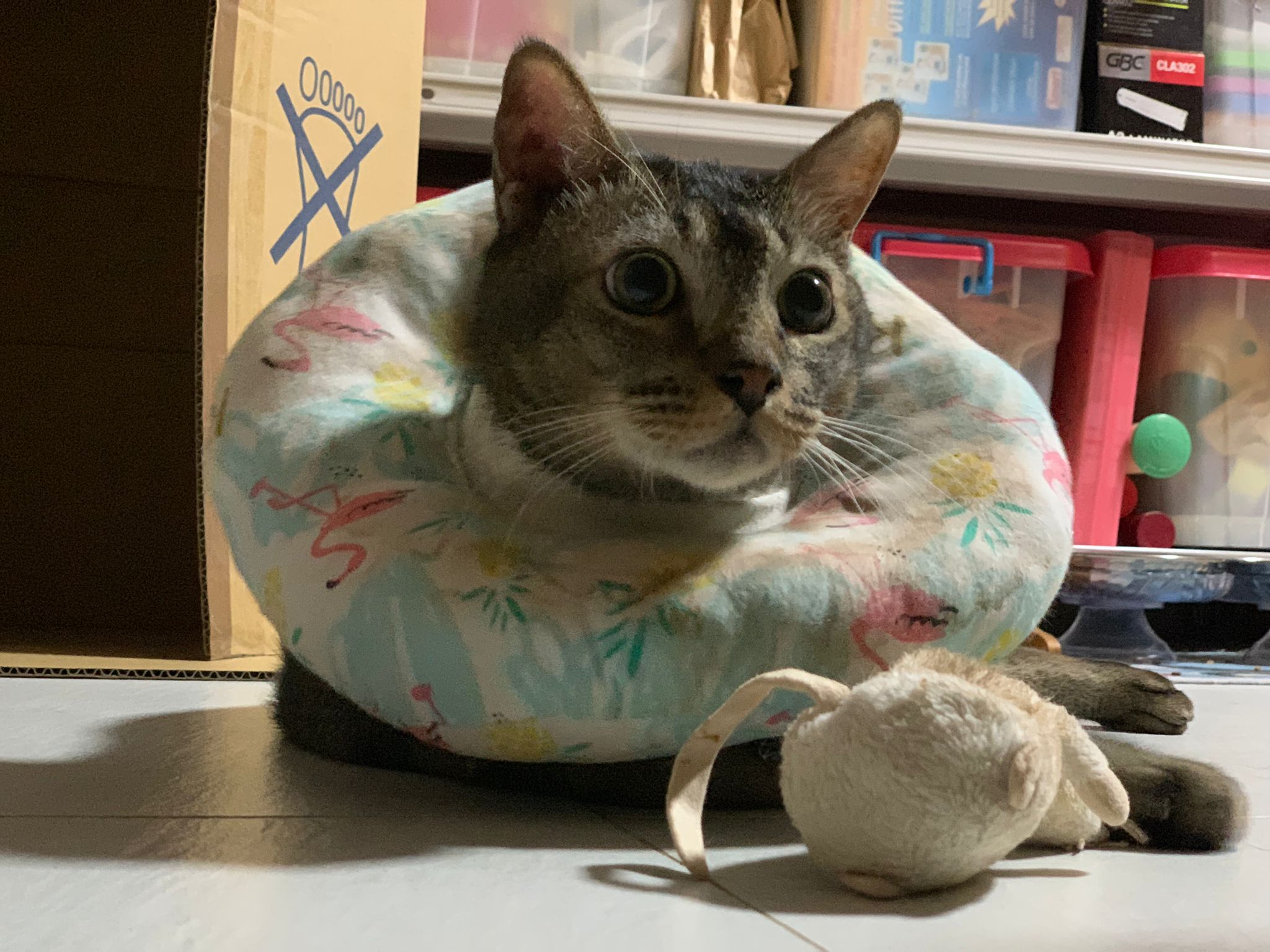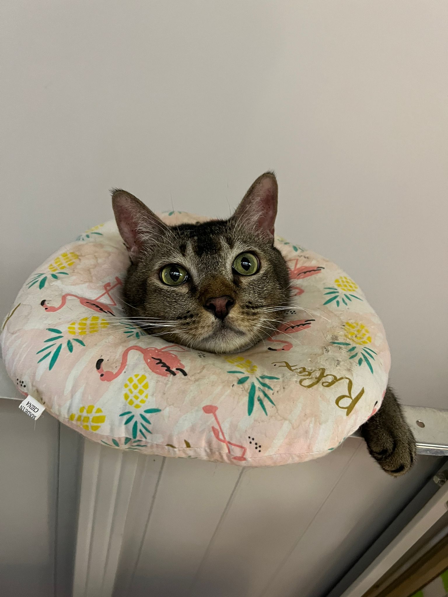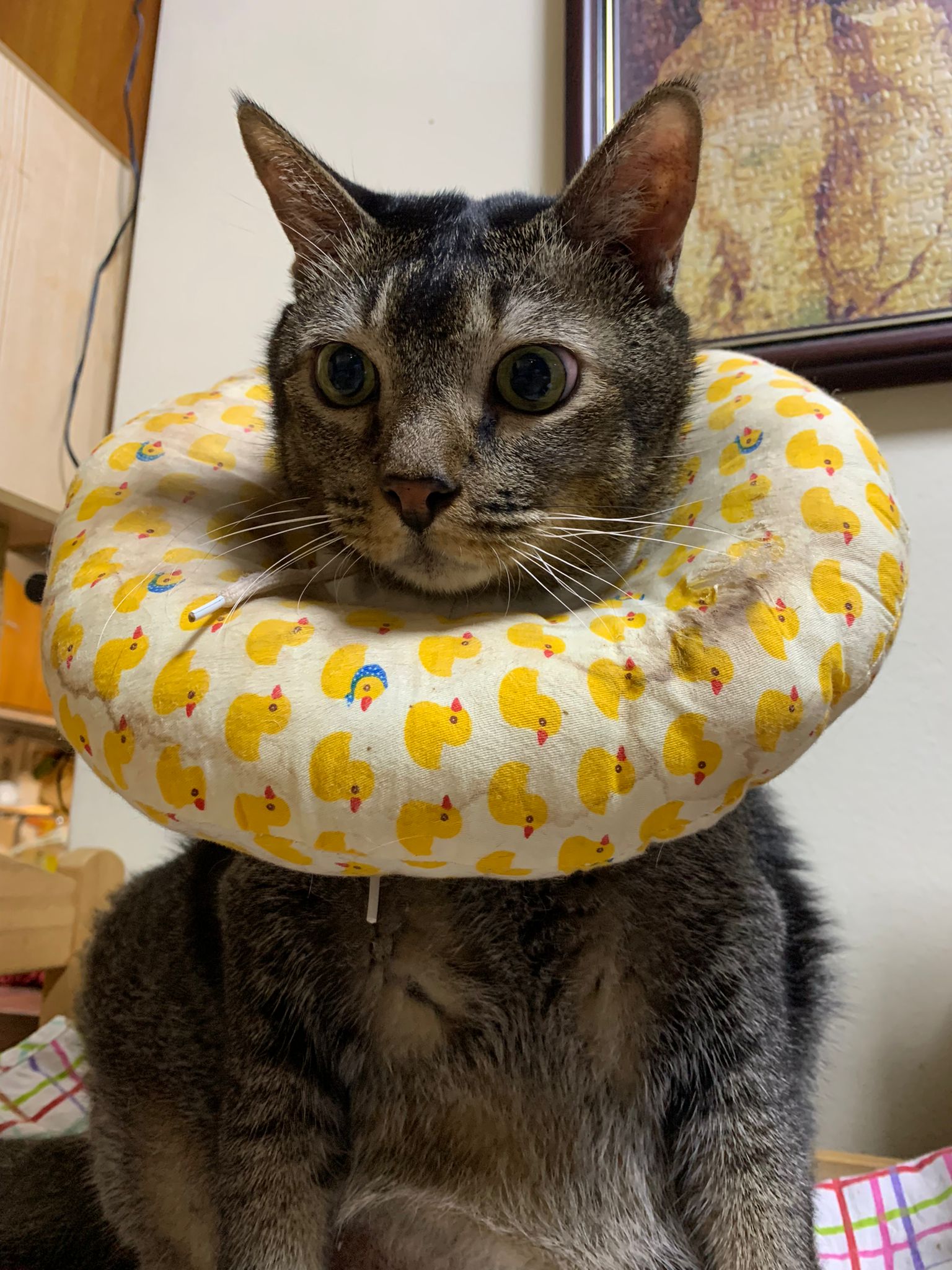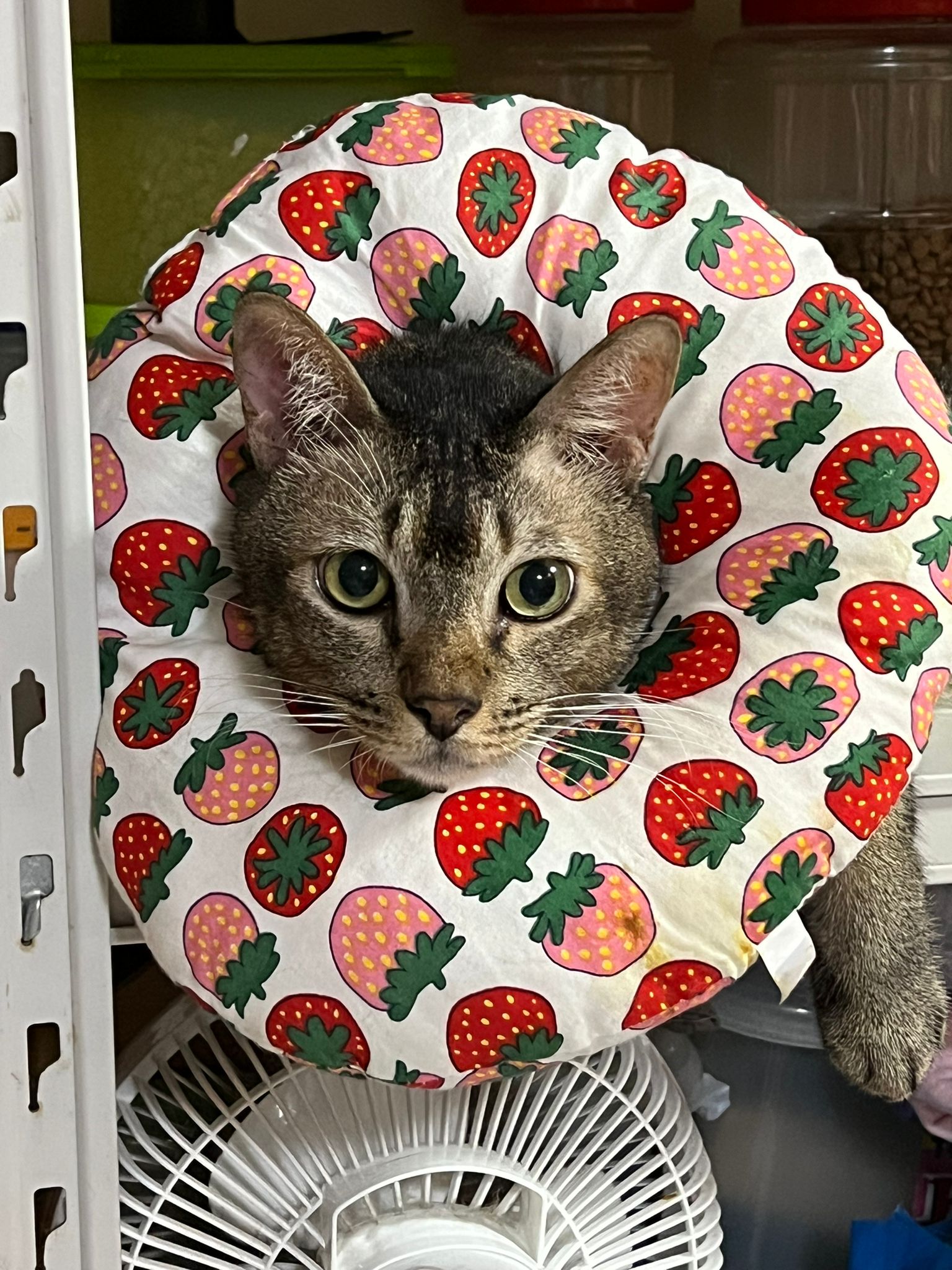 10pm+: up there on top of the metal cabinet sleeping. Didn’t wake up at all. Tummy moving.