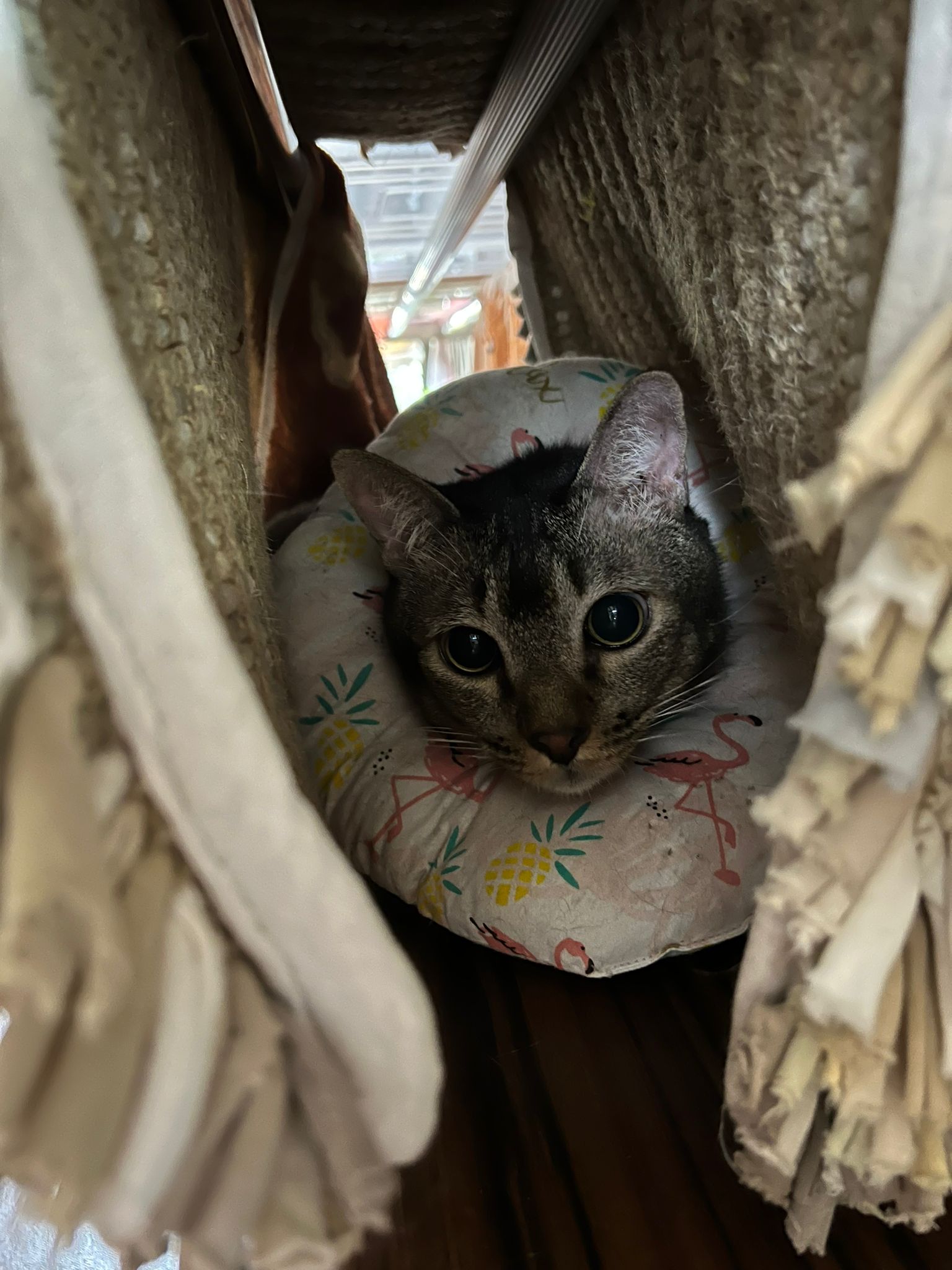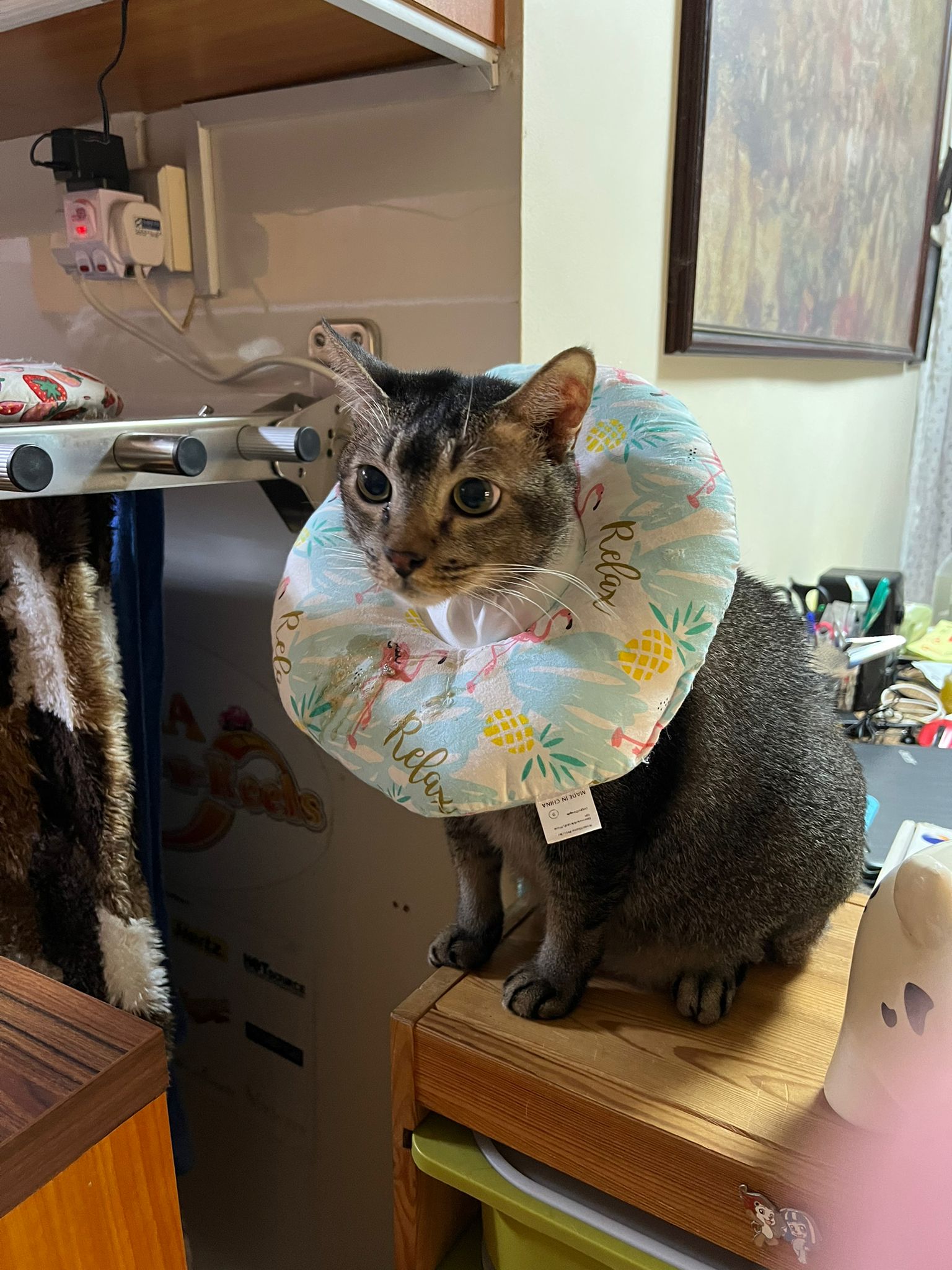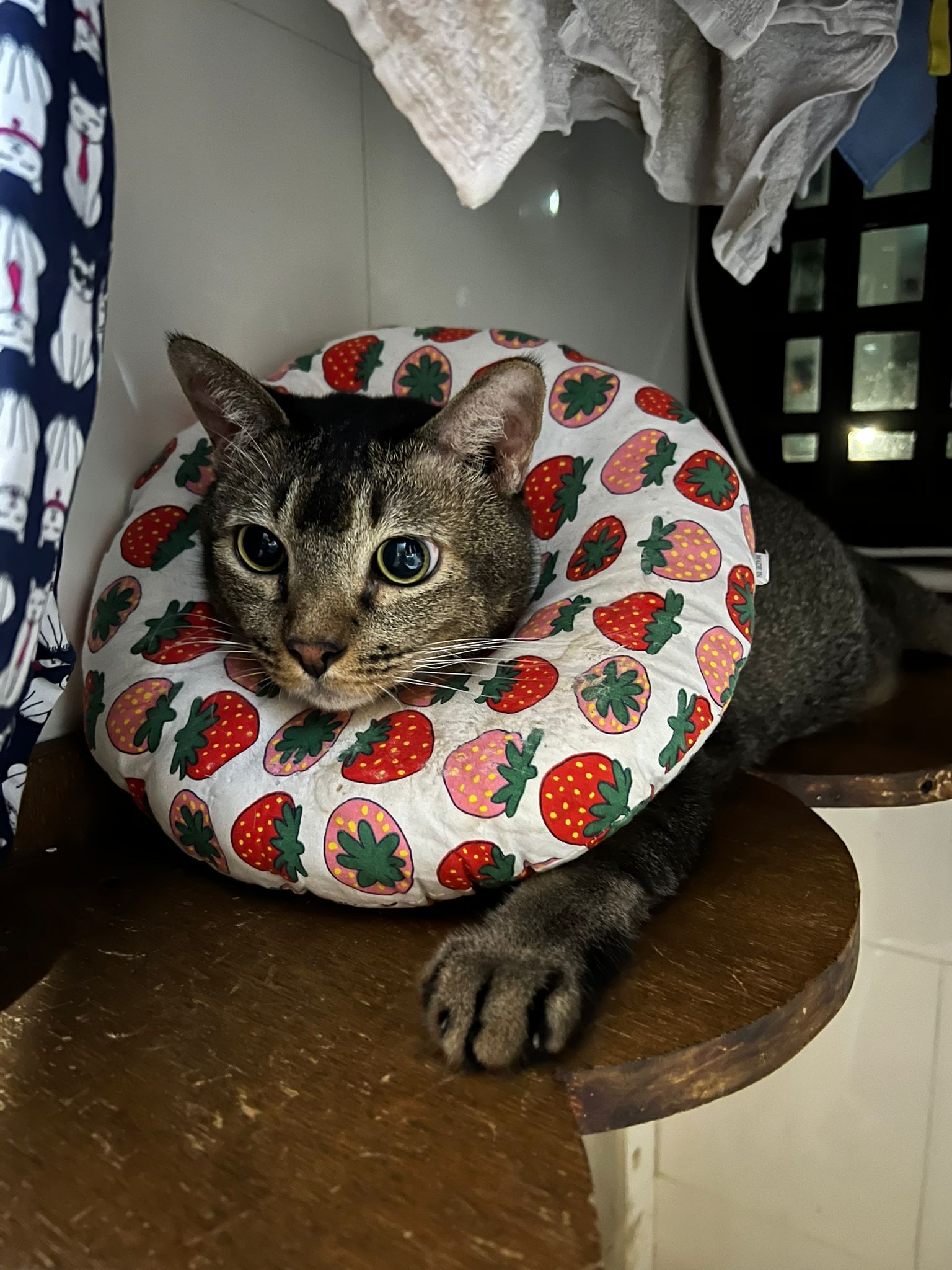 Got got point he is sitting soooo cute like having picnic on bench, so I play w him. Then he keep looking outside the house – I know someone is there – ha he is the telling me that 猫房 dryer box is here
