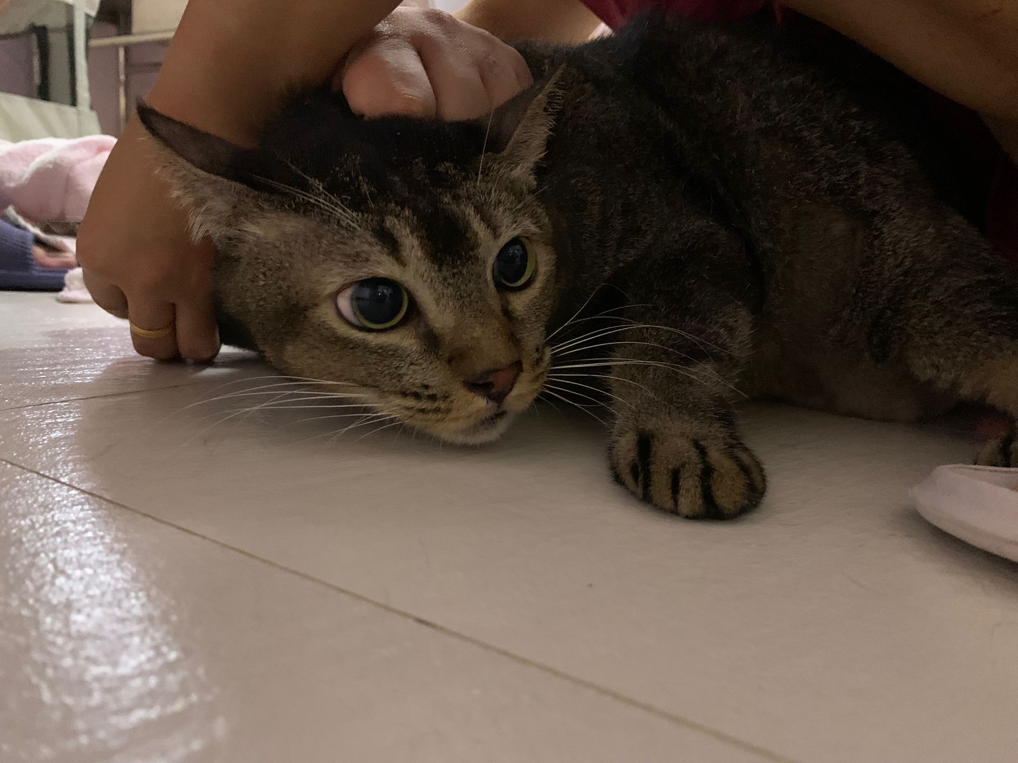 10am+: jo alr serve them food, and I sit down on floor when I come in and mama come to me for sayang n pats as usual. Rufus join in wor!!! That’s weird ha. He want more sayang. I sayang his head his face his chin then I kiss him. Then he want repeat again.