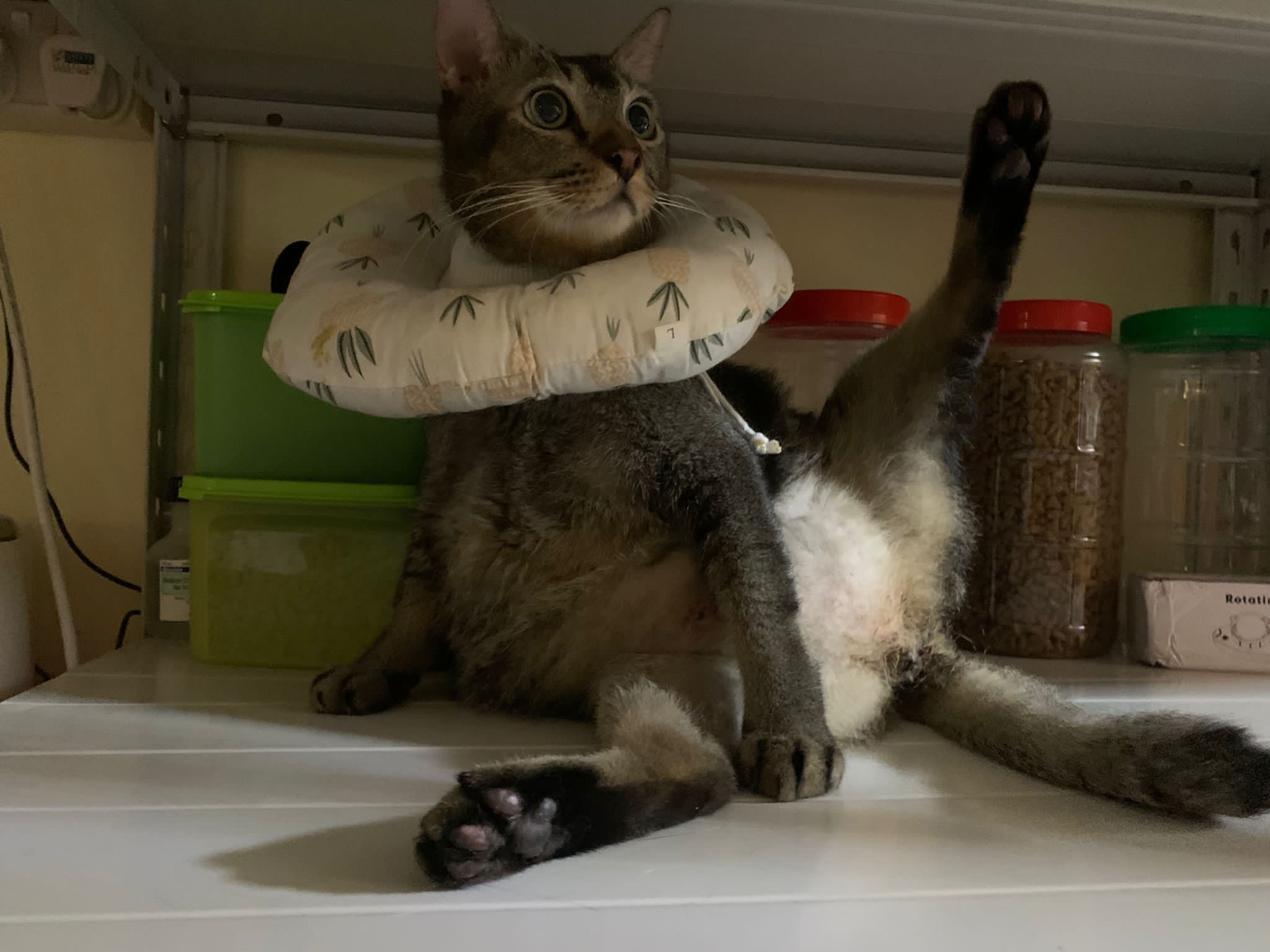 Morning: smart today. Position in a way I can’t feed him probiotics. Still got lick me n play bite me only, don’t attack but just not in position to feed. Open food also didn’t manage to cheat. Probiotics given anyway