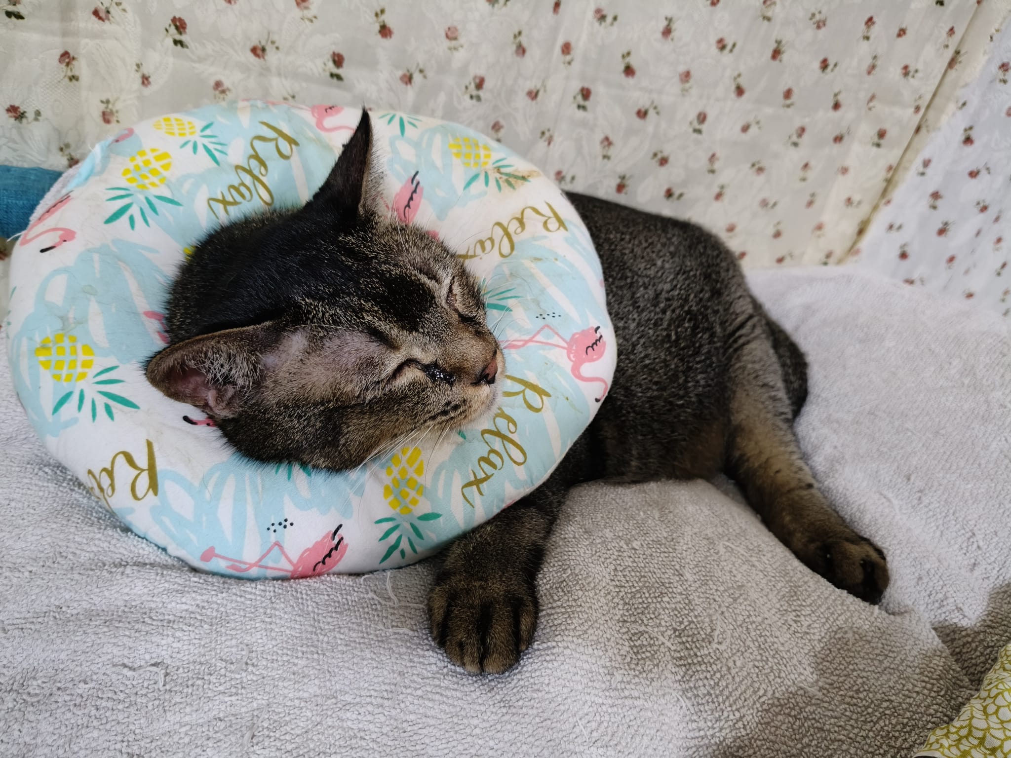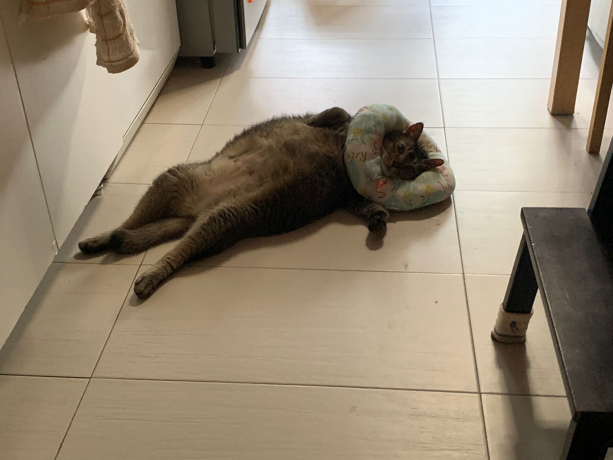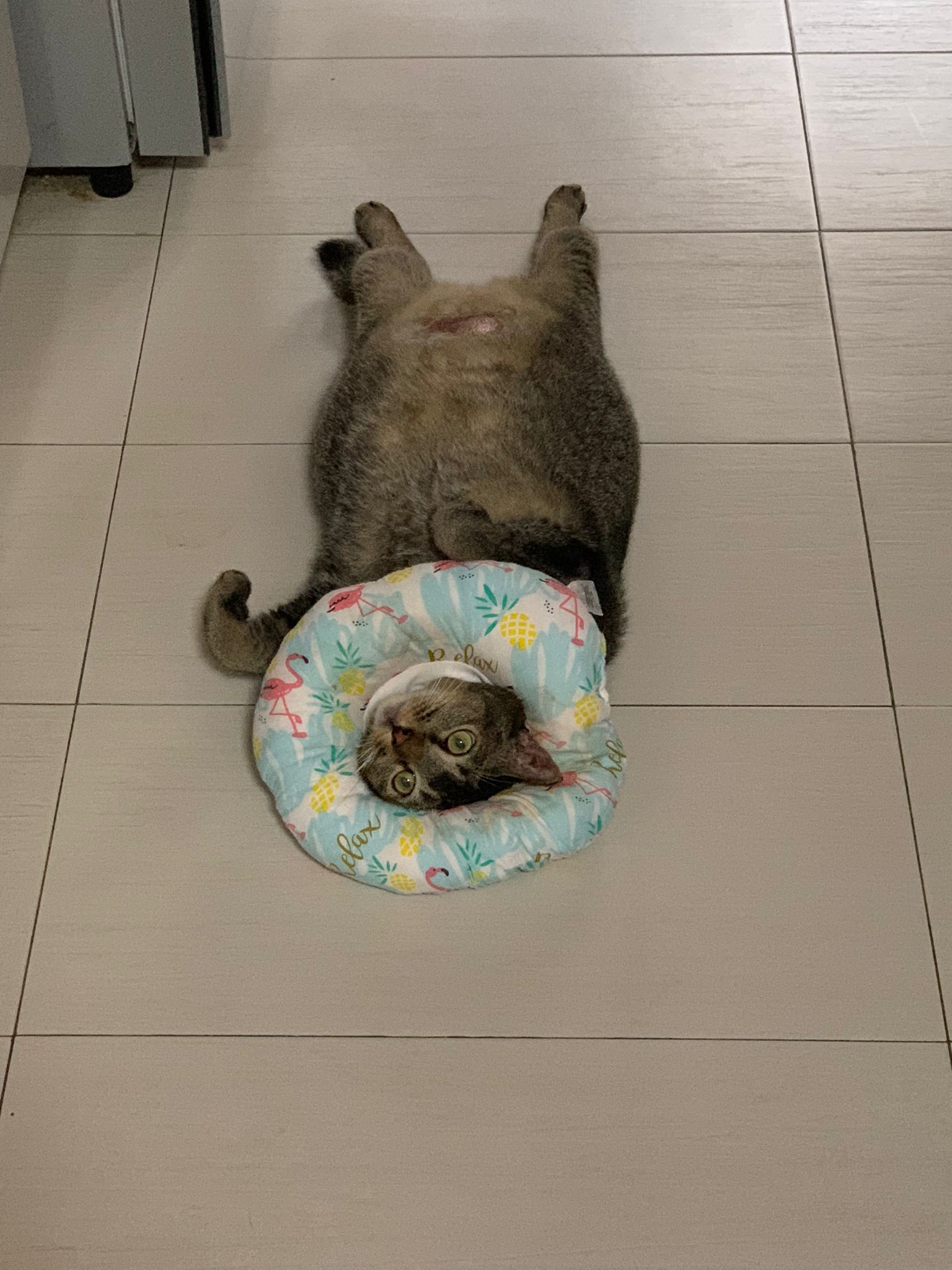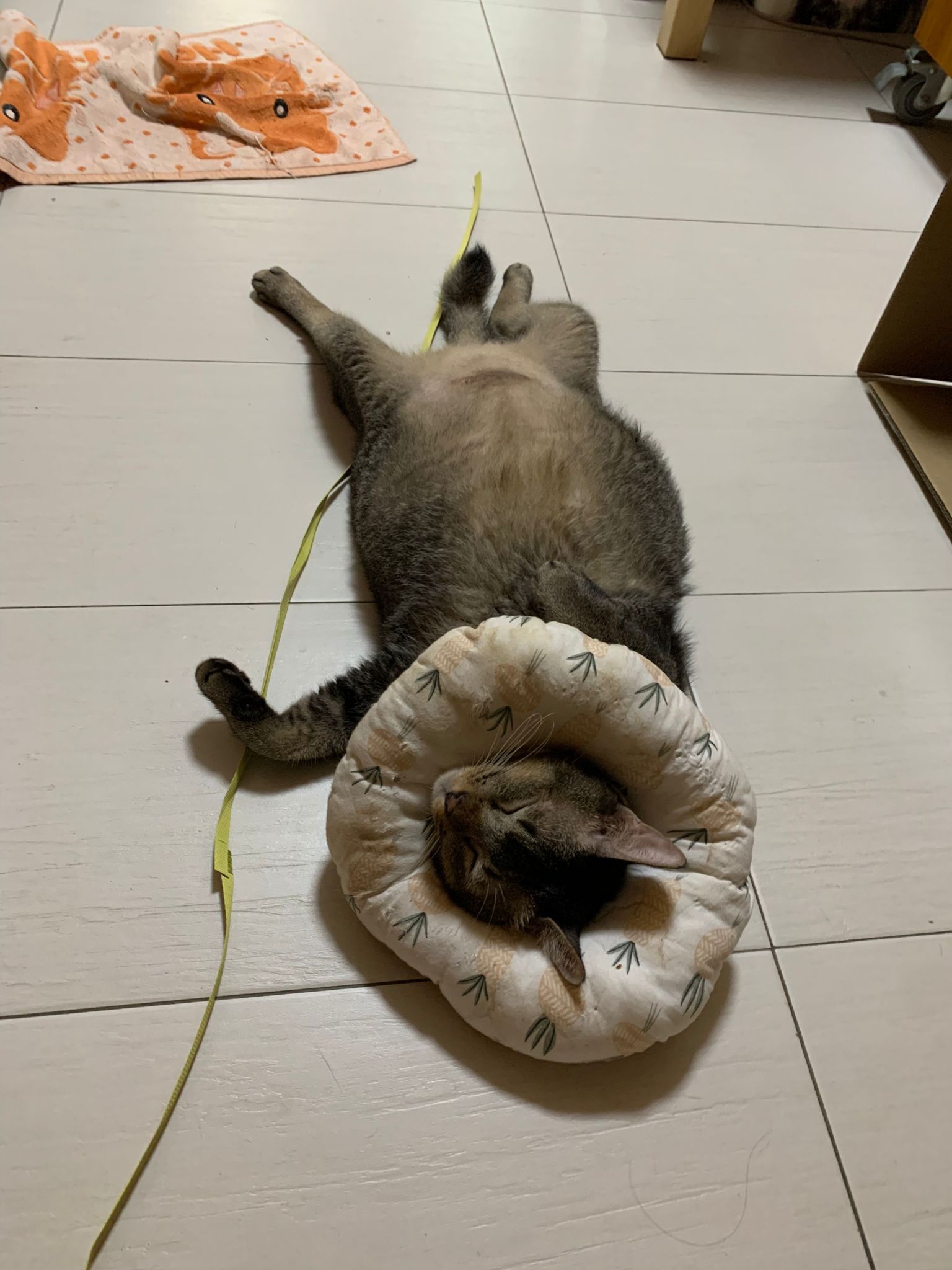 Morning: Ha rufus super cute poses, taken photos for him, he lie on the cool collar so comfy